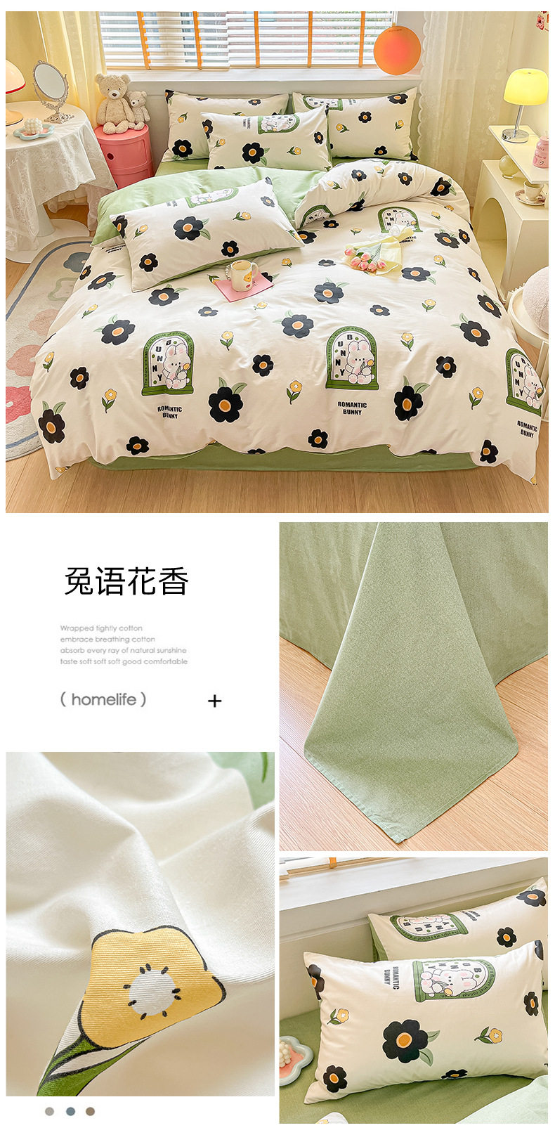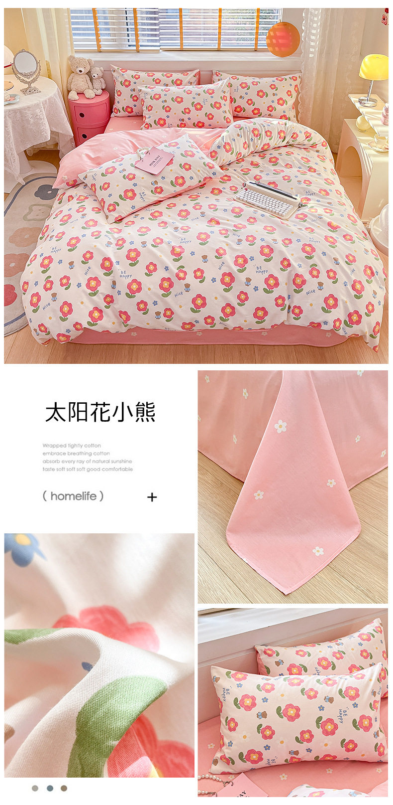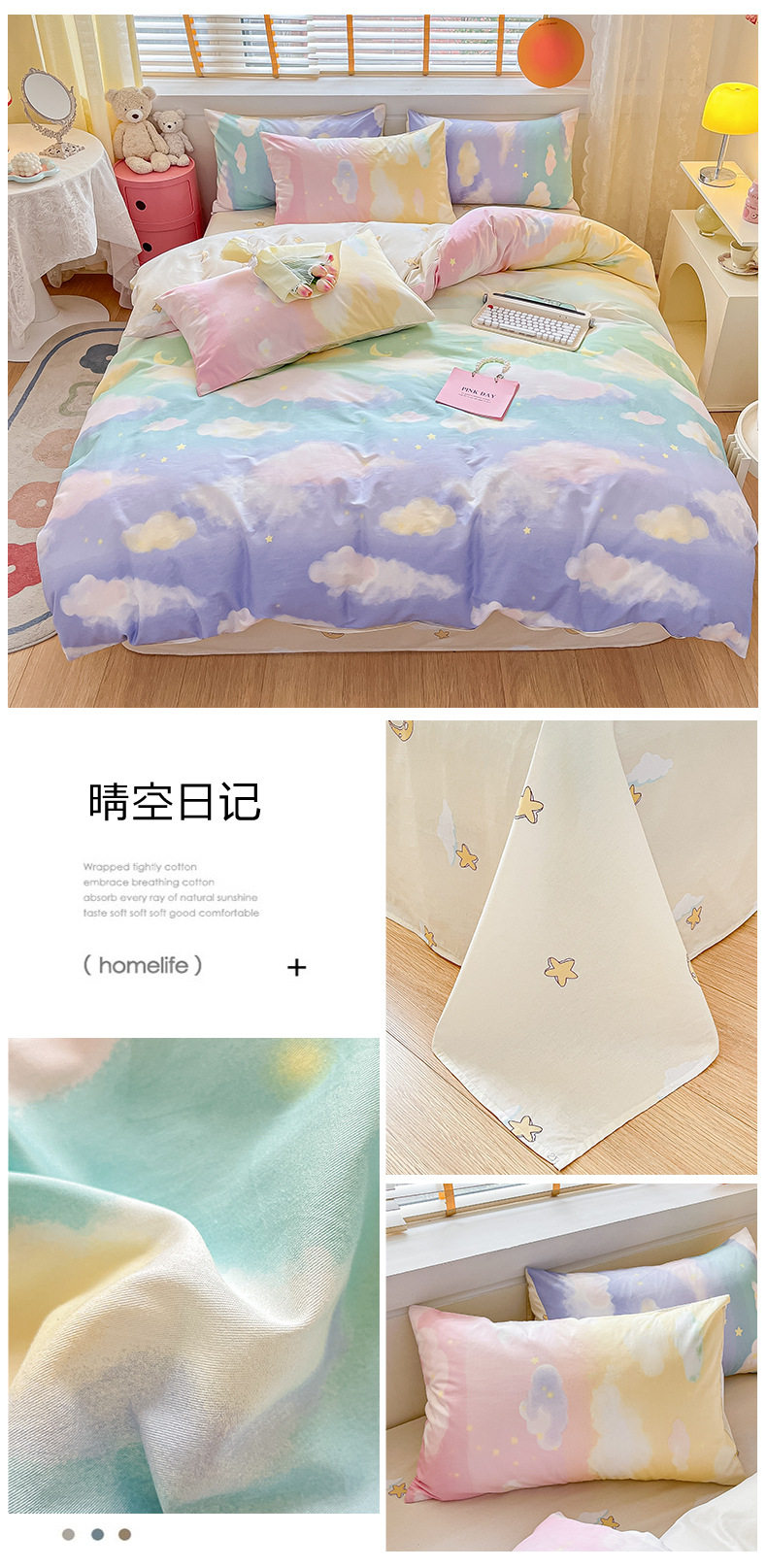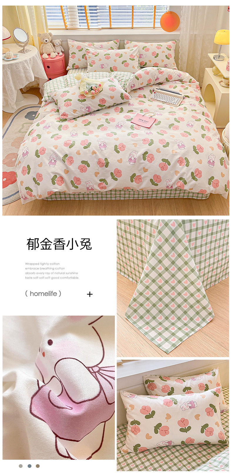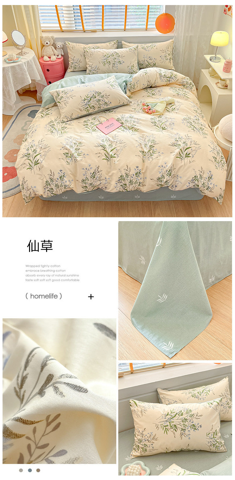 Ins Style Cotton Four-piece Set 100 Cotton Bed Sheet Quilt Cover Cotton Student Dormitory Three-piece Set Cotton Four-piece Set