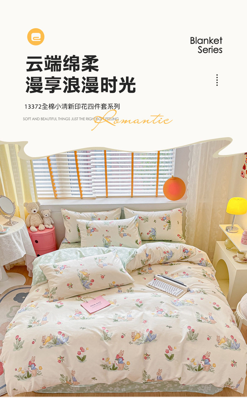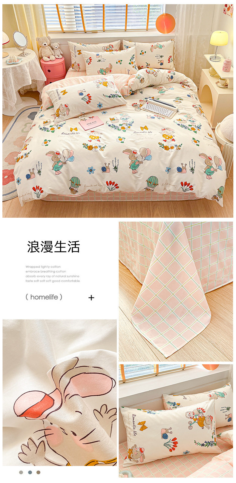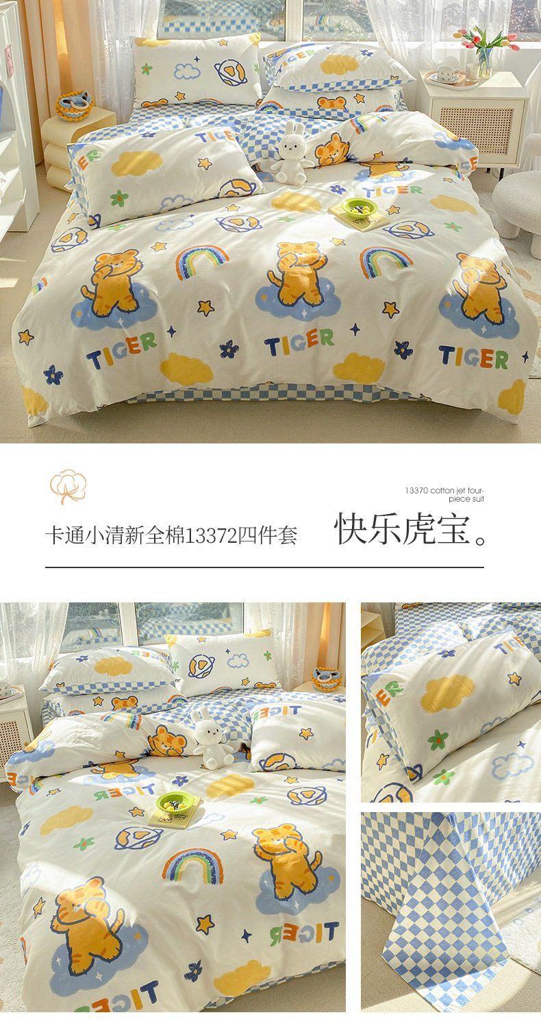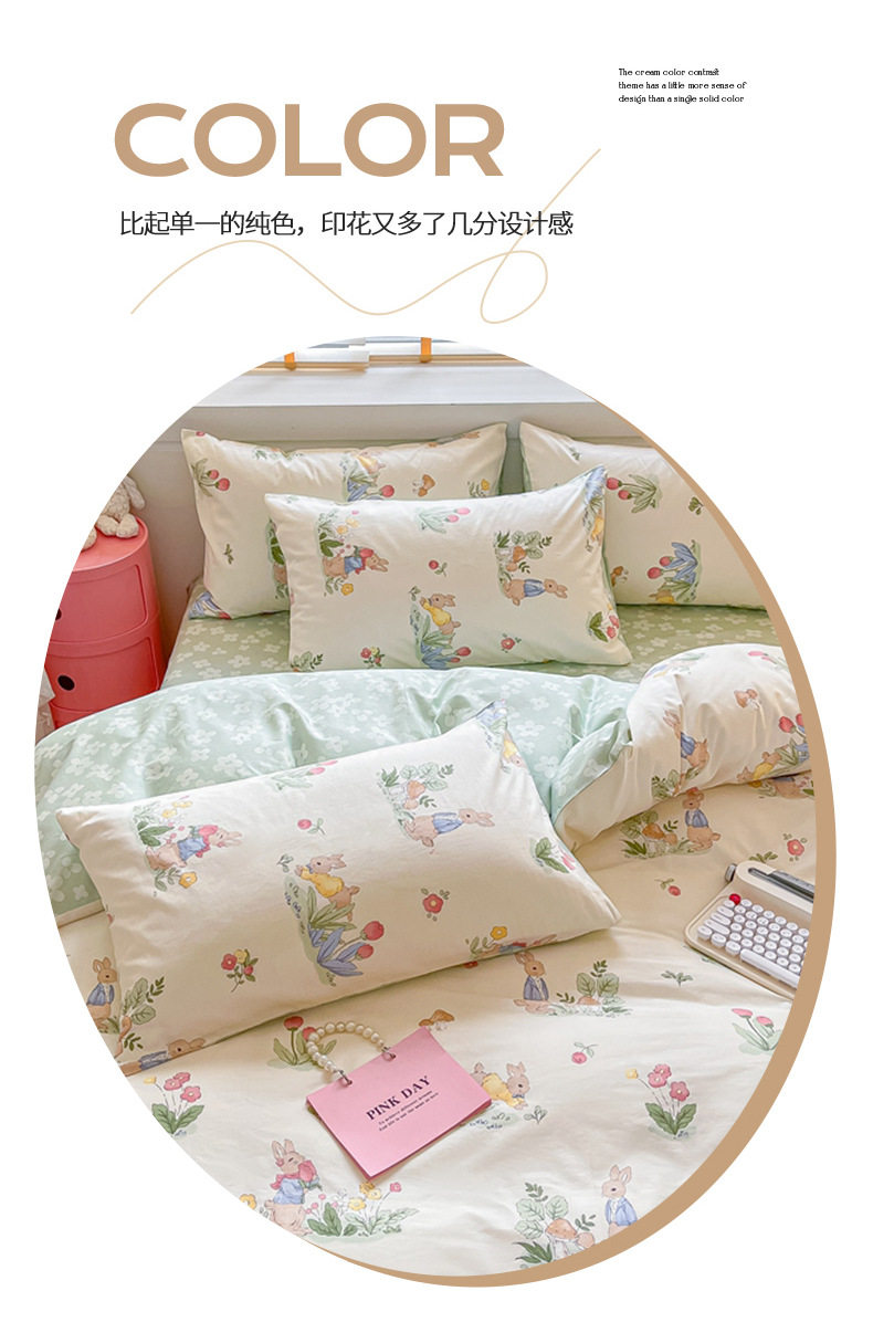 Ins Style Cotton Four-piece Set 100 Cotton Bed Sheet Quilt Cover Cotton Student Dormitory Three-piece Set Cotton Four-piece Set