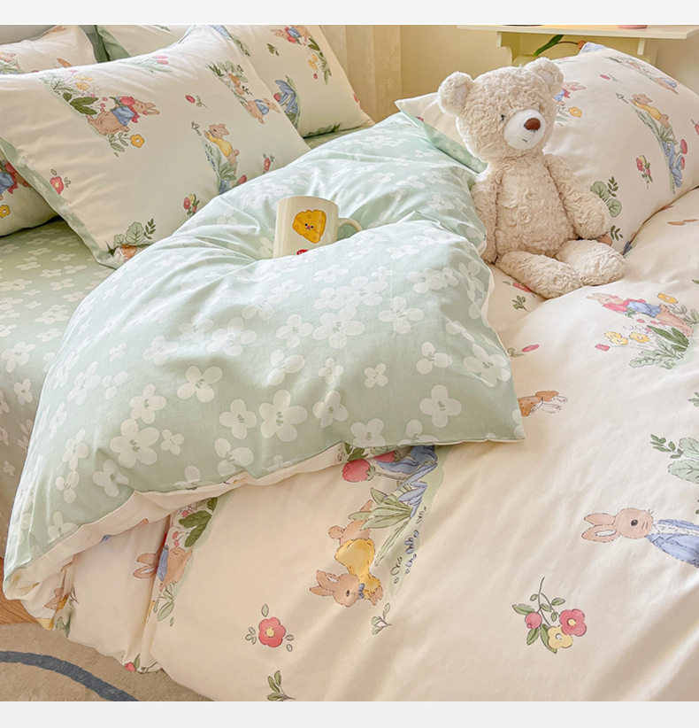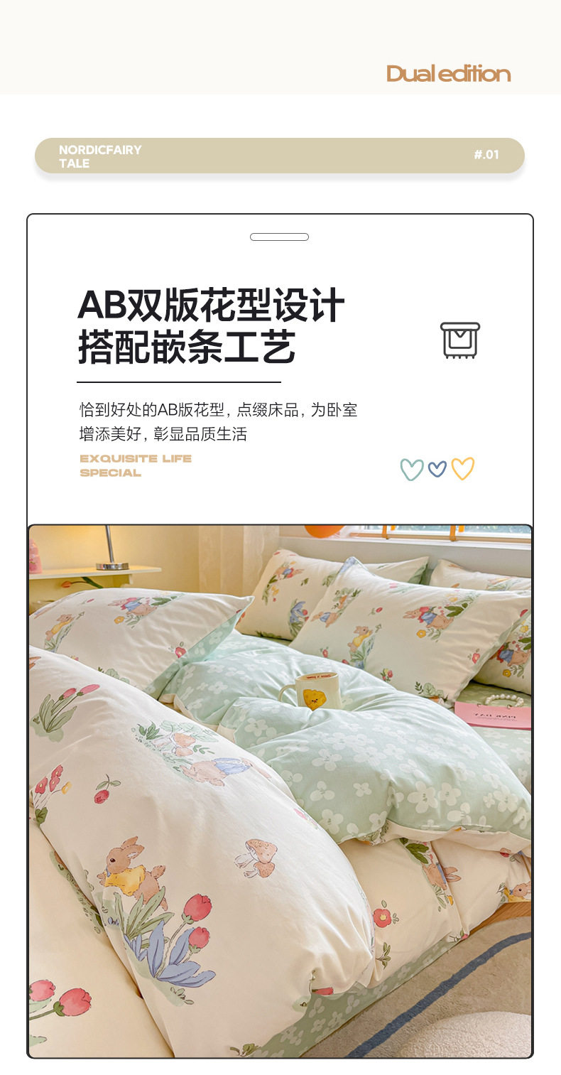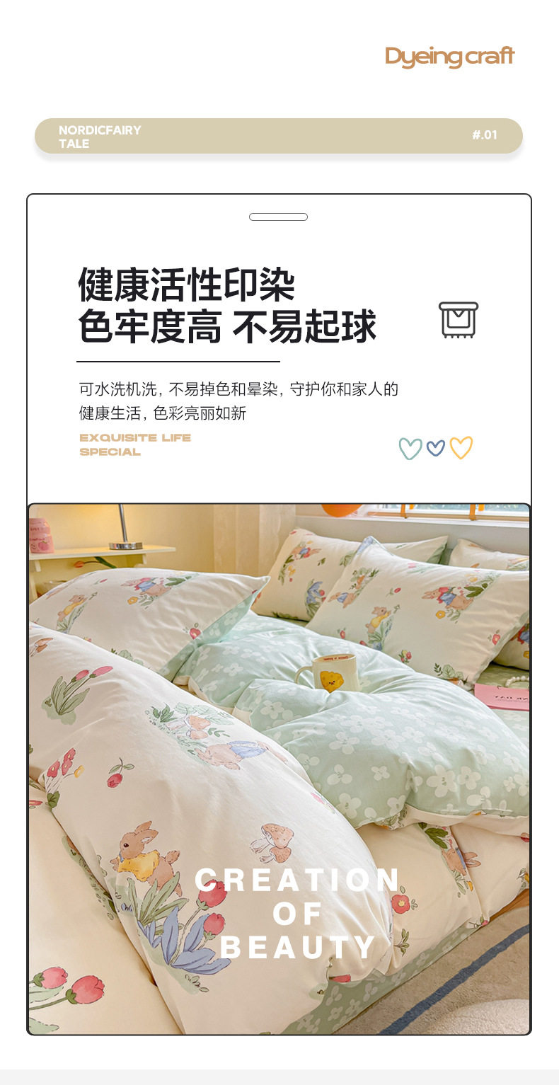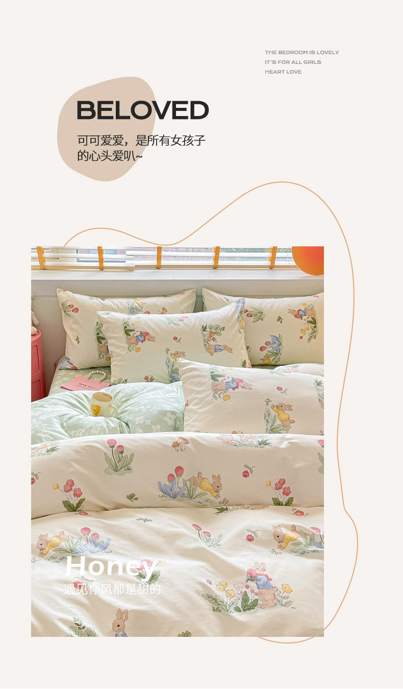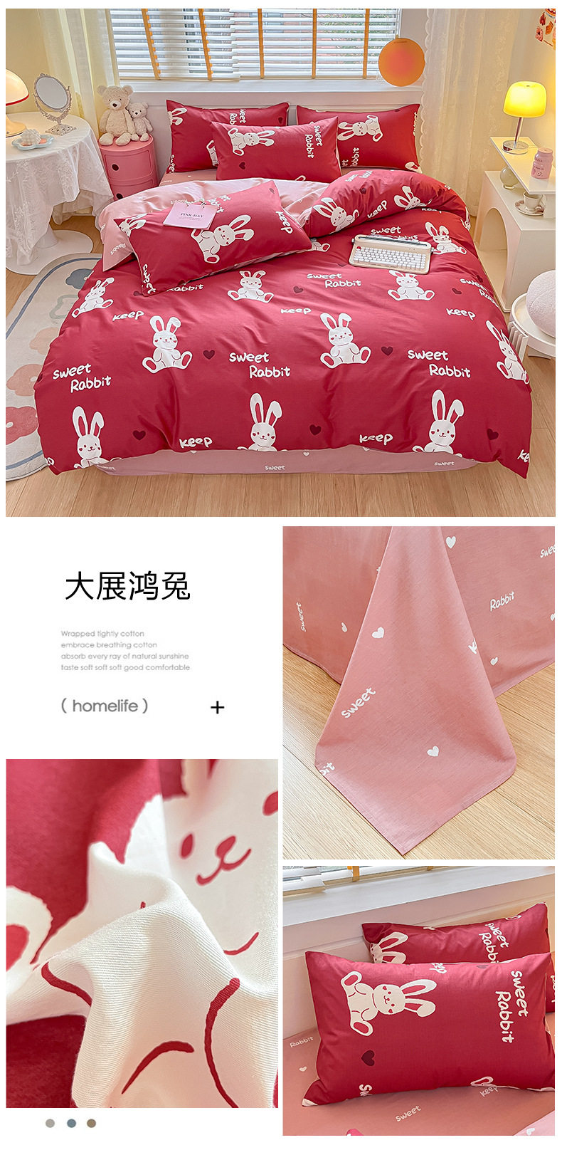 Ins Style Cotton Four-piece Set 100 Cotton Bed Sheet Quilt Cover Cotton Student Dormitory Three-piece Set Cotton Four-piece Set