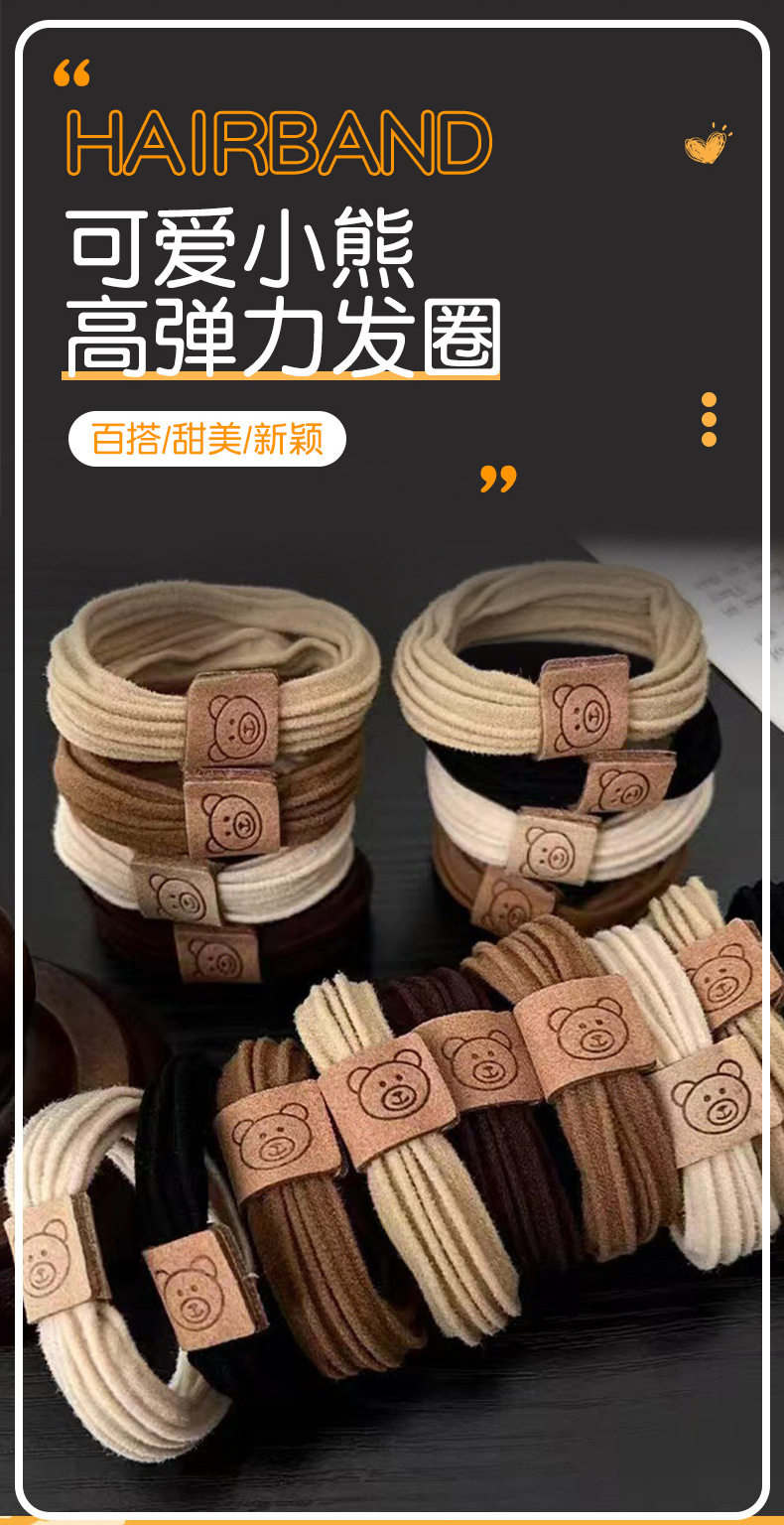 Bear Head Rope High Elastic Rubber Tendon Women's Hair Rope Thickened Thick Hair Ring High Pony Tail Ball Headwear Rubber