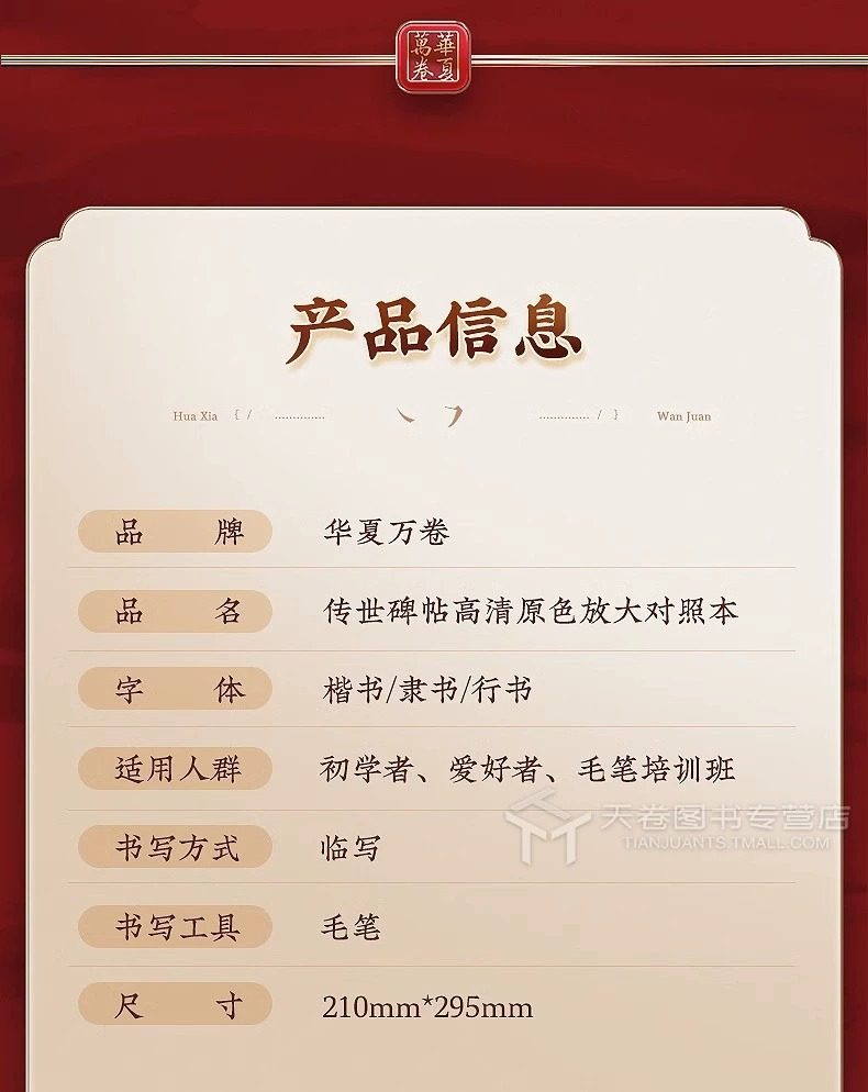 Huaxia ten thousand volumes handed down copybook HD primary color enlarged contrast writing brush calligraphy practice copybook