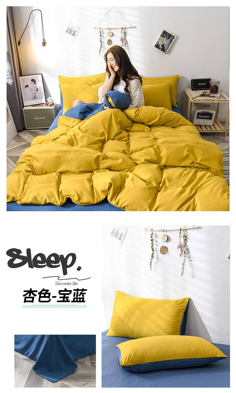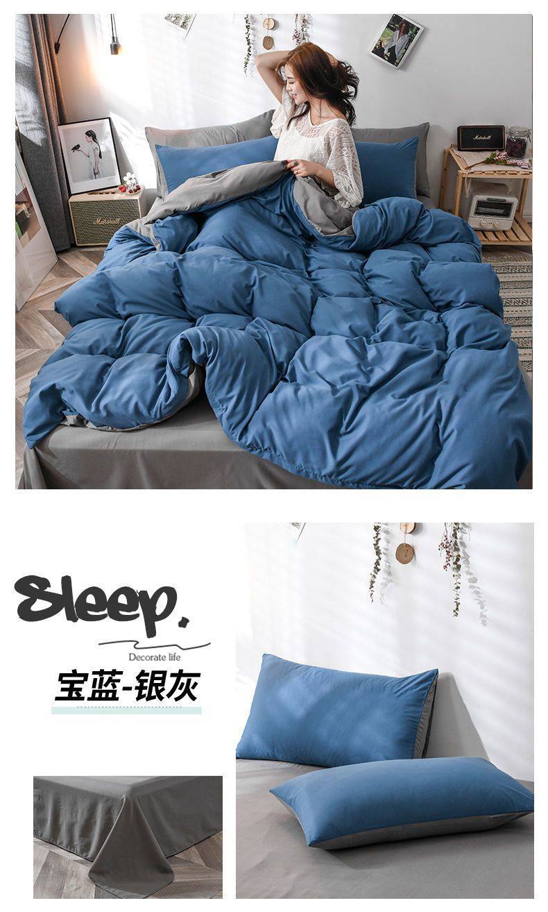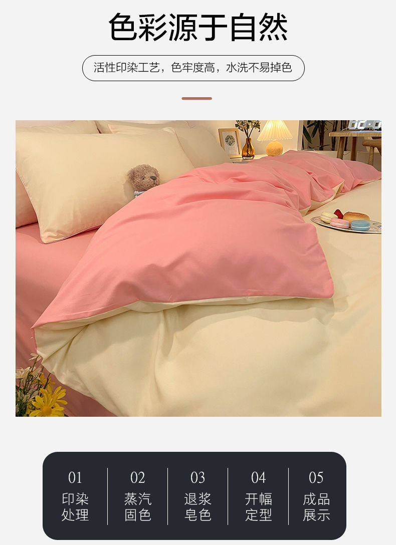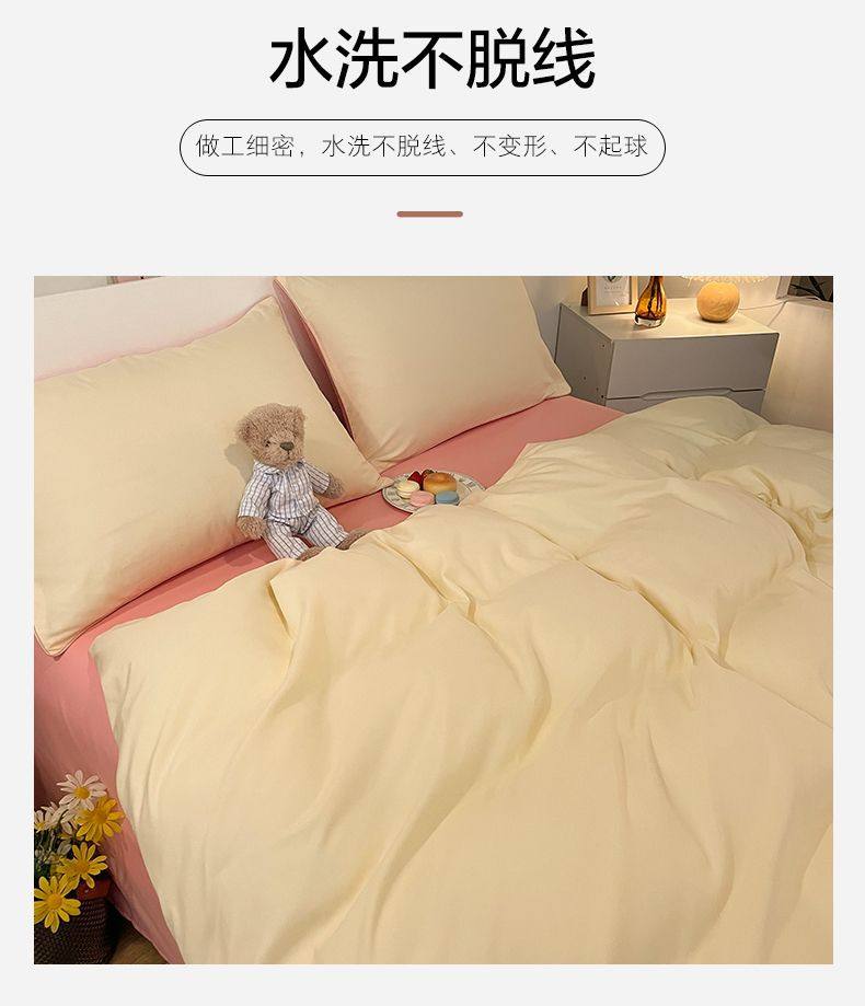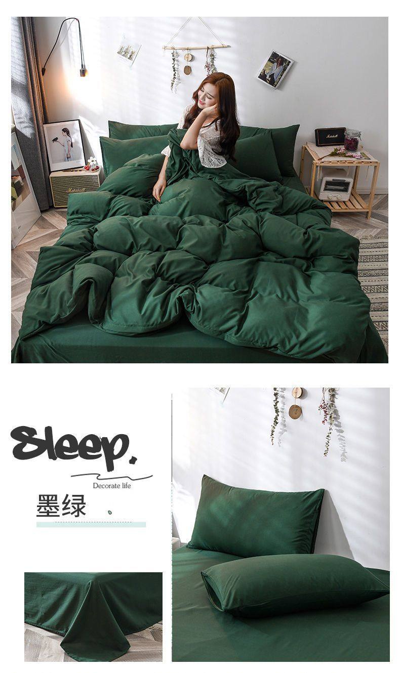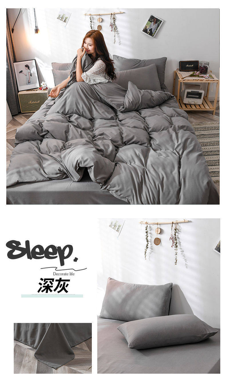 New Washed Cotton Four-Piece Solid Color Quilt Cover Simple Style Quilt Bed Sheets Dormitory Single Three-Piece Student Set