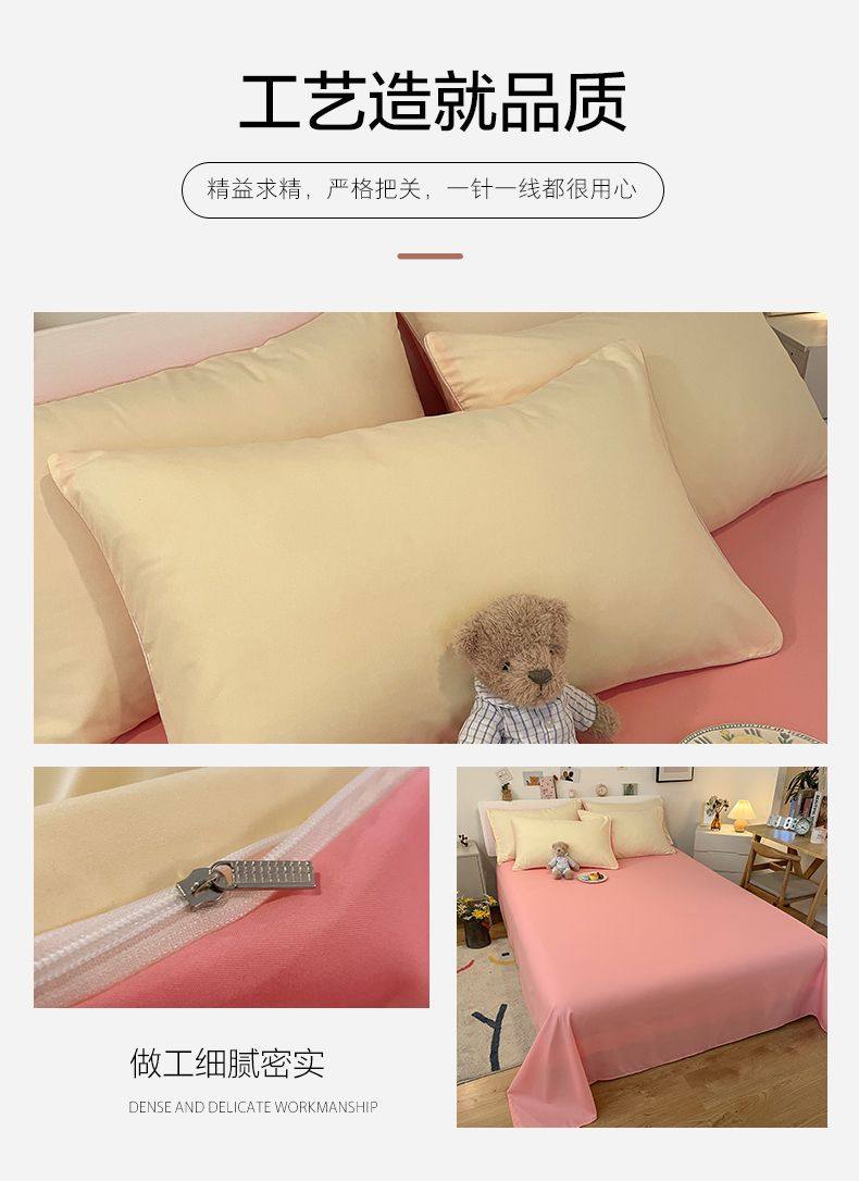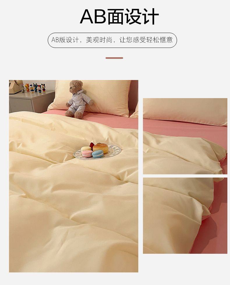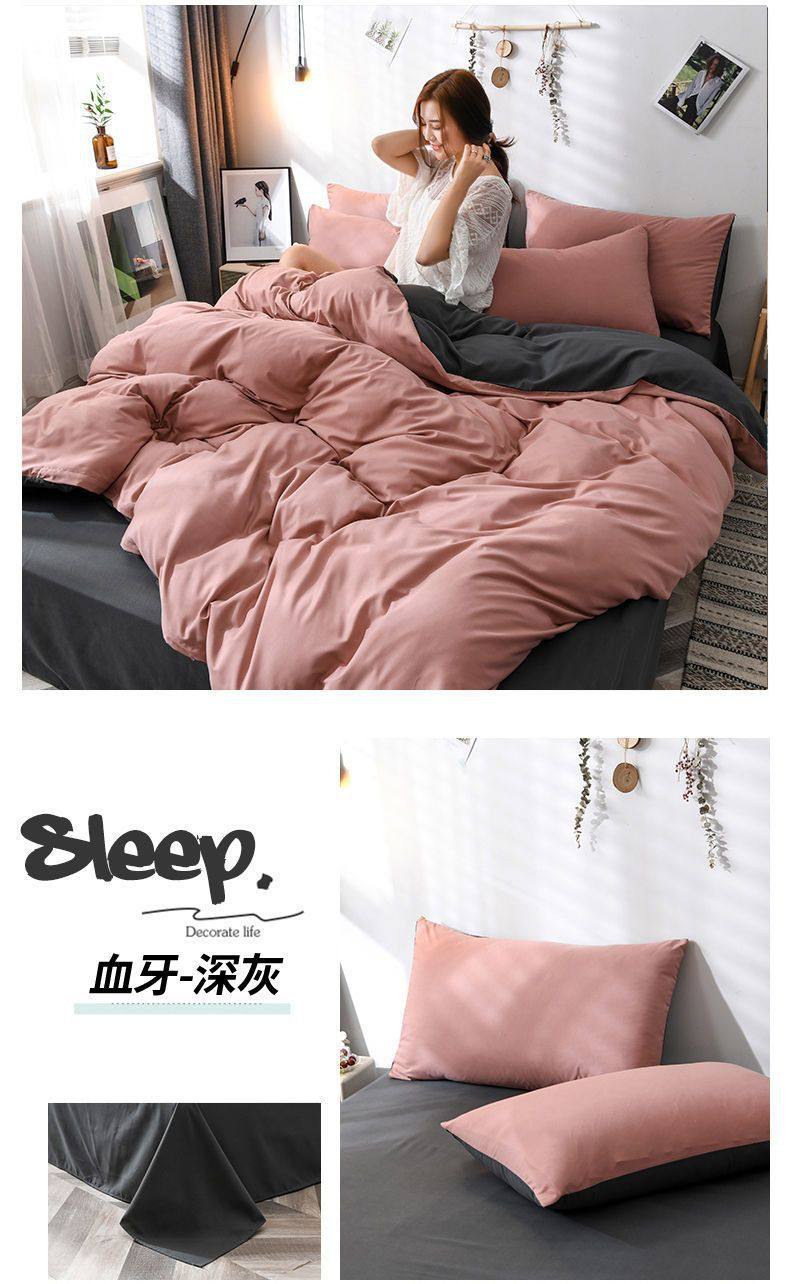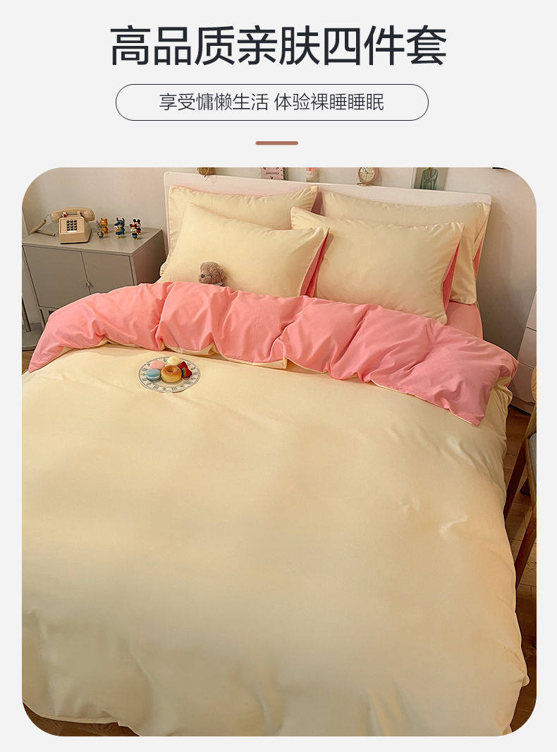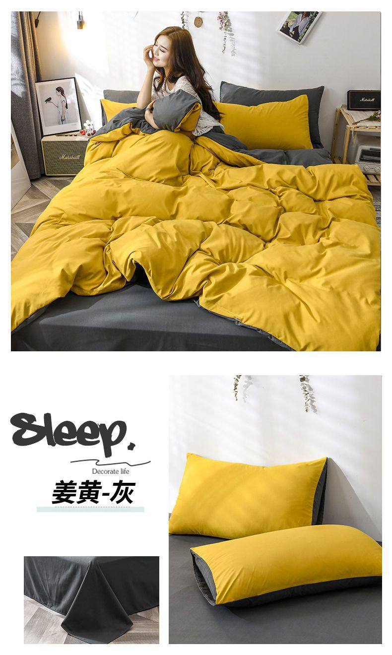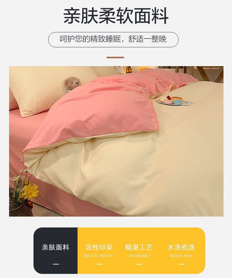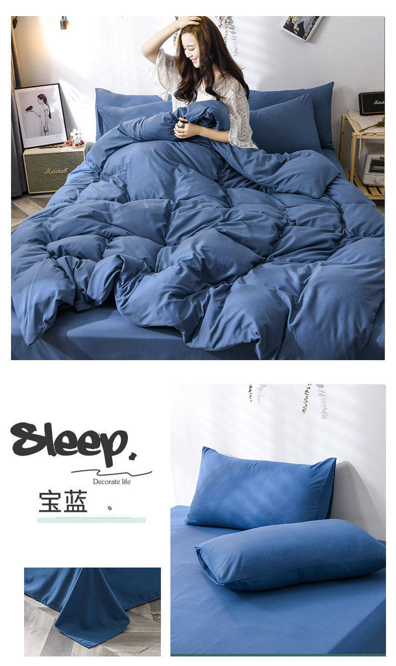 New Washed Cotton Four-Piece Solid Color Quilt Cover Simple Style Quilt Bed Sheets Dormitory Single Three-Piece Student Set