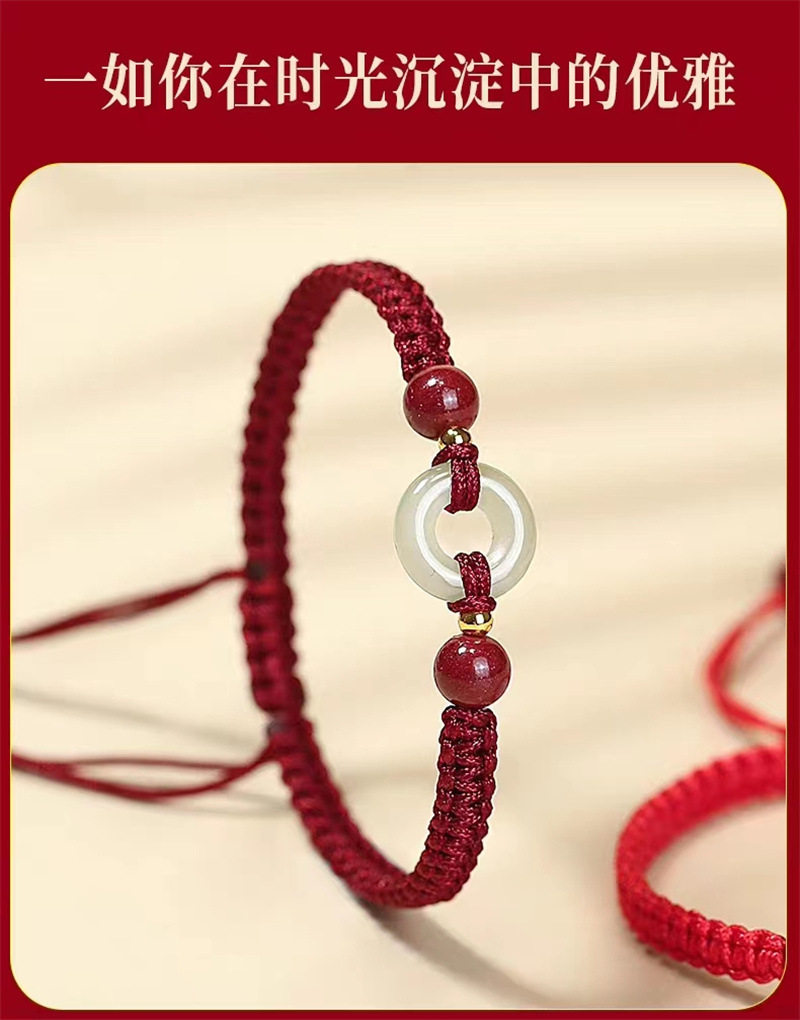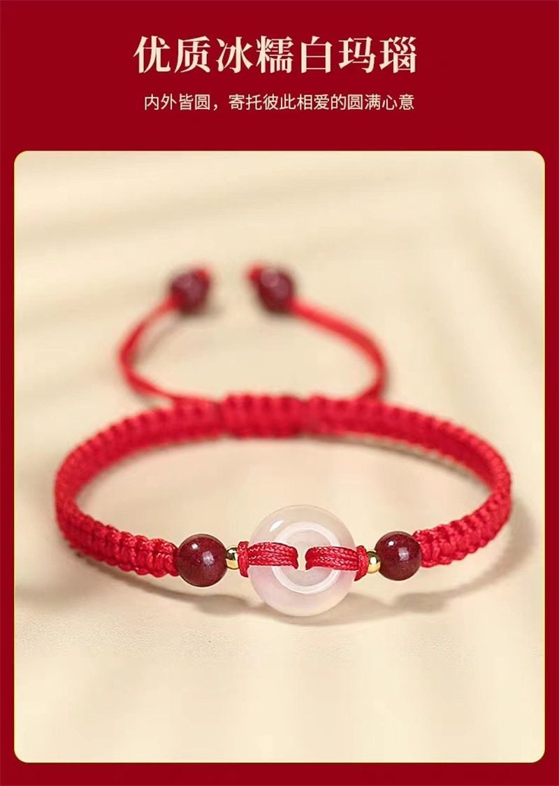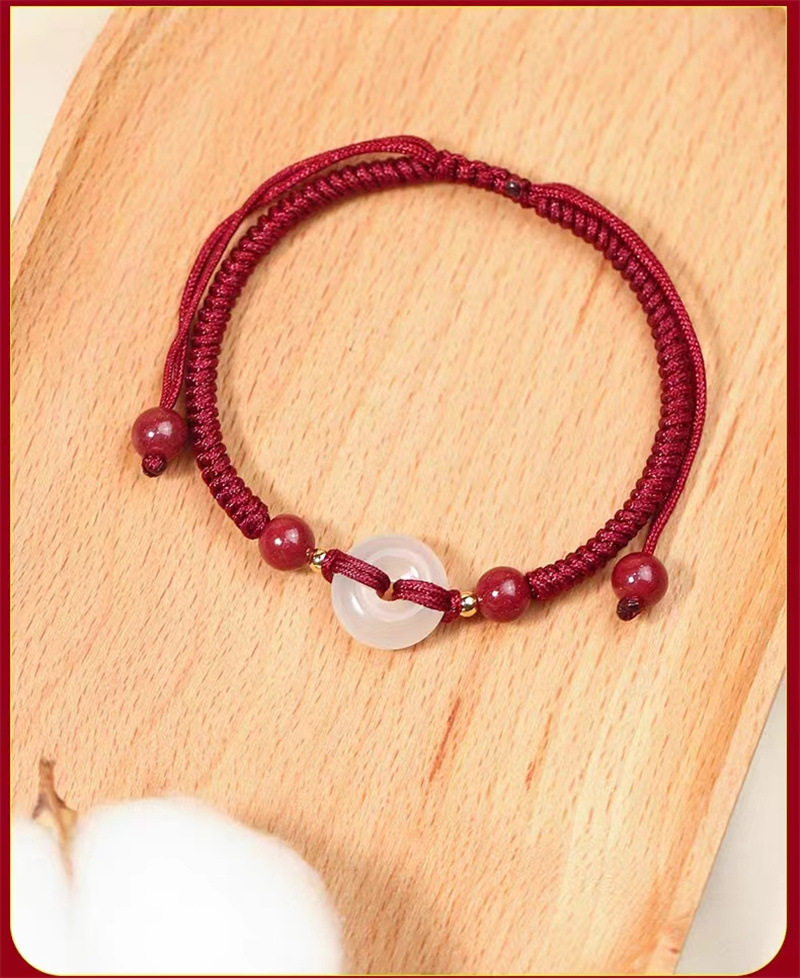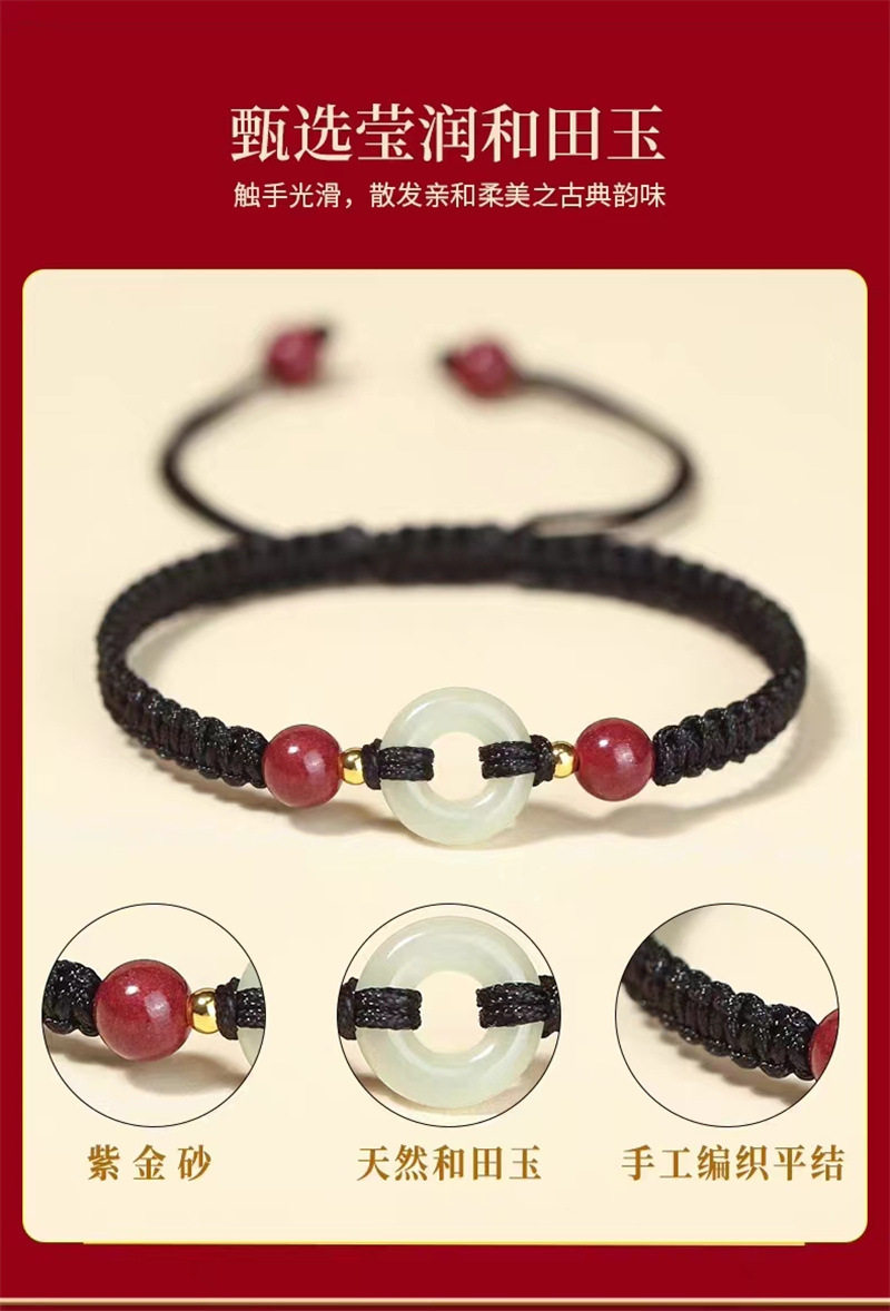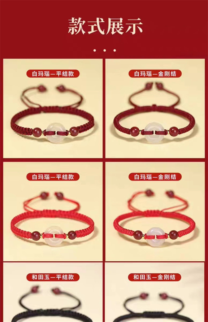 Natural Agate Buckle Bracelet Hetian Jade Benmingnian Red Hand Rope Hand-woven Hand Rope for Boys and Girls Couple