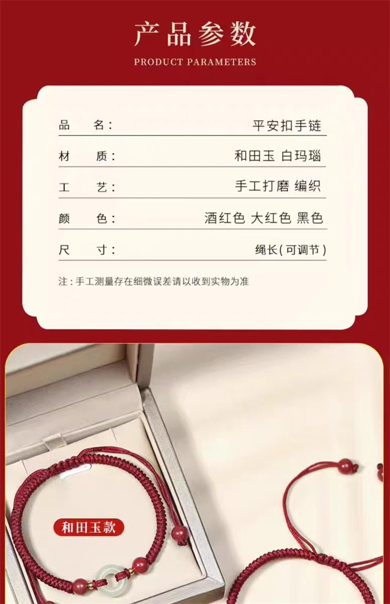 | Color | Agate peace buckle joy red-flat settlement,Agate peace buckle joy red-King Kong knot,Agate peace buckle peace red-flat settlement,Agate Ping An Buckle Ping An Red-King Kong,Hotan Jade peace buckle joy red-flat settlement,Hotan Jade peace buckle peace red-flat settlement,Hotan Jade peace buckle elegant black-flat settlement,Hotan Jade peace buckle joy red-King Kong knot,Hotan Jade Ping An Buckle Ping An Red-King Kong,Hotan Jade Peace Button Elegant Black-King Kong |