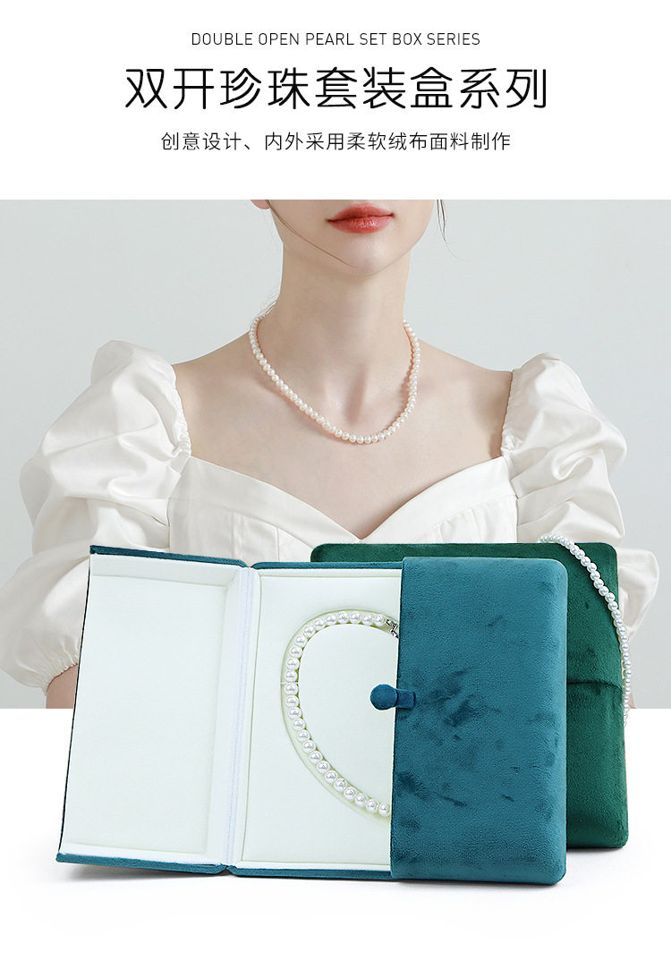 Velvet Pearl Necklace Box Double Open Snap Jewelry Packaging Box Gift Ladieswear's Day Mom Chain Box
