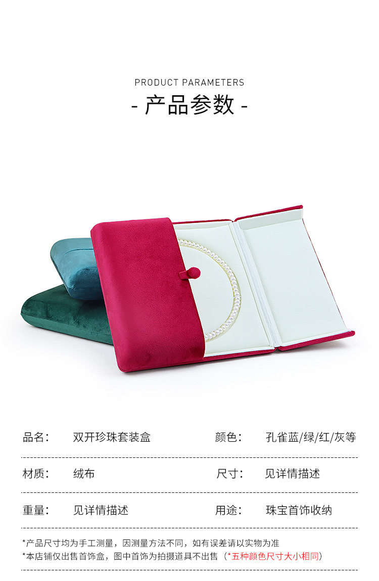 | Specifications and models | Malachite green heart-shaped pearl box; double-open box,Malachite green round pearl box; double opening box,Peacock green two-button necklace box; double-open box,Peacock green two-button four-piece box; double-open box,Malachite green large suit box; double opening box,Peacock blue heart-shaped pearl box; double-open box,Peacock blue round pearl box; double opening box,Peacock blue two-button necklace box; double-open box,Peacock blue two-button four-piece box; double-open box,Peacock blue large suit box; double box,Maroon heart-shaped pearl box; double-open box,Maroon round pearl box; double-open box,Maroon two-button necklace box; double-open box,Maroon two-button four-piece box set; double-open box,Maroon large set box; double-open box,Peacock red heart-shaped pearl box; double-open box,Peacock red round pearl box; double opening box,Peacock red two-button necklace box; double-open box,Peacock red two-button four-piece box; double-open box,Peacock red large suit box; double box,Brown heart-shaped pearl box; double-open box,Brown round pearl box; double opening box,Brown two-button necklace box; double-open box,Brown two-button four-piece box set; double-open box,Brown large suit box; double opening box,Light gray heart-shaped pearl box; double-open box,Light gray round pearl box; double opening box,Light gray two-button necklace box; double-open box,Light gray two-button four-piece box; double-open box,Light gray large suit box; double opening box,Peacock gray heart-shaped pearl box; double-open box,Peacock gray round pearl box; double open box,Peacock gray two-button necklace box; double-open box,Peacock gray patch four-piece box set; double-open box,Peacock gray large set box; double-open box,Sky blue heart-shaped pearl box; double-open box,Sky blue round pearl box; double-open box,Sky blue two-clasp necklace box; double-opening box,Sky blue two-button four-piece set box; double-opening box,Sky blue large suit box; double opening box,Royal blue heart-shaped pearl box; double-open box,Royal blue round pearl box; double opening box,Royal blue two-button necklace box; double-open box,Royal blue two-button four-piece box; double-open box,Royal blue large suit box; double opening box,Sky blue inner black two-button four-piece box set; double-open box,Maroon korean velvet heart-shaped pearl box; double-open box,Pink heart-shaped pearl box; double-open box,Pink round pearl box; double-open box,Pink two-button necklace box; double-open box,Pink two-button four-piece box; double-open box,Pink large set box; double-open box |