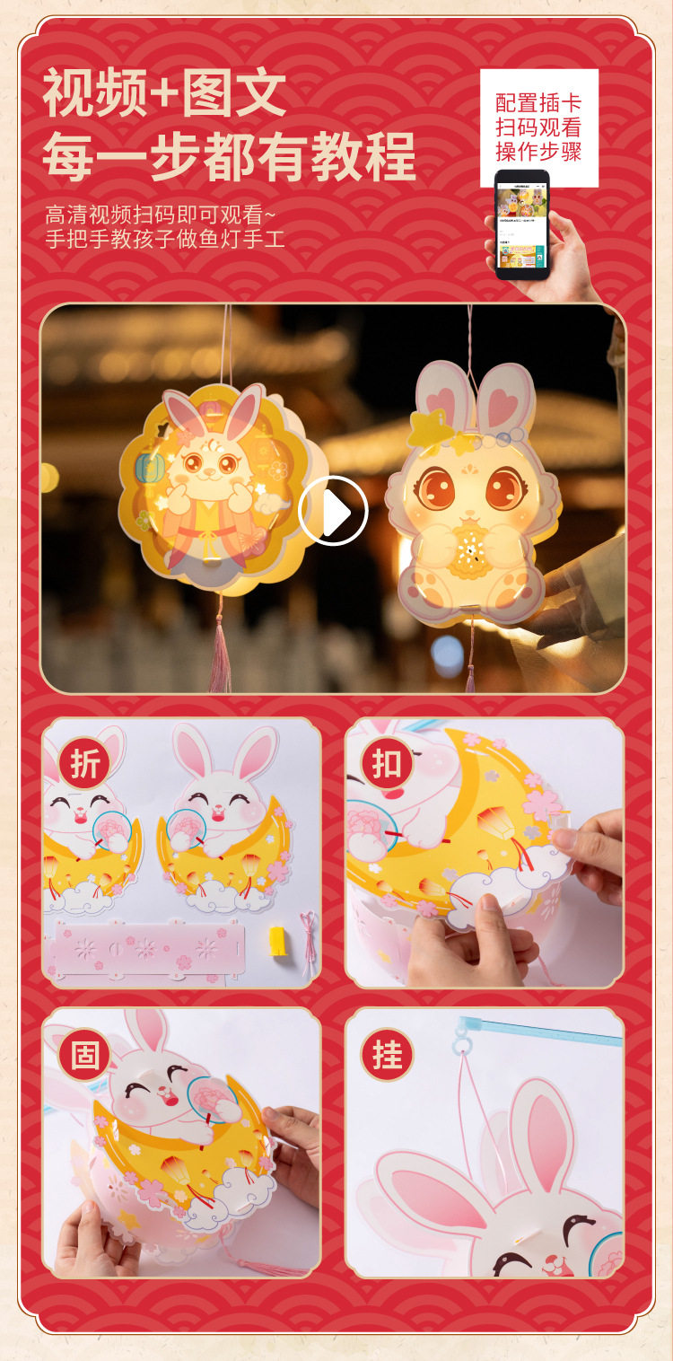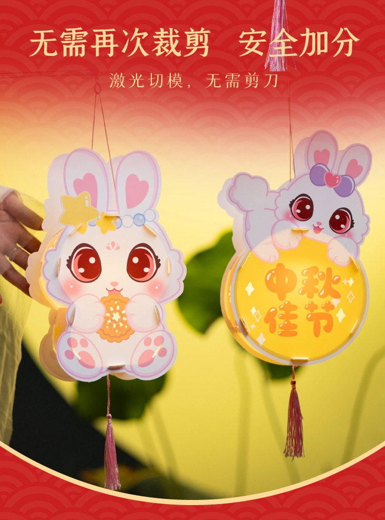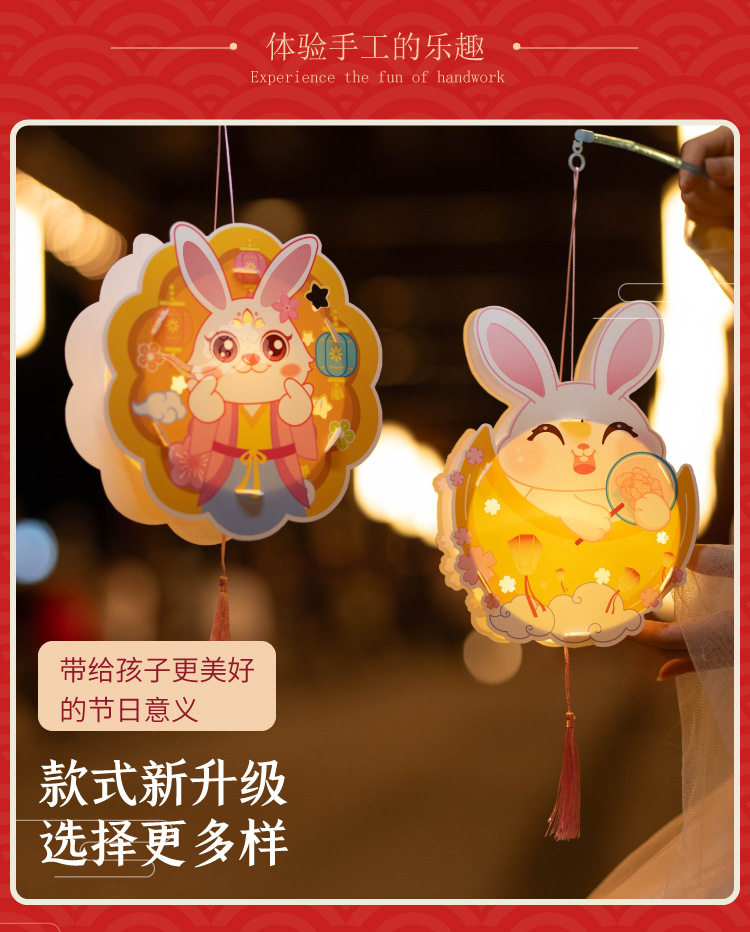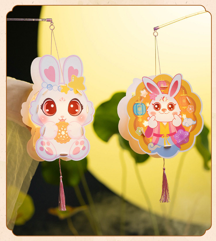 New Year Cute Rabbit Lantern DIY Craft Kit for Children - Jade Rabbit Lantern, Traditional Chinese Style Handheld Lantern