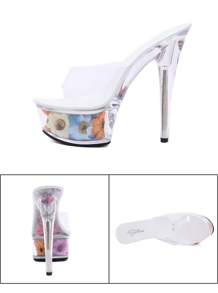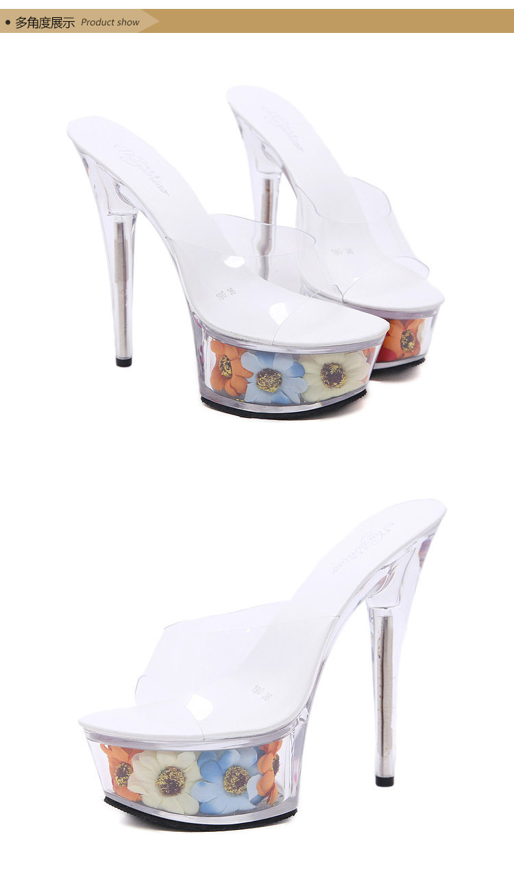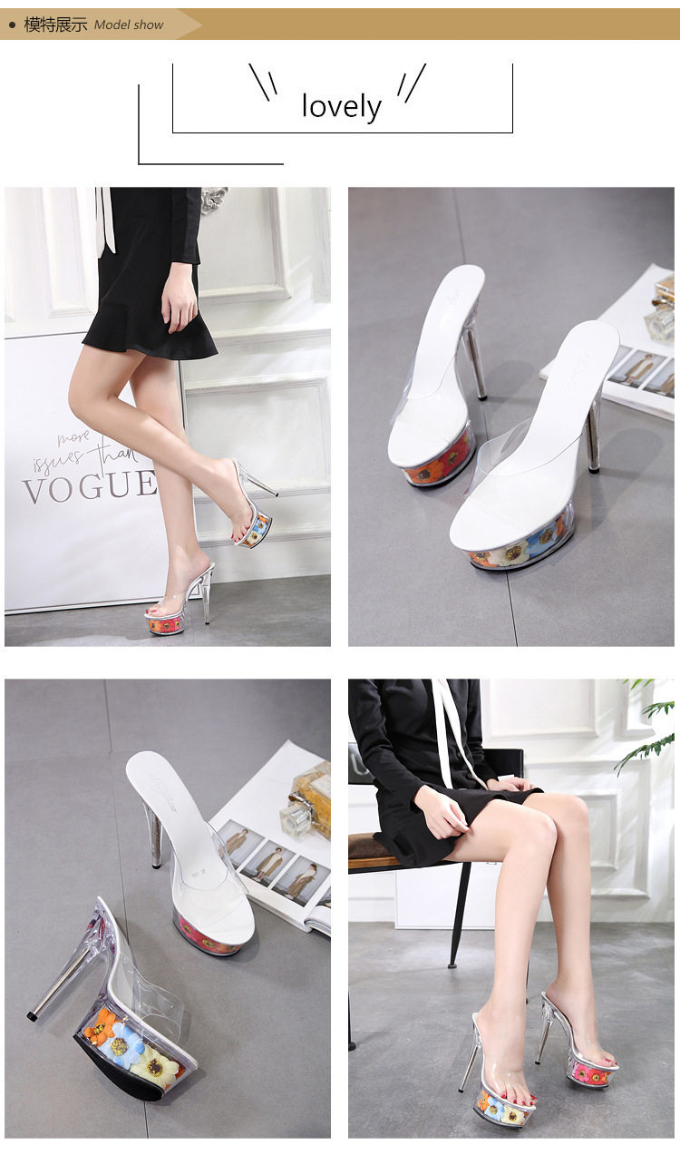 Popular sexy super high heels 15CM stiletto heel platform sandals 34-43 transparent crystal shoes wedding shoes Banquet Dance