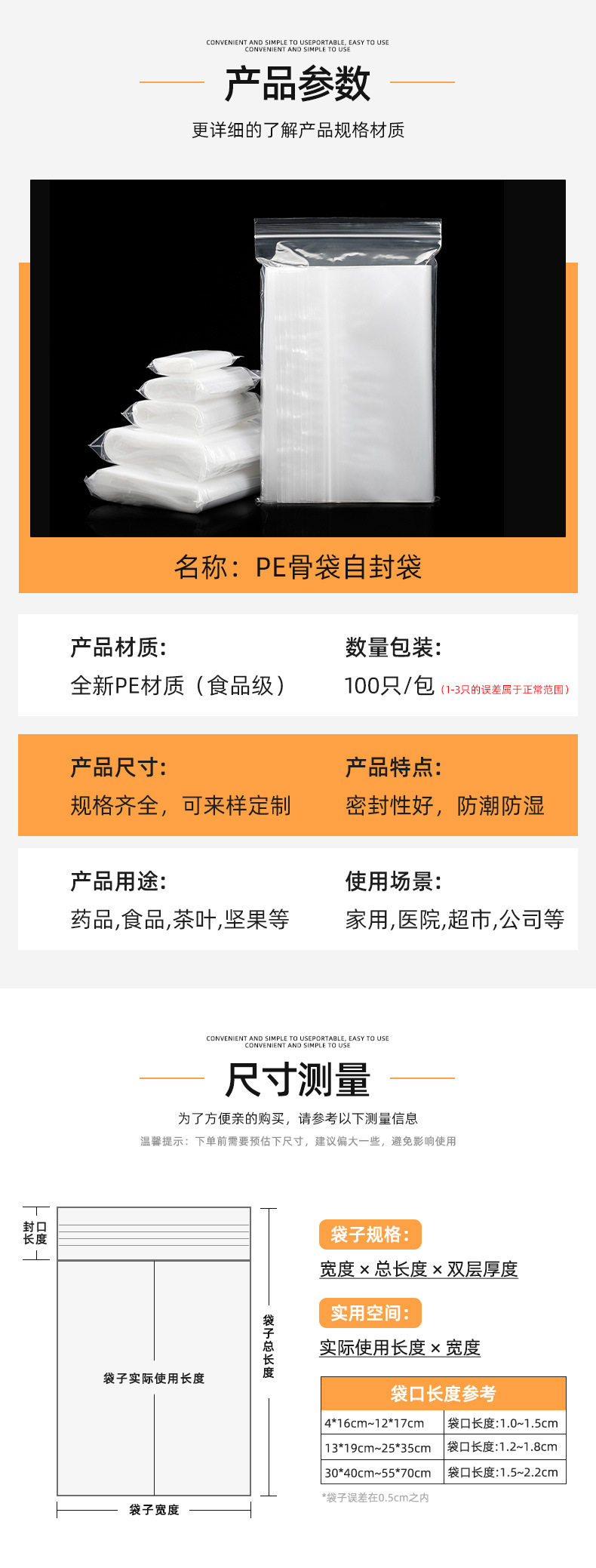 Transparent Pe Ziplock Bag Tea Packaging Food Sealing Bag Thickeneded Storage Plastic Sealing Bag Wholesale in Bulk