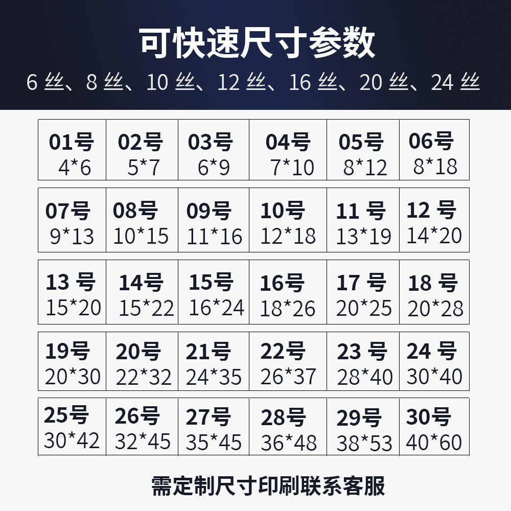 | Specifications and models | 4*6cm (100) Double Layer 6 Silk,4*6cm (100) Double Layer 8 Silk,4*6cm (100) double layer 10 Silk,4*6cm (100) double layer 12 Silk,4*6cm (100) double layer 16 Silk,4*6cm (100) double layer 20 Silk,4*6cm (100) double layer 24 Silk,5*7cm (100) Double Layer 6 Silk,5*7cm (100) Double Layer 8 Silk,5*7cm (100) double layer 10 Silk,5*7cm (100) double layer 12 Silk,5*7cm (100) double layer 16 Silk,5*7cm (100) double layer 20 Silk,5*7cm (100) double layer 24 Silk,6*9cm (100) Double Layer 6 Silk,6*9cm (100) Double Layer 8 Silk,6*9cm (100) double layer 10 Silk,6*9cm (100) double layer 12 Silk,6*9cm (100) double layer 16 Silk,6*9cm (100) double layer 20 Silk,6*9cm (100) double layer 24 Silk,7*10cm (100) Double Layer 6 Silk,7*10cm (100) Double Layer 8 Silk,7*10cm (100) double layer 10 Silk,7*10cm (100) double layer 12 Silk,7*10cm (100) double layer 16 Silk,7*10cm (100) double layer 20 Silk,7*10cm (100) double layer 24 Silk,8*12cm (100) Double Layer 6 Silk,8*12cm (100) Double Layer 8 Silk,8*12cm (100) double layer 10 Silk,8*12cm (100) double layer 12 Silk,8*12cm (100) double layer 16 Silk,8*12cm (100) double layer 20 Silk,8*12cm (100) double layer 24 Silk,8*18cm (100) Double Layer 6 Silk,8*18cm (100) Double Layer 8 Silk,8*18cm (100) double layer 10 Silk,8*18cm (100) double layer 12 Silk,8*18cm (100) double layer 16 Silk,8*18cm (100) double layer 20 Silk,8*18cm (100) double layer 24 Silk,9*13cm (100) Double Layer 6 Silk,9*13cm (100) Double Layer 8 Silk,9*13cm (100) double layer 10 Silk,9*13cm (100) double layer 12 Silk,9*13cm (100) double layer 16 Silk,9*13cm (100) double layer 20 Silk,9*13cm (100) double layer 24 Silk,10*15cm (100) Double Layer 6 Silk,10*15cm (100) Double Layer 8 Silk,10*15cm (100) double layer 10 Silk,10*15cm (100) double layer 12 Silk,10*15cm (100) double layer 16 Silk,10*15cm (100) double layer 20 Silk,10*15cm (100) double layer 24 Silk,10*20cm (100) Double Layer 6 Silk,10*20cm (100) Double Layer 8 Silk,10*20cm (100) double layer 10 Silk,10*20cm (100) double layer 12 Silk,10*20cm (100) double layer 16 Silk,10*20cm (100) double layer 20 Silk,10*20cm (100) double layer 24 Silk,11*16cm (100) Double Layer 6 Silk,11*16cm (100) Double Layer 8 Silk,11*16cm (100) double layer 10 Silk,11*16cm (100) double layer 12 Silk,11*16cm (100) double layer 16 Silk,11*16cm (100) double layer 20 Silk,11*16cm (100) double layer 24 Silk,12*18cm (100) Double Layer 6 Silk,12*18cm (100) Double Layer 8 Silk,12*18cm (100) double layer 10 Silk,12*18cm (100) double layer 12 Silk,12*18cm (100) double layer 16 Silk,12*18cm (100) double layer 20 Silk,12*18cm (100) double layer 24 Silk,13*19cm (100) Double Layer 6 Silk,13*19cm (100) Double Layer 8 Silk,13*19cm (100) double layer 10 Silk,13*19cm (100) double layer 12 Silk,13*19cm (100) double layer 16 Silk,13*19cm (100) double layer 20 Silk,13*19cm (100) double layer 24 Silk,14*20cm (100) Double Layer 6 Silk,14*20cm (100) Double Layer 8 Silk,14*20cm (100) double layer 10 Silk,14*20cm (100) double layer 12 Silk,14*20cm (100) double layer 16 Silk,14*20cm (100) double layer 20 Silk,14*20cm (100) double layer 24 Silk,15*22cm (100) Double Layer 6 Silk,15*22cm (100) Double Layer 8 Silk,15*22cm (100) double layer 10 Silk,15*22cm (100) double layer 12 Silk,15*22cm (100) double layer 16 Silk,15*22cm (100) double layer 20 Silk,15*22cm (100) double layer 24 Silk,16*24cm (100) Double Layer 6 Silk,16*24cm (100) Double Layer 8 Silk,16*24cm (100) double layer 10 Silk,16*24cm (100) double layer 12 Silk,16*24cm (100) double layer 16 Silk,16*24cm (100) double layer 20 Silk,16*24cm (100) double layer 24 Silk,18*26cm (100) Double Layer 6 Silk,18*26cm (100) Double Layer 8 Silk,18*26cm (100) double layer 10 Silk,18*26cm (100) double layer 12 Silk,18*26cm (100) double layer 16 Silk,18*26cm (100) double layer 20 Silk,18*26cm (100) double layer 24 Silk,20*25cm (100) Double Layer 6 Silk,20*25cm (100) Double Layer 8 Silk,20*25cm (100) double layer 10 Silk,20*25cm (100) double layer 12 Silk,20*25cm (100) double layer 16 Silk,20*25cm (100) double layer 20 Silk,20*25cm (100) double layer 24 Silk,20*28cm (100) Double Layer 6 Silk,20*28cm (100) Double Layer 8 Silk,20*28cm (100) double layer 10 Silk,20*28cm (100) double layer 12 Silk,20*28cm (100) double layer 16 Silk,20*28cm (100) double layer 20 Silk,20*28cm (100) double layer 24 Silk,20*30cm (100) Double Layer 6 Silk,20*30cm (100) Double Layer 8 Silk,20*30cm (100) double layer 10 Silk,20*30cm (100) double layer 12 Silk,20*30cm (100) double layer 16 Silk,20*30cm (100) double layer 20 Silk,20*30cm (100) double layer 24 Silk,22*32cm (100) Double Layer 6 Silk,22*32cm (100) Double Layer 8 Silk,22*32cm (100) double layer 10 wire,22*32cm (100) double layer 12 Silk,22*32cm (100) double layer 16 Silk,22*32cm (100) double layer 20 Silk,22*32cm (100) double layer 24 Silk,24*35cm (100) Double Layer 6 Silk,24*35cm (100) Double Layer 8 Silk,24*35cm (100) double layer 10 Silk,24*35cm (100) double layer 12 Silk,24*35cm (100) double layer 16 Silk,24*35cm (100) double layer 20 Silk,24*35cm (100) double layer 24 Silk,26*37cm (100) Double Layer 8 Silk,26*37cm (100) double layer 10 Silk,26*37cm (100) double layer 12 Silk,26*37cm (100) double layer 16 Silk,26*37cm (100) double layer 20 Silk,26*37cm (100) double layer 24 Silk,28*40cm (100) Double Layer 8 Silk,28*40cm (100) double layer 10 Silk,28*40cm (100) double layer 12 Silk,28*40cm (100) double layer 16 Silk,28*40cm (100) double layer 20 Silk,28*40cm (100) double layer 24 Silk,30*40cm (100) Double Layer 8 Silk,30*40cm (100) double layer 10 Silk,30*40cm (100) double-layer 12 wire,30*40cm (100) double layer 16 Silk,30*40cm (100) double layer 20 Silk,30*40cm (100) double layer 24 Silk,30*42cm (100) Double Layer 8 Silk,30*42cm (100) double layer 10 Silk,30*42cm (100) double layer 12 Silk,30*42cm (100) double layer 16 Silk,30*42cm (100) double layer 20 Silk,30*42cm (100) double layer 24 Silk,32*45cm (100) Double Layer 8 Silk,32*45cm (100) double layer 10 Silk,32*45cm (100) double layer 12 Si
