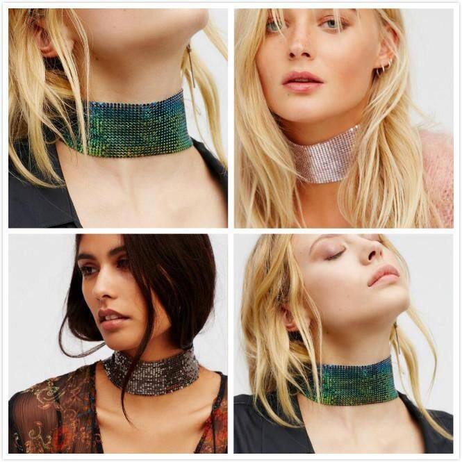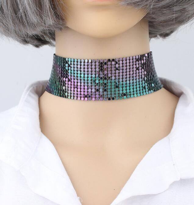 European and American Cross-border Jewelry Design Sense Punk Spice choker Clavicle Chain Exaggerated Metal Sequin Necklace Chain