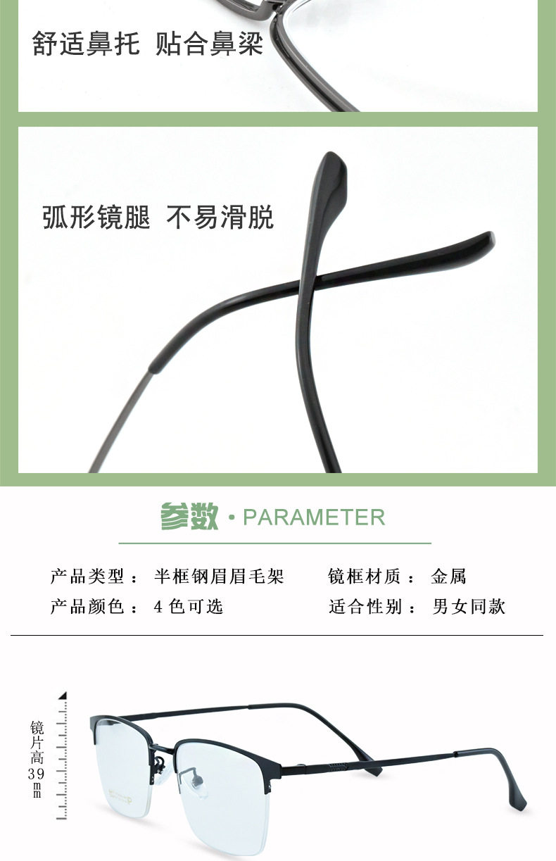 Business high-end elegant scum steel eyebrow science men's eyebrow frame half-frame metal myopia glasses frame eyebrow line frame