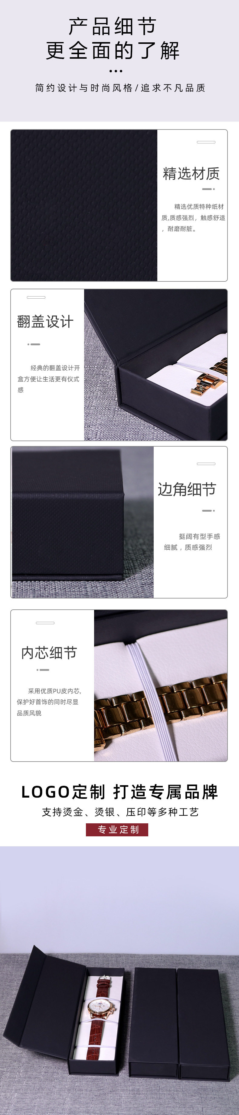 Magnet flip watch box storage box men and women gift box packaging single necklace jewelry watch box printable LOGO