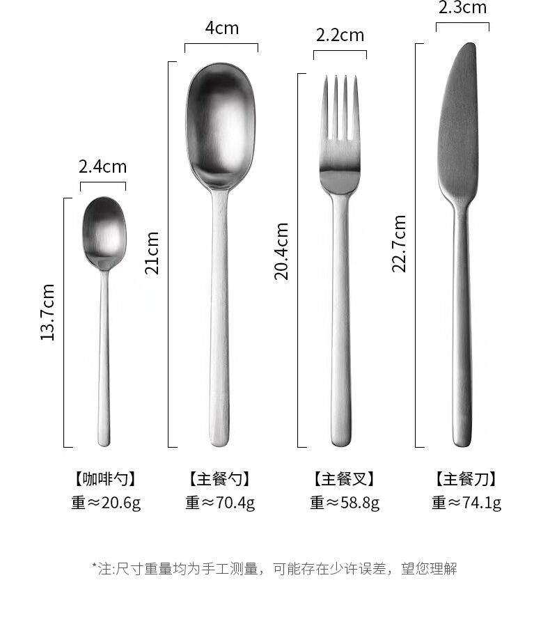 | Color | Dinner Knife,Fork,Meal spoon,Teaspoon,Four-piece set |
