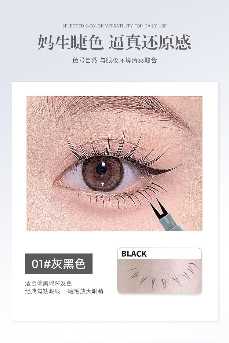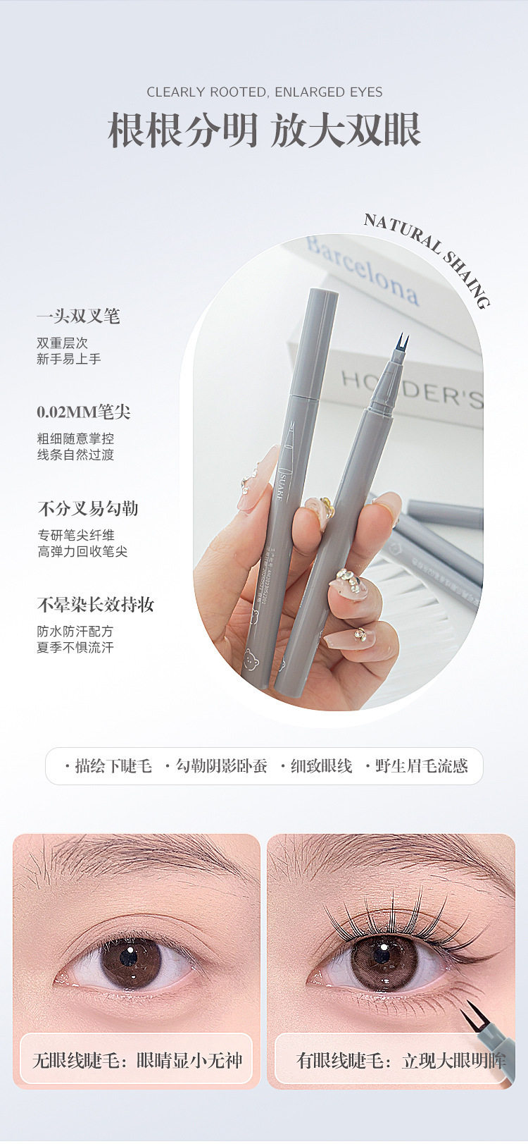 Double claw eyeliner for women non-blooming waterproof long-lasting non-decolorization eyelash silkworm cat claw very fine eyeliner pen
