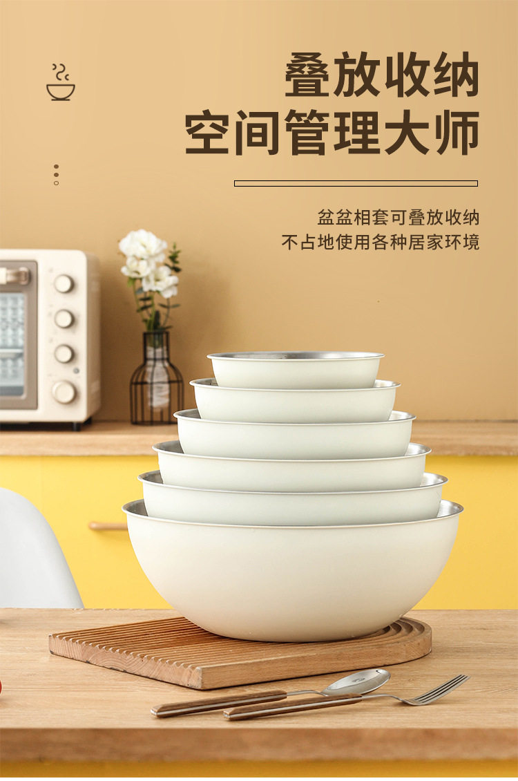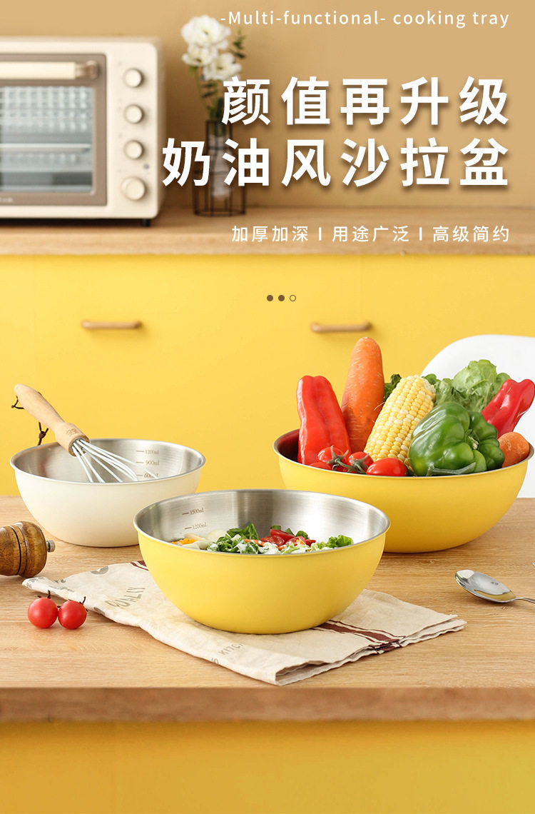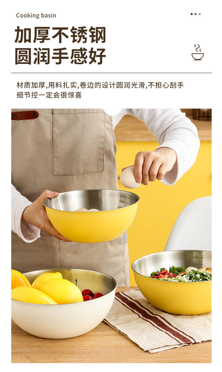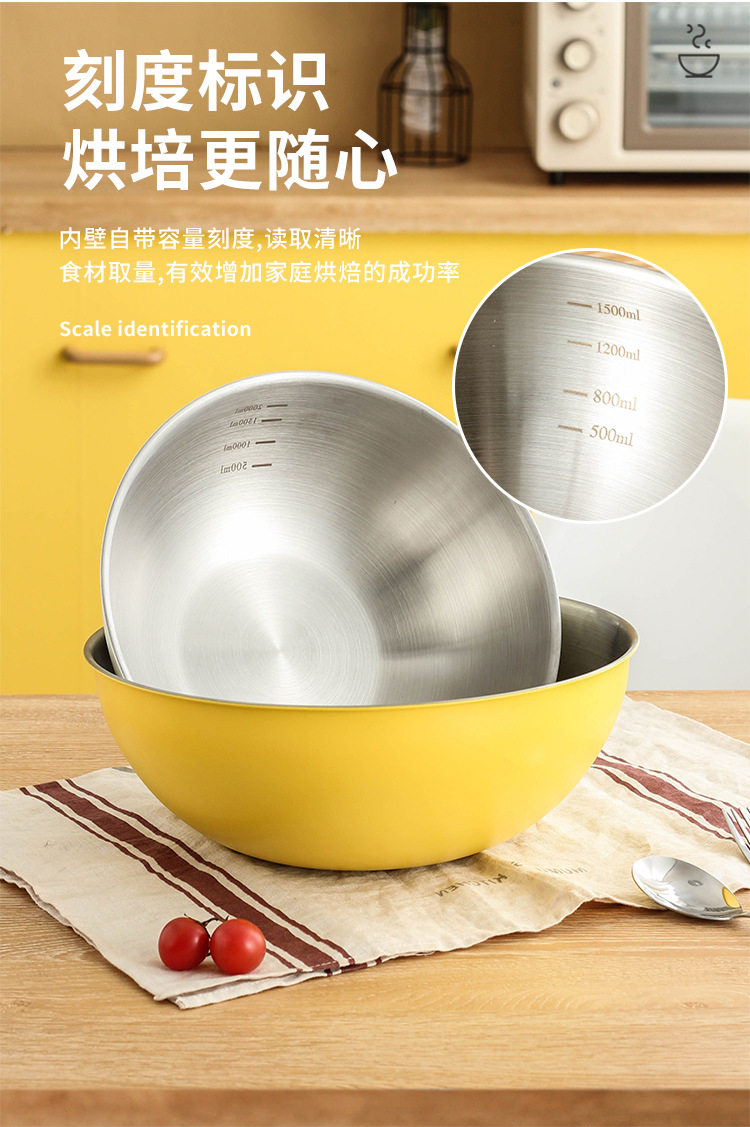 Factory Direct Sales Korean Salad Basin Stainless Steel Household Salad Bowl with Scale and Basin Baking Egg Cooking Basin