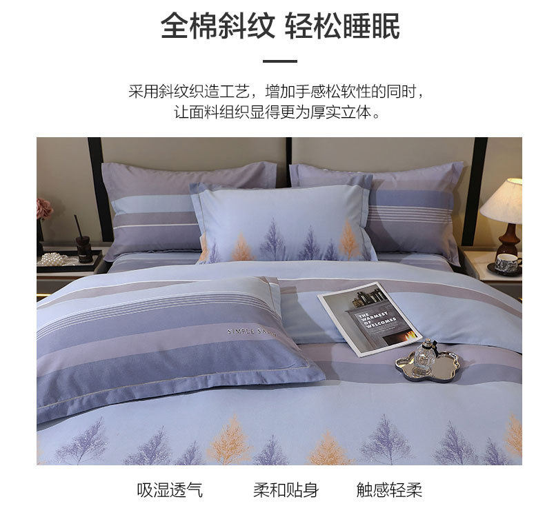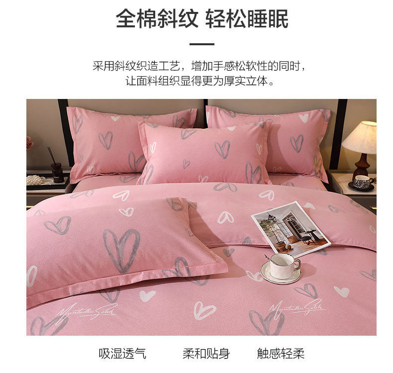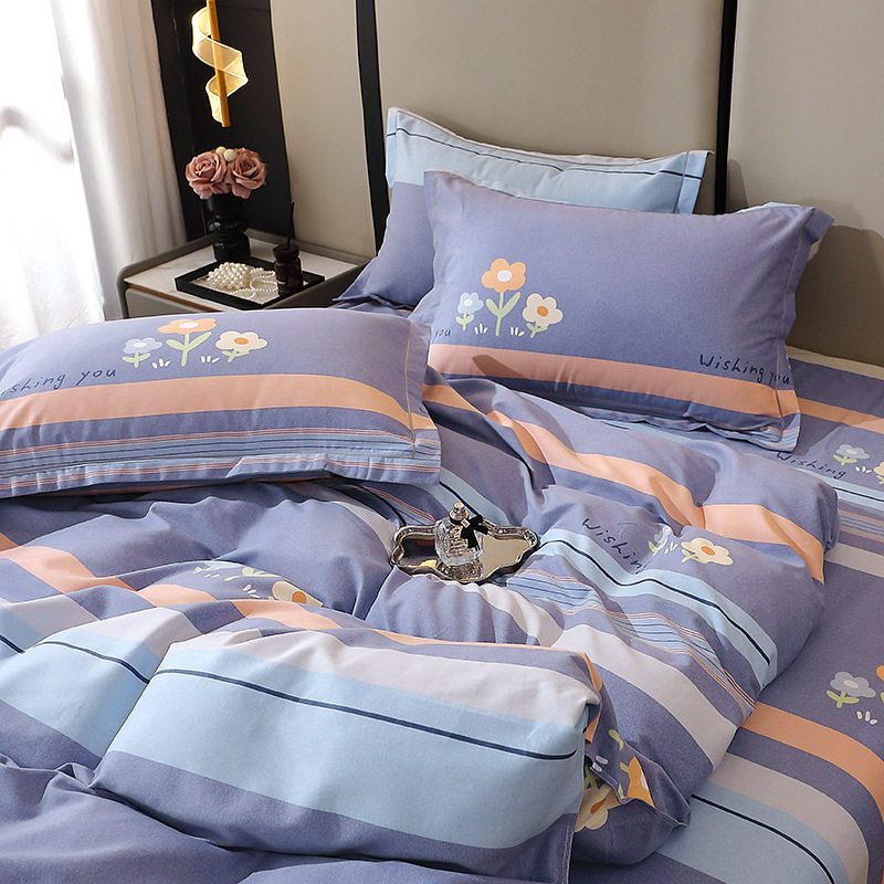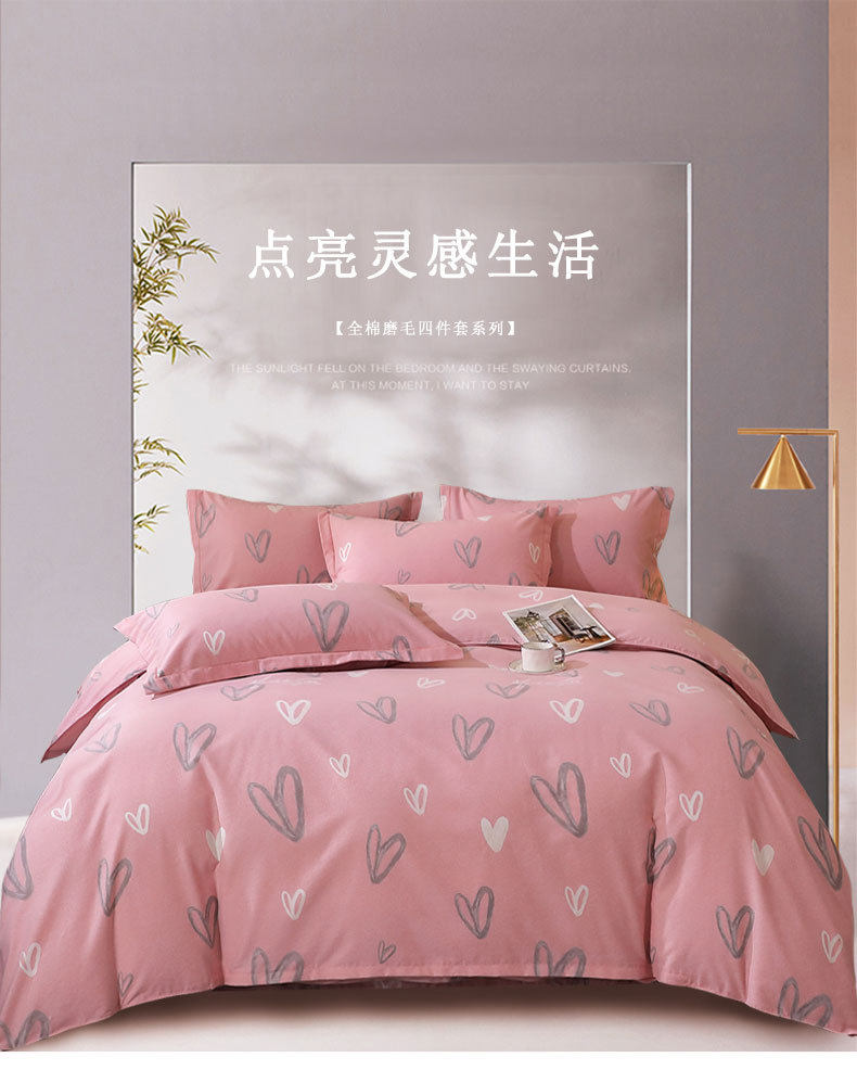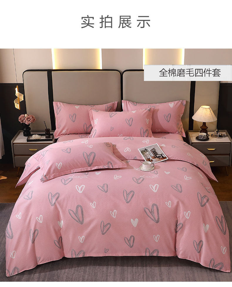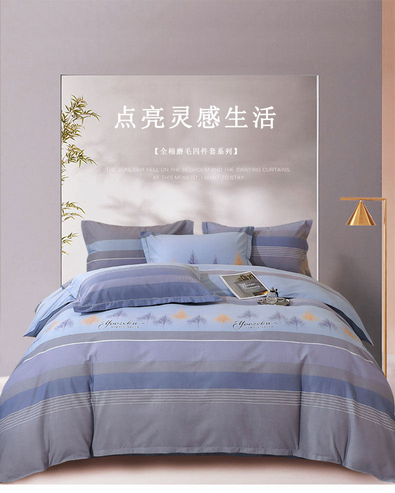 Mercury Home Textiles Wholesale Pure Cotton Four-Piece Set, All-Cotton Eco-Friendly Brushed Cotton for Autumn and Winter, Thickened and Warm Brushed Cotton Three-Piece Set