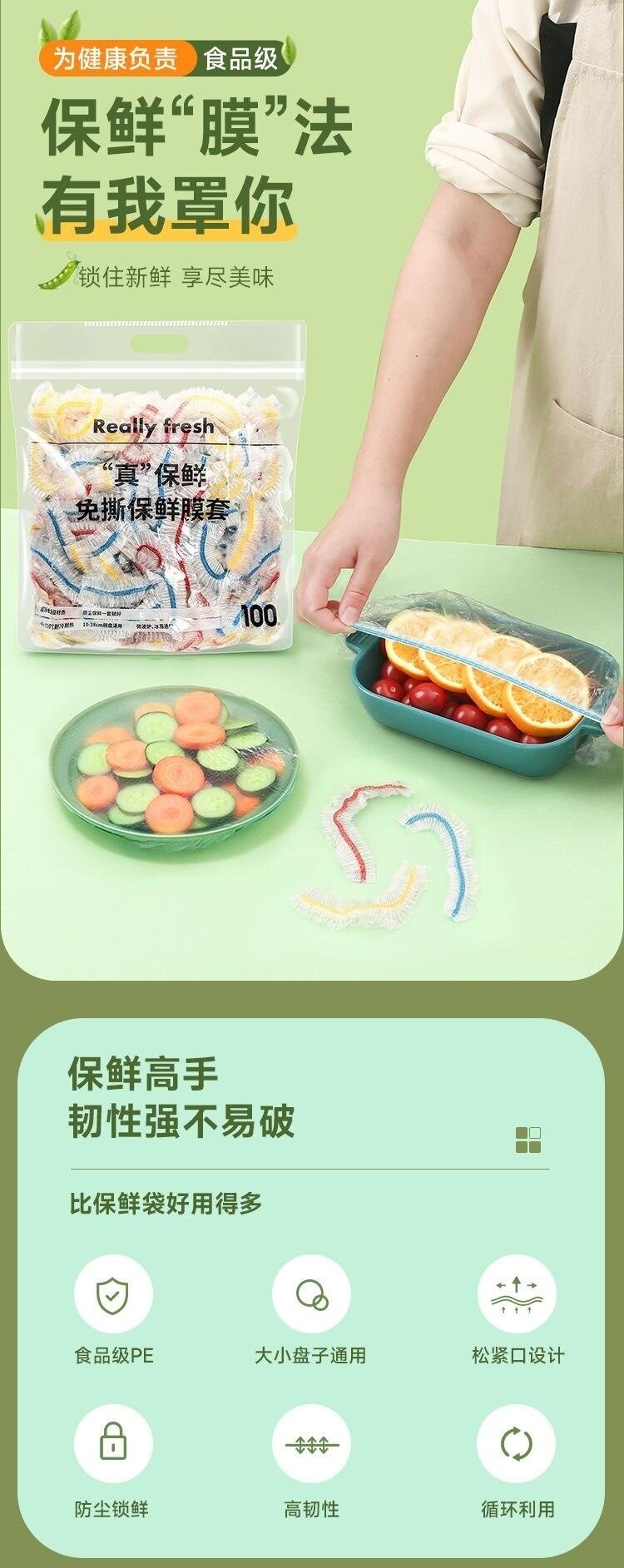 Disposable cling film cover food grade household refrigerator leftovers bowl cover cover universal elastic food cling film cover