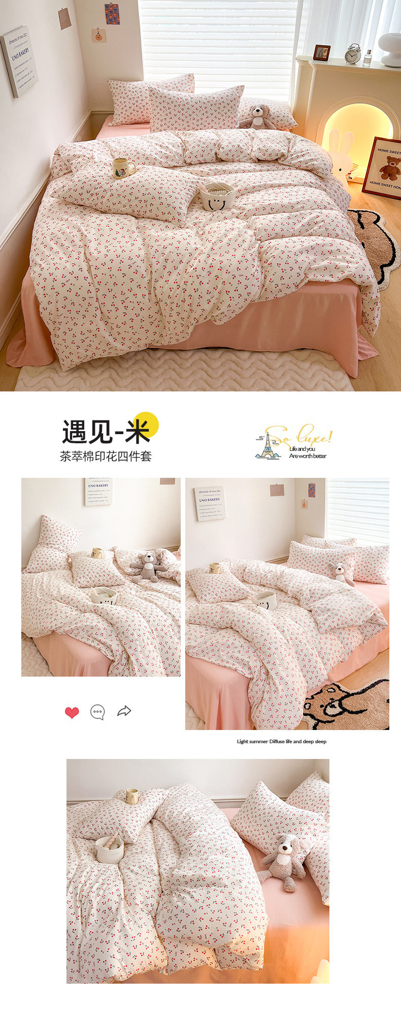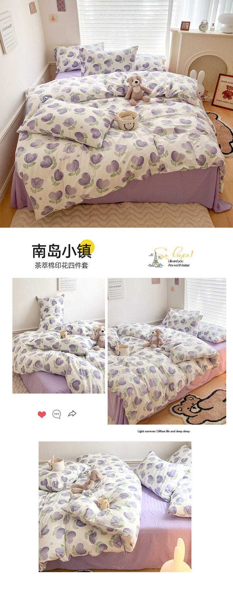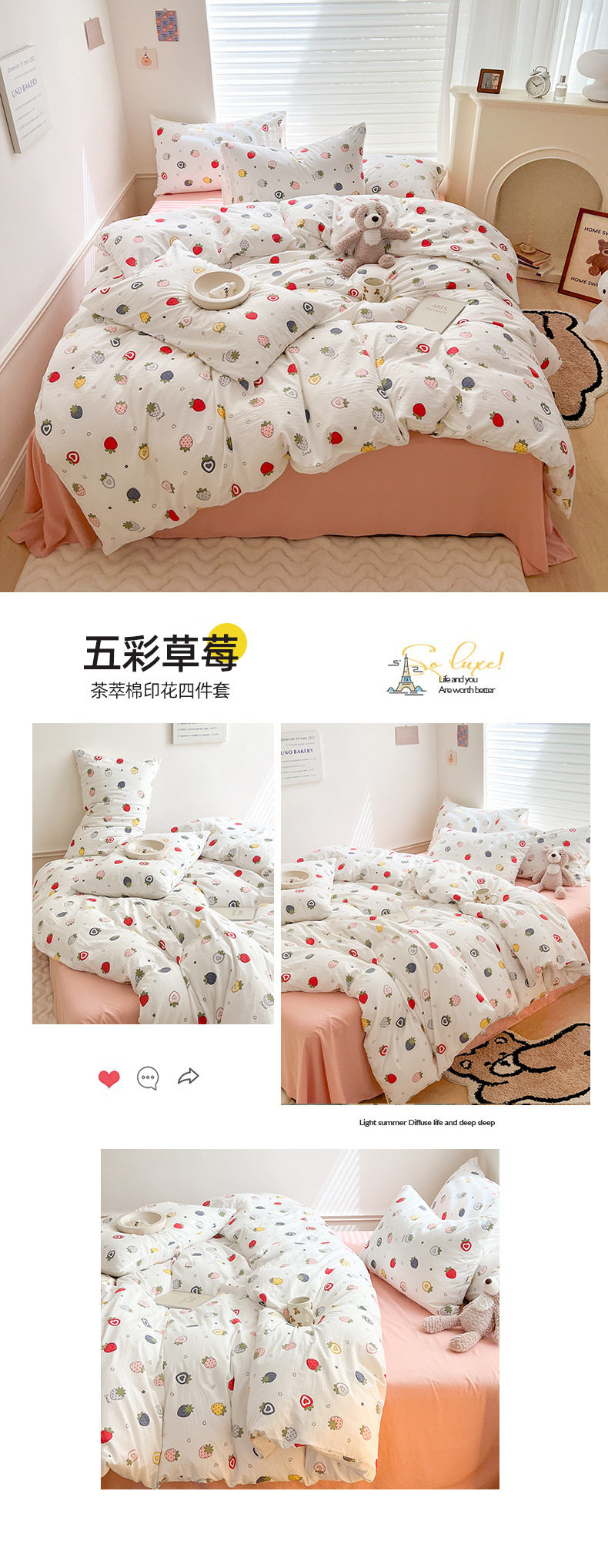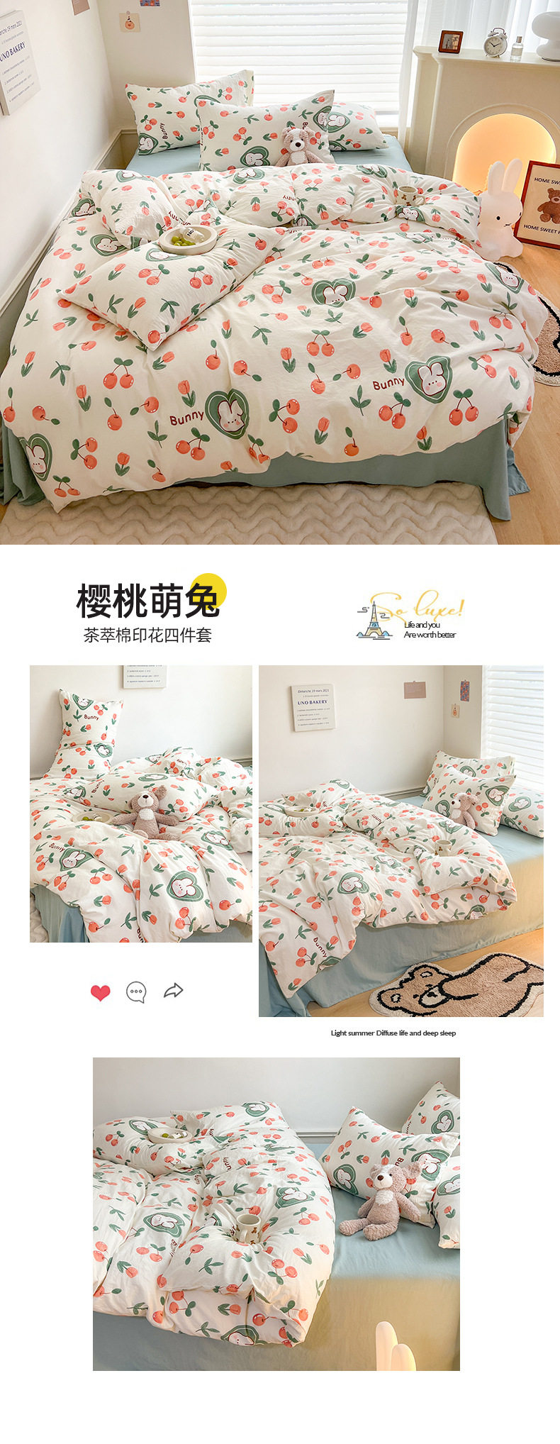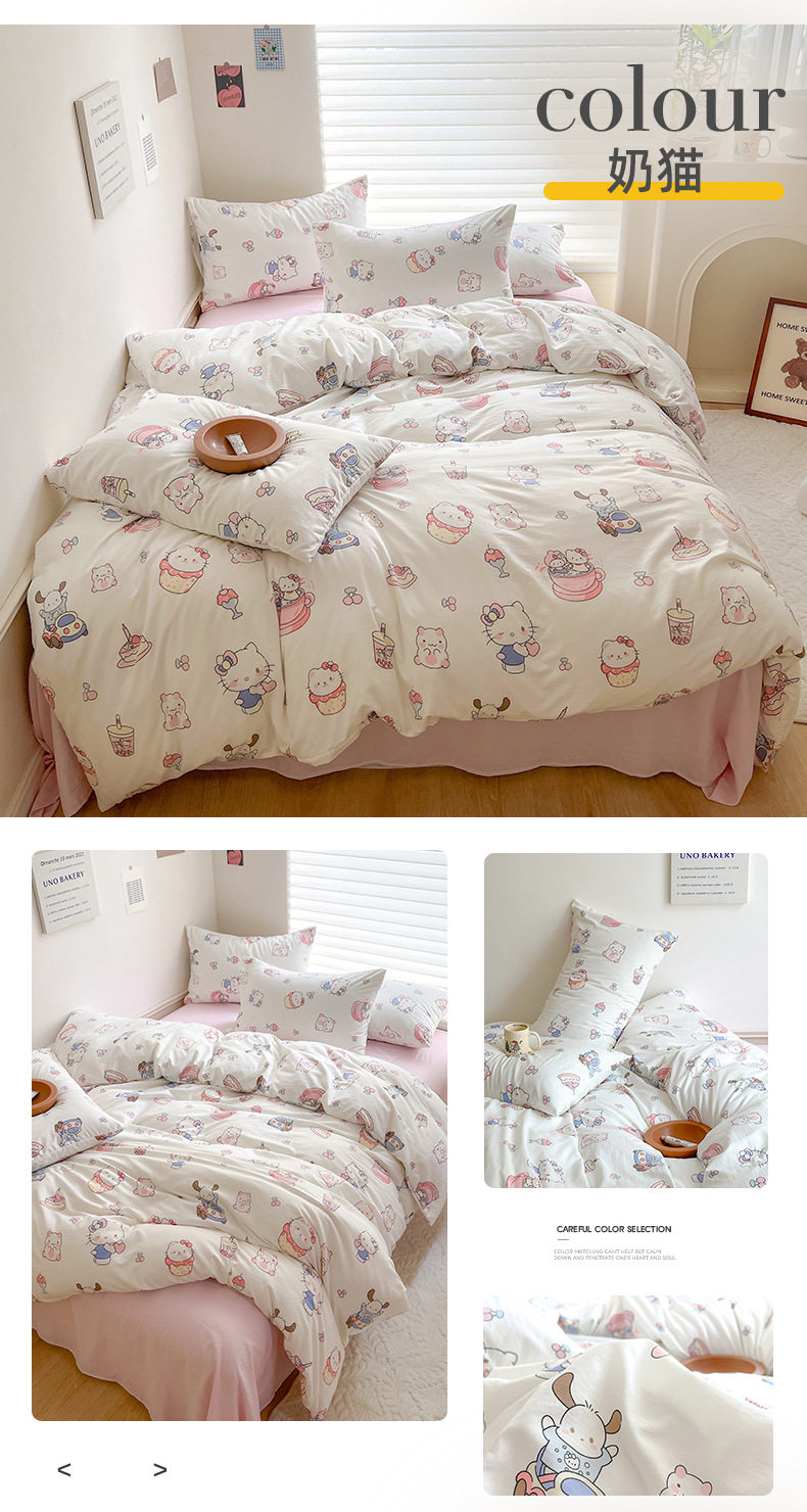 Class A Double-layer Yarn Four-piece Set Student Dormitory Bedding Cartoon Cute Quilt Cover Bed Hat Cotton and Linen Three-piece Set