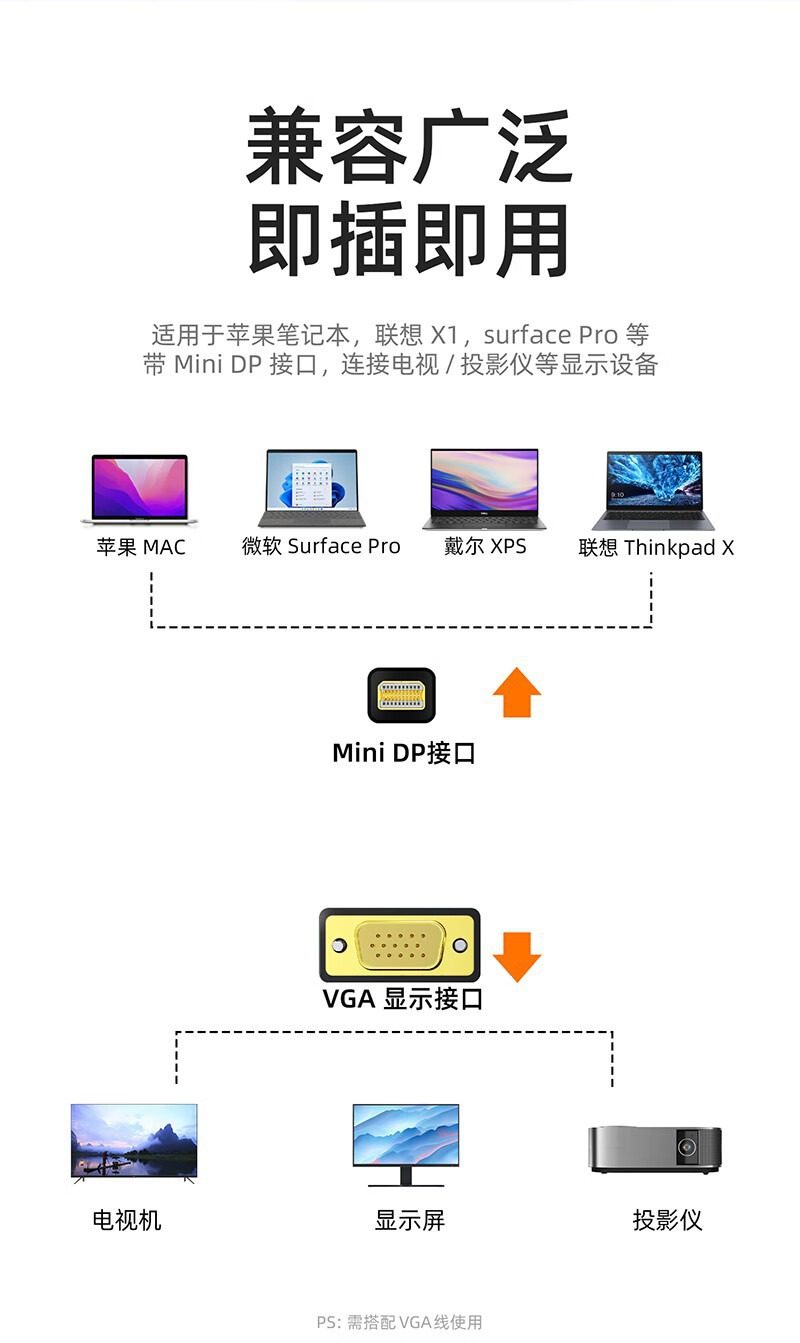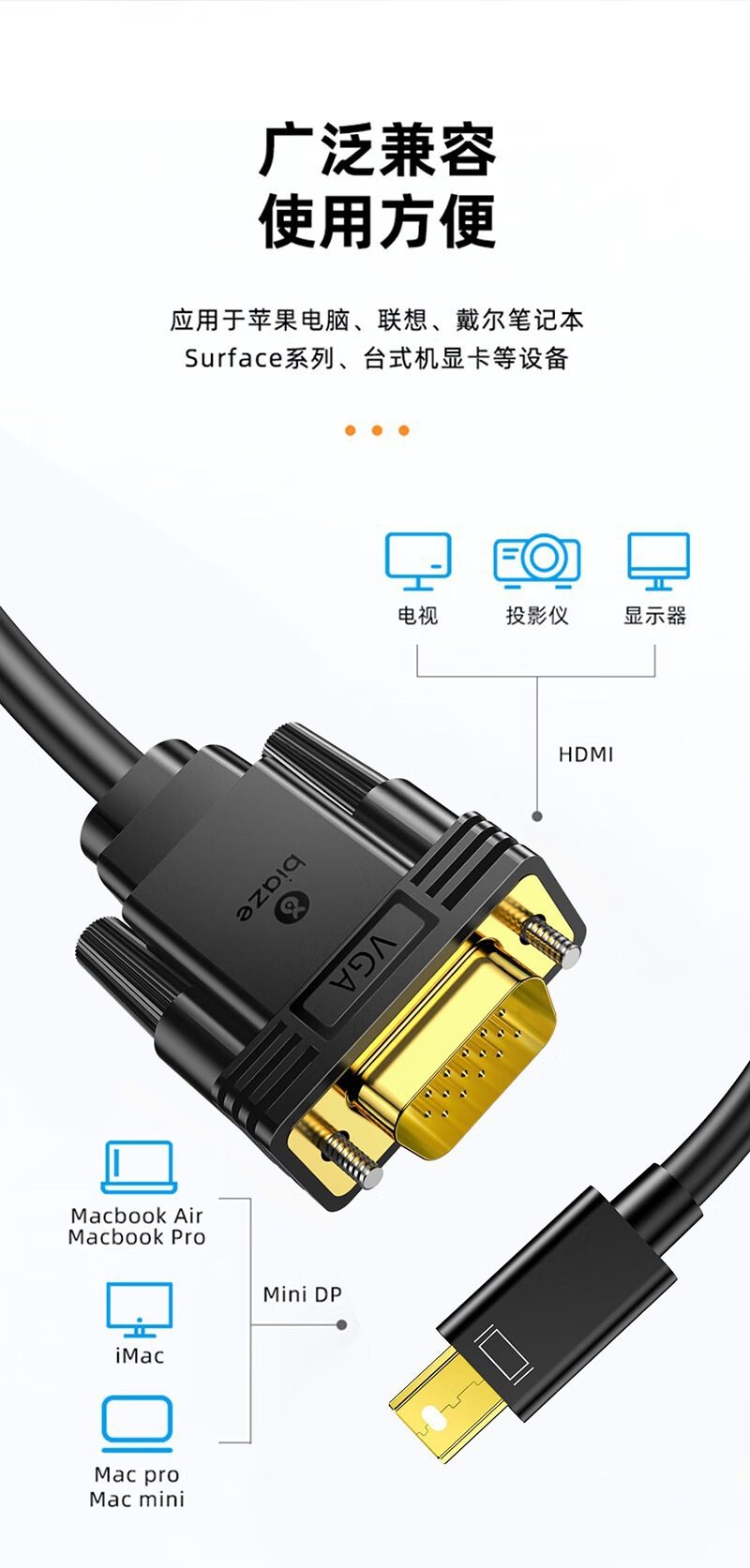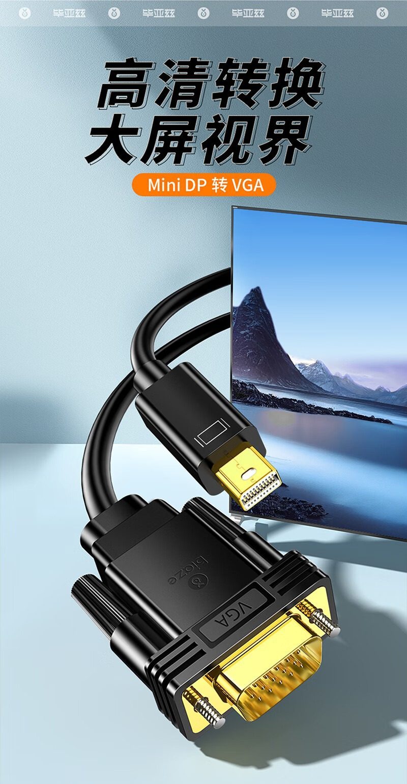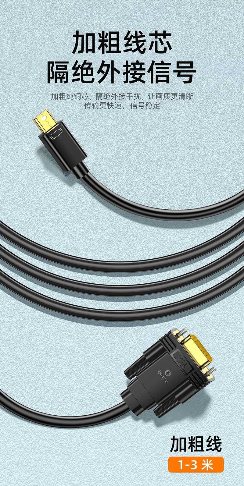 Biaz Minidp to Vga Adapter Cable Mini Thunderbolt Converter Suitable for Apple Display Data Cable