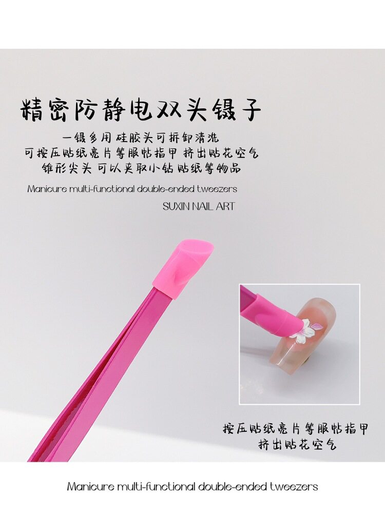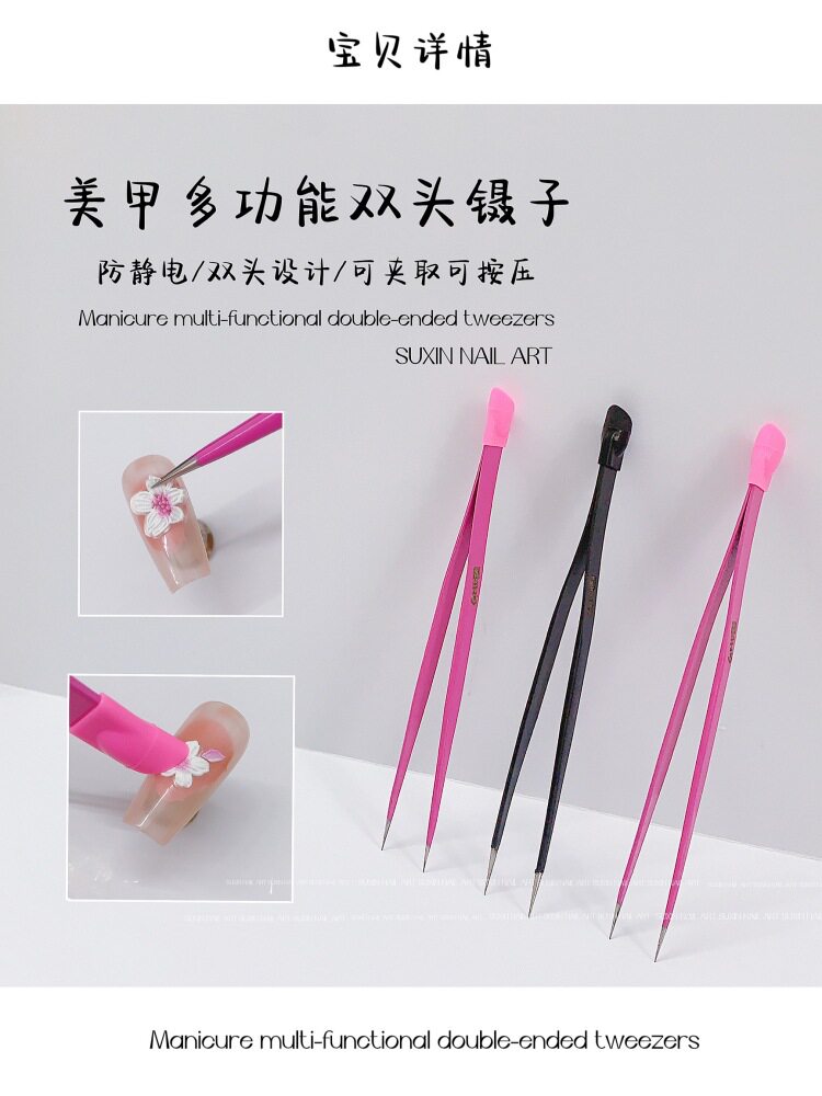 Nail art multi-function dual-purpose tweezers sticker special sticky clip jewelry pointed double silicone pressable tool