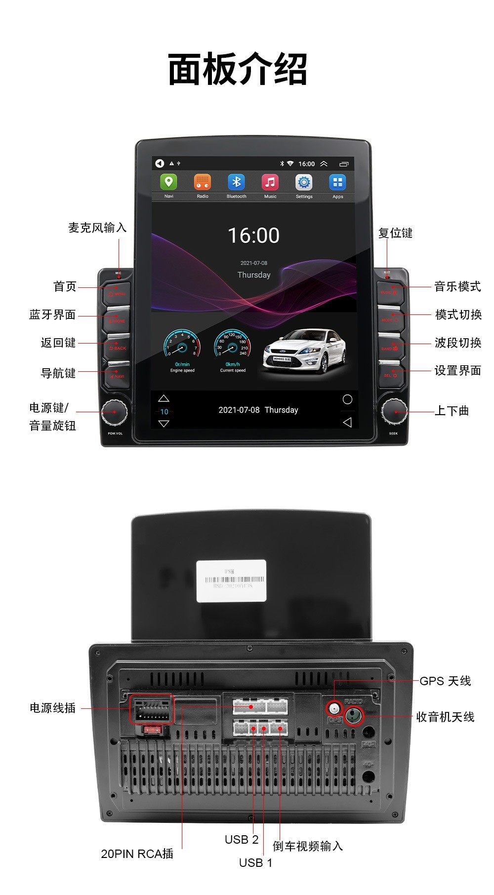 Overseas version of the small King Kong 9.7 inch vertical screen Android large screen intelligent navigator mp5 player all-in-one machine