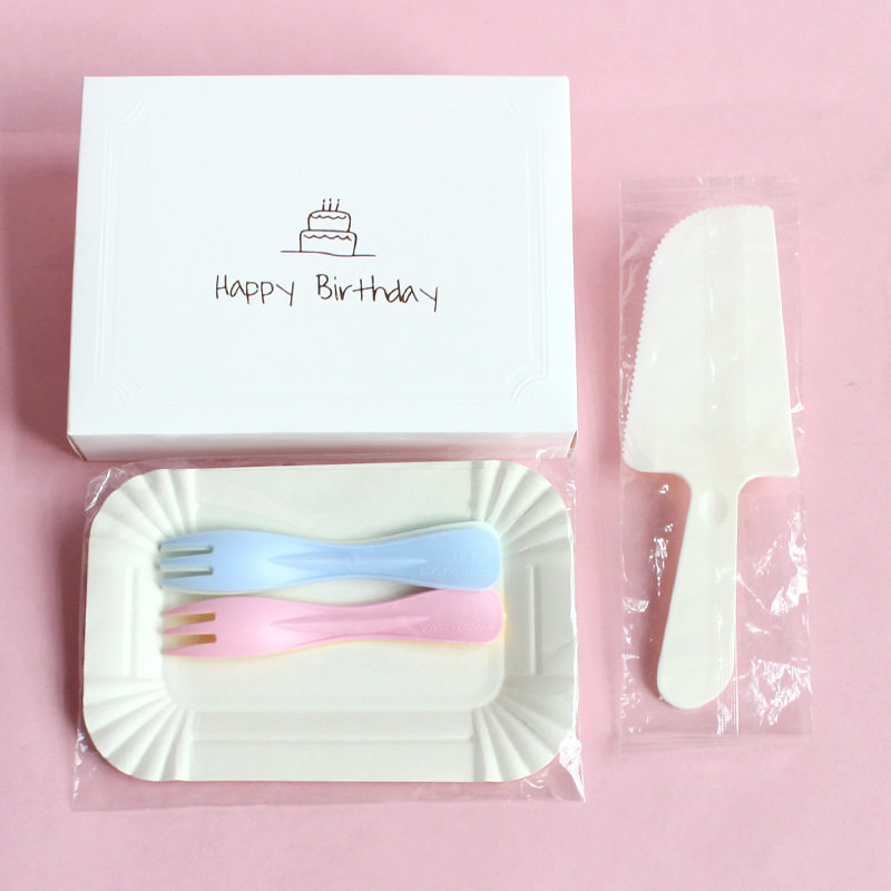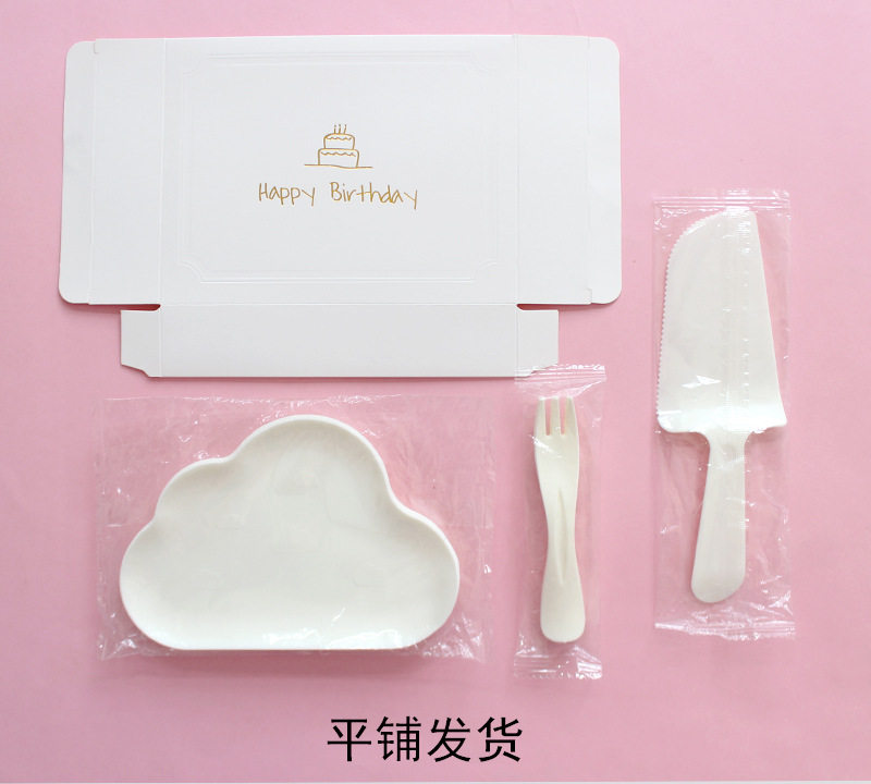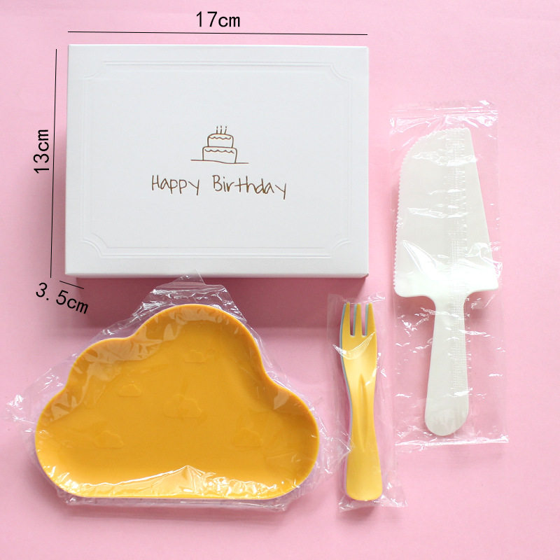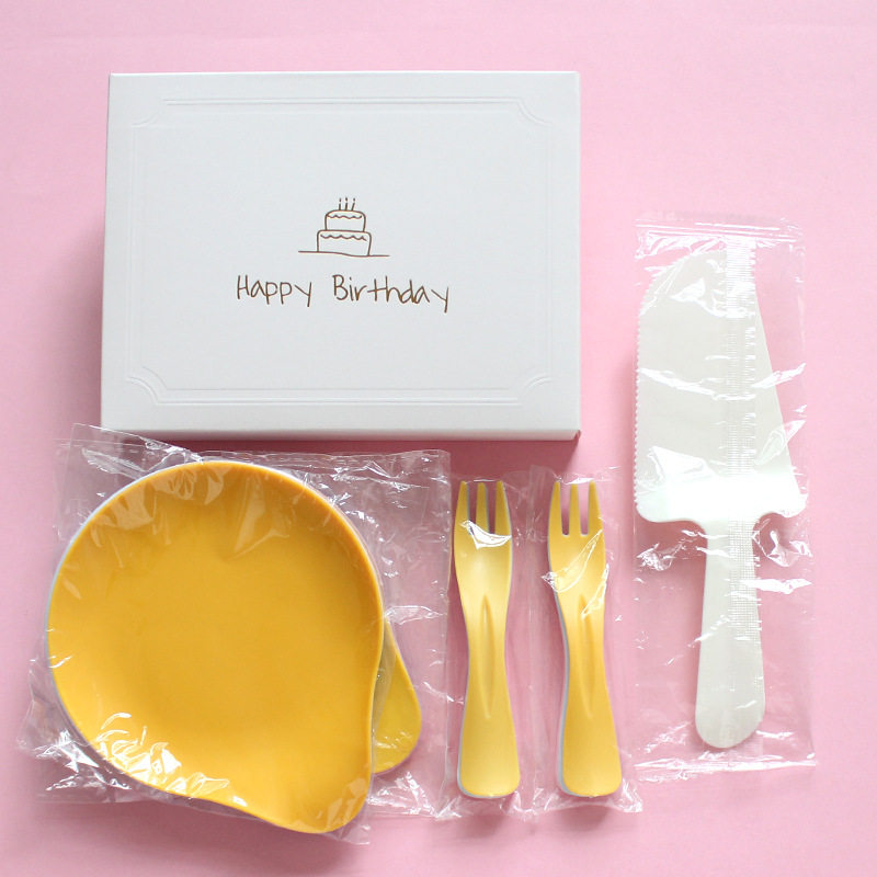Birthday Dinner Plate Box Set Party Cake Disposable Knife and Fork Plate Combination Food Grade Plastic