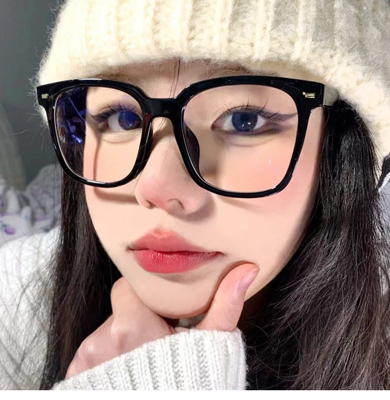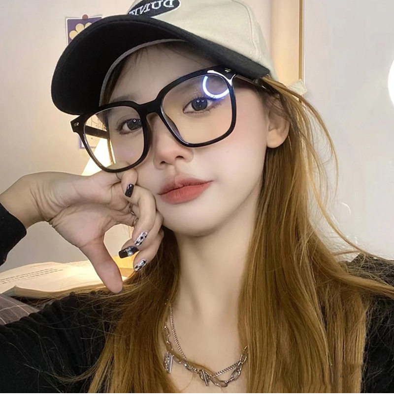 Korean style black glasses frame with large myopia frame glasses frame men's red book with blue light-proof flat glasses for women