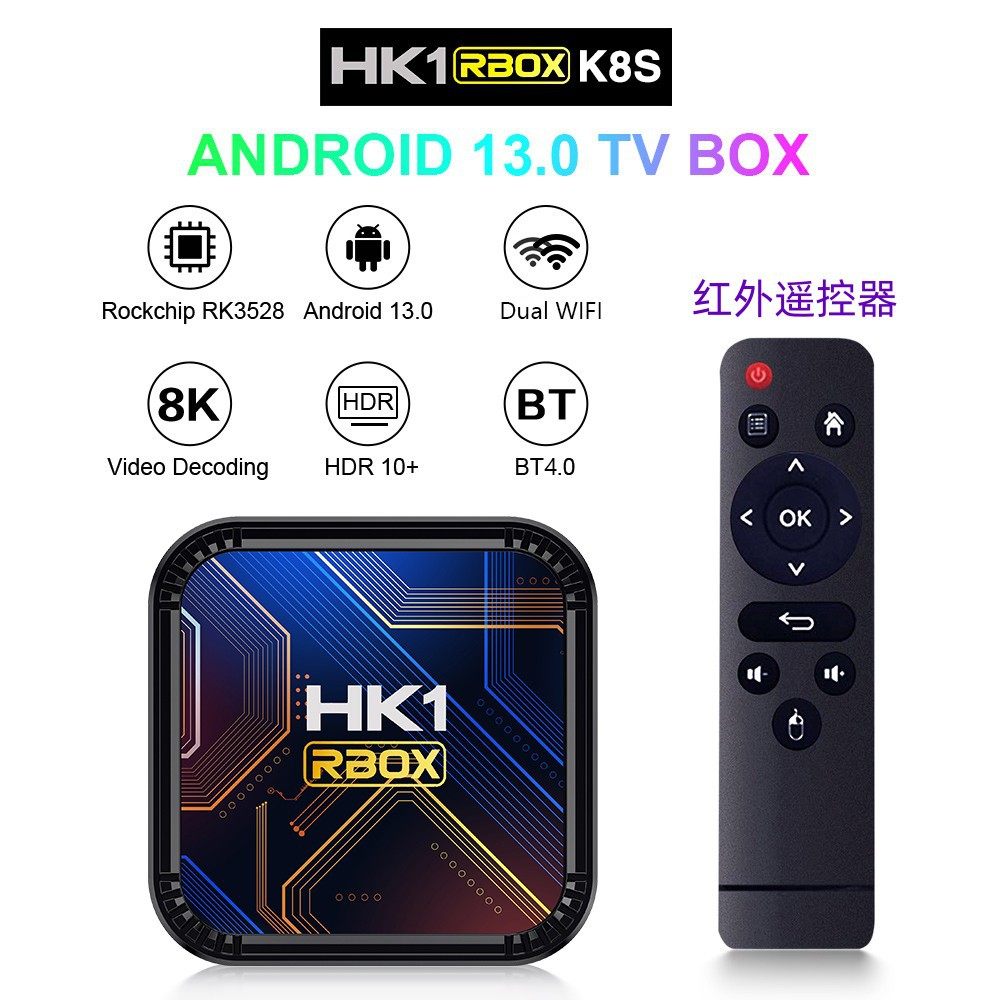 Hk1 Rbox K8S Android 13 Network Set-Top Box Tv Box 8K Dual-Band Wifi Network Player 3528