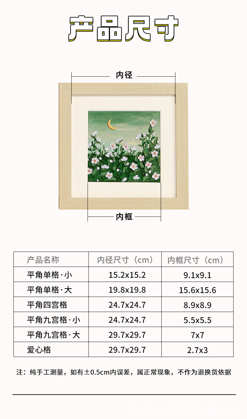 | Inner frame size | Four grid log inner diameter 24.7*24.7,Four grid white inner diameter 24.7*24.7,Jiugongge white inner diameter 24.7*24.7,Small Palace grid love heart style inner diameter 29.7*29.7,Big Palace grid love heart style inner diameter 29.7*29.7 |