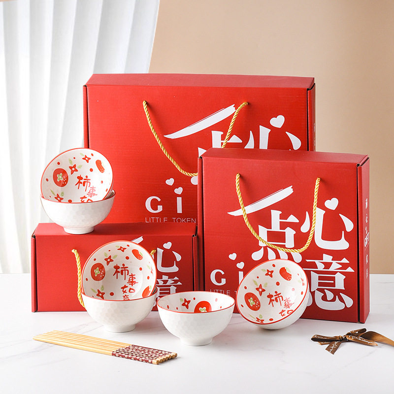 Caution Porcelain Bowl Persimmon Ruyi Set Ceramic Gift Box Tableware Opening Ceremony Gift Box Gift Bowl