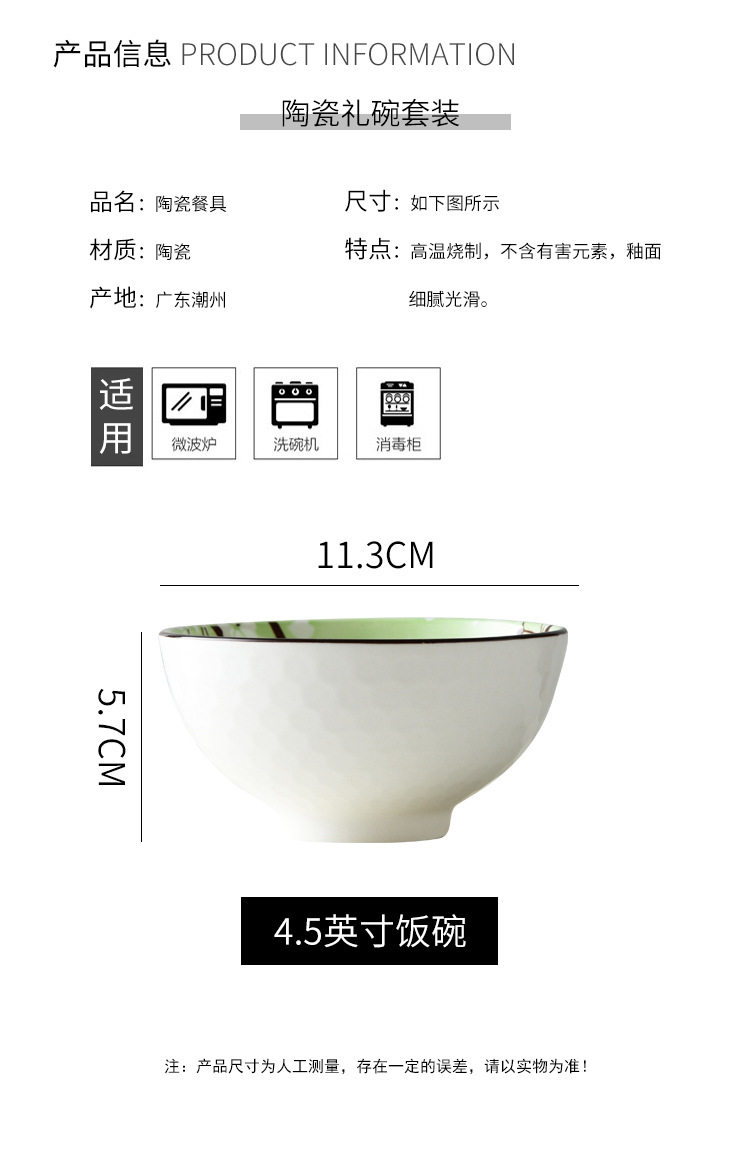 | Specifications | 2 bowls and 2 chopsticks (a box of 50 sets),4 bowls and 4 chopsticks (a box of 24 sets),6 bowls and 6 chopsticks (a box of 20 sets) |