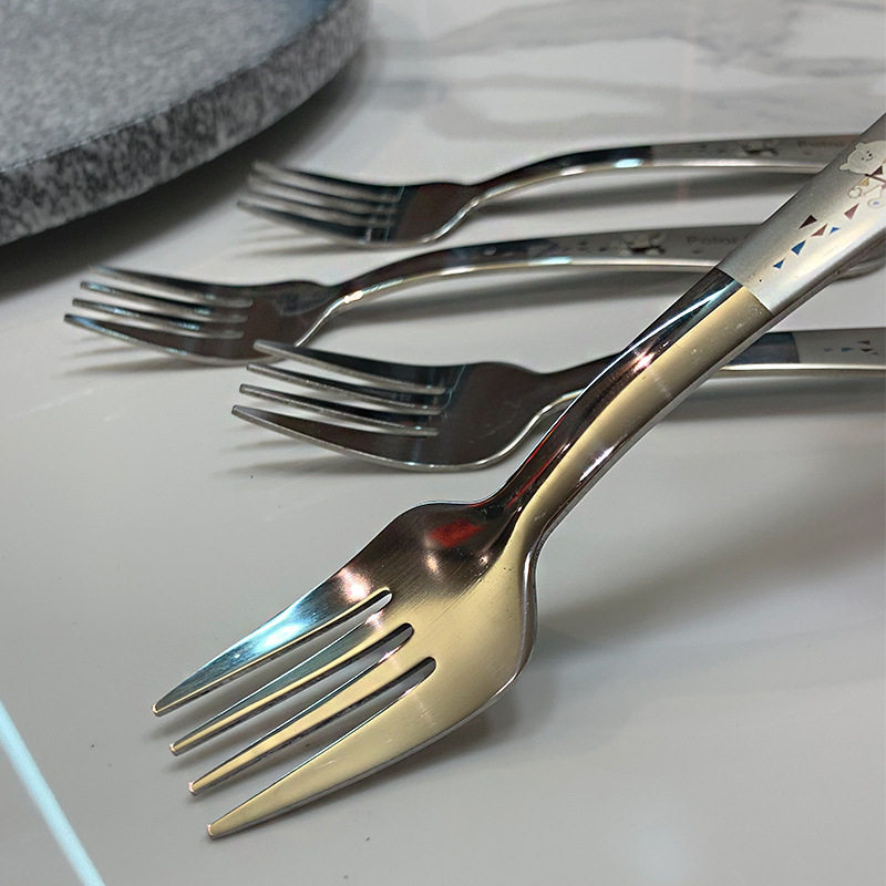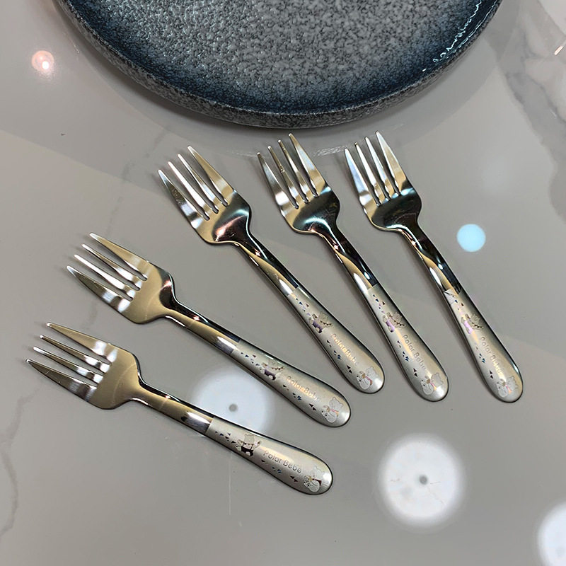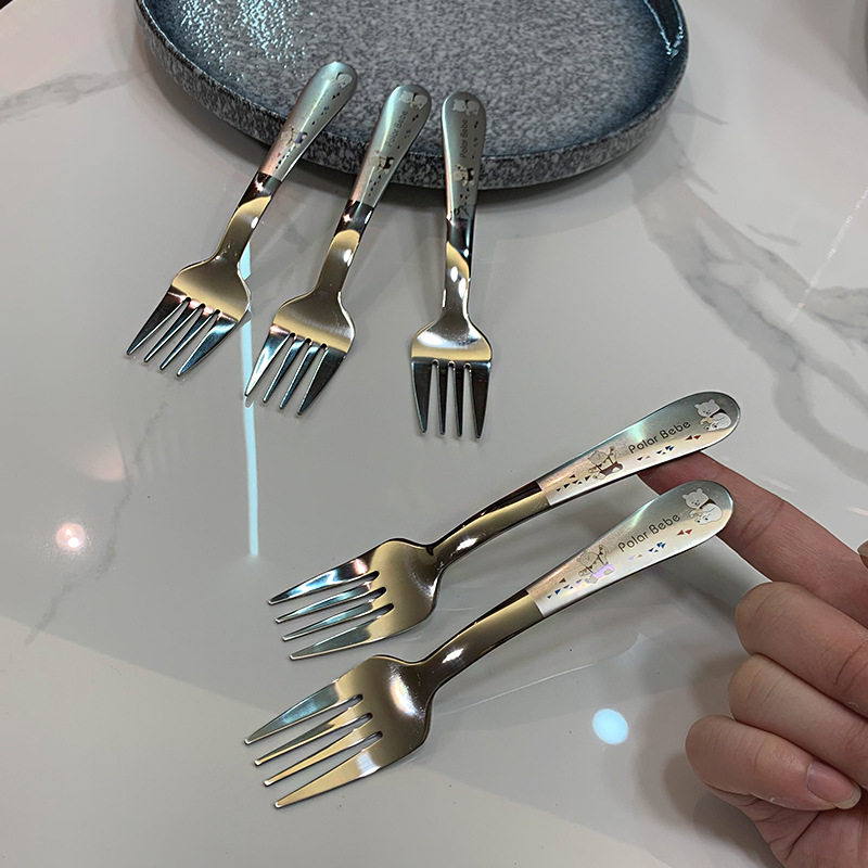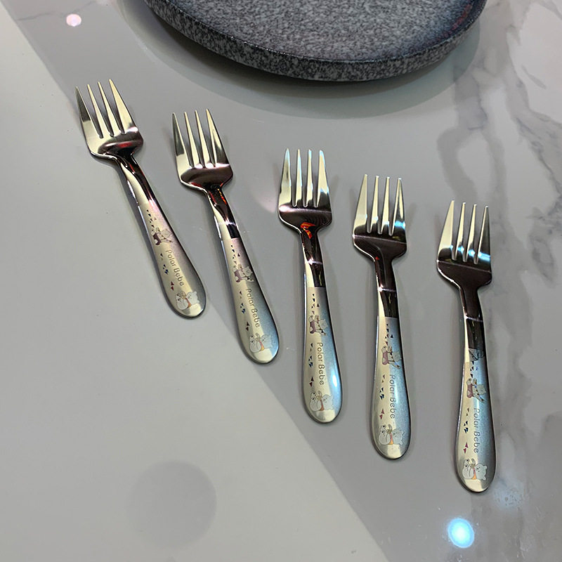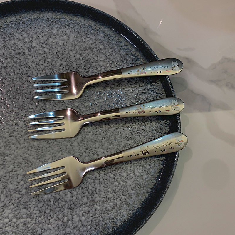 4-12 years old recommended] 304 stainless steel cartoon children learn to eat tableware fork fruit sign short handle fork