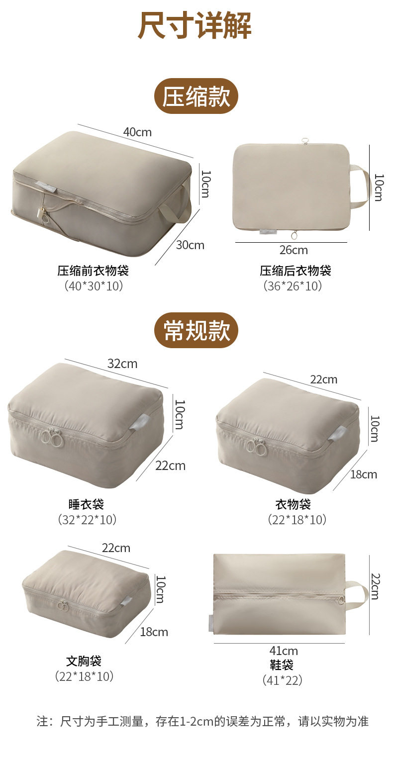 Color Beige Compressed Large,Beige Compressed Medium,Beige compression six-piece set,Fog Blue Compressed Large,Fog Blue Compressed Medium,Fog blue compression six-piece set,Bean powder compressed large,bean paste powder compressed medium,Bean powder compressed six-piece set,Extremely Gray Compressed Large,Extreme Gray Compressed Medium,Extreme gray compression six-piece set,Beige Shoe Bag,Mist Blue Shoe Bag,Bean powder shoe bag,Ultimate Grey Shoe Bag,Beige underwear bag,Beige Pajama Bag,Grey Pajama Bag,Grey underwear bag,Blue Pajama Bag,Blue underwear bag,Pink Pajama Bag,Pink underwear bag,black large,Black Medium,Black underwear bag,Black 6-piece set