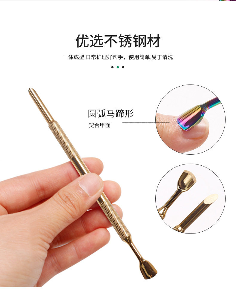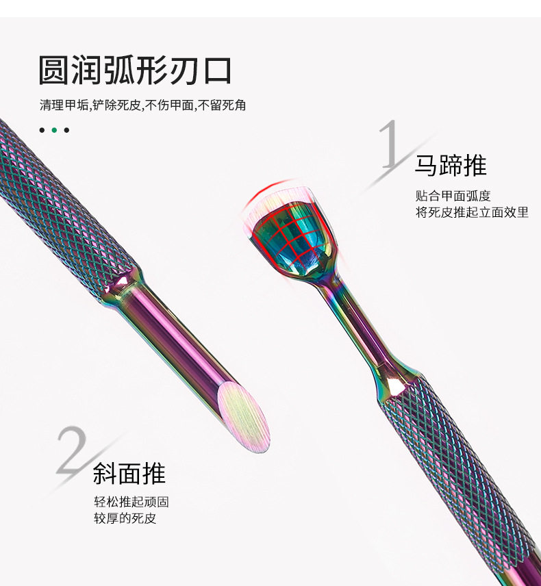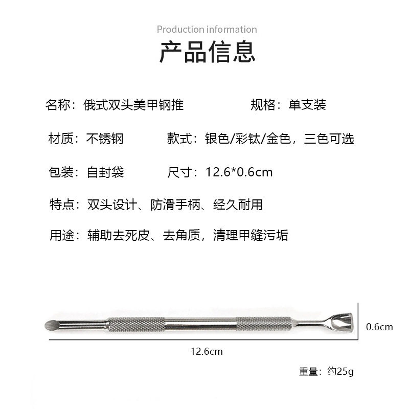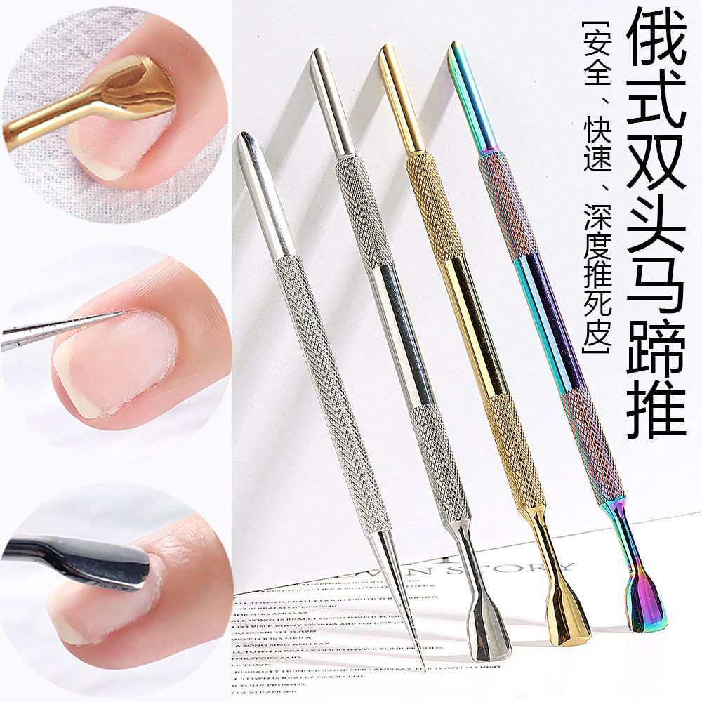 Russian double-headed horseshoe steel push Bevel dead skin push Ukrainian front steel push manicure shop special manicure tool