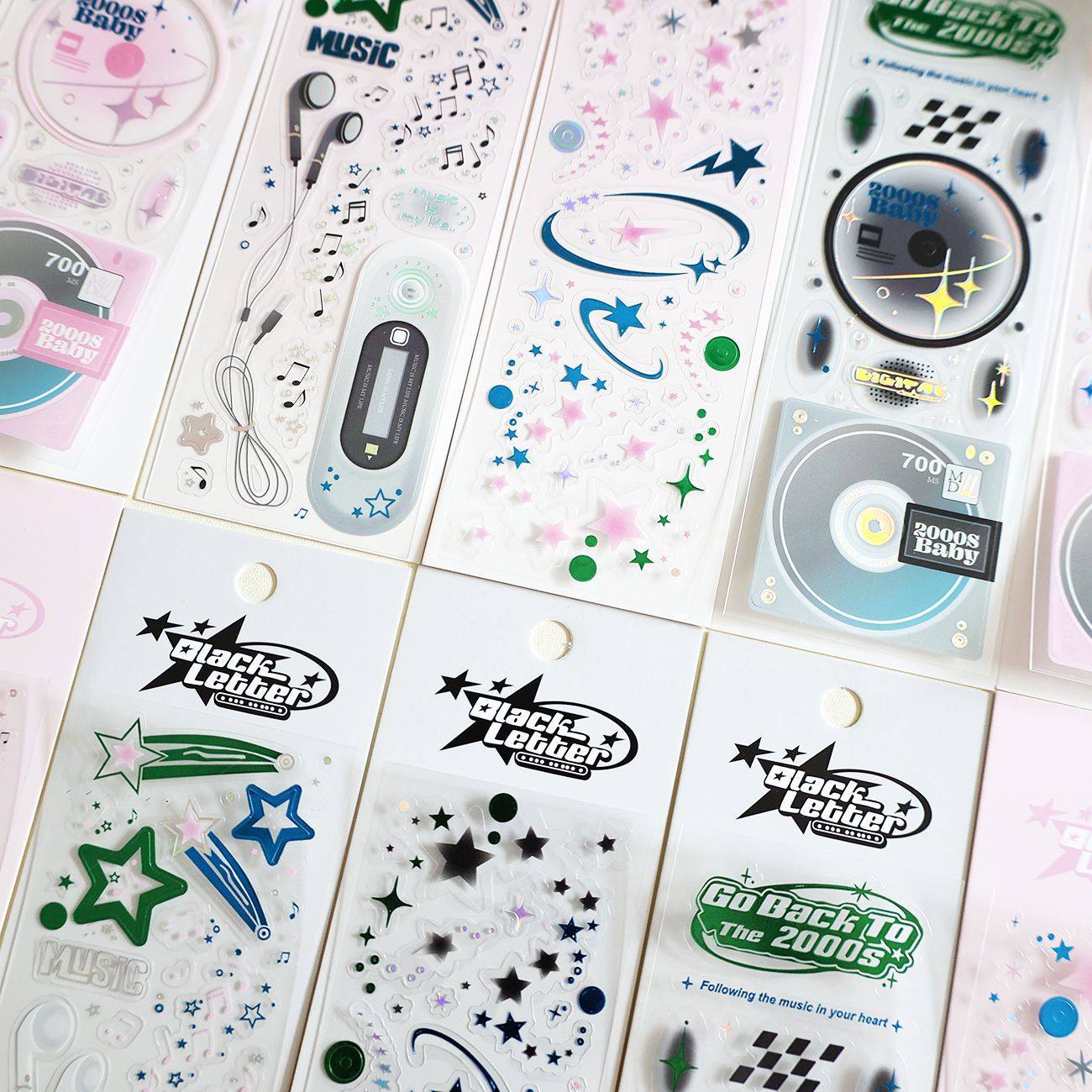 Millennium y2g shiny hot silver stickers retro nostalgic CD MP3 hand account DIY goo card decorative materials