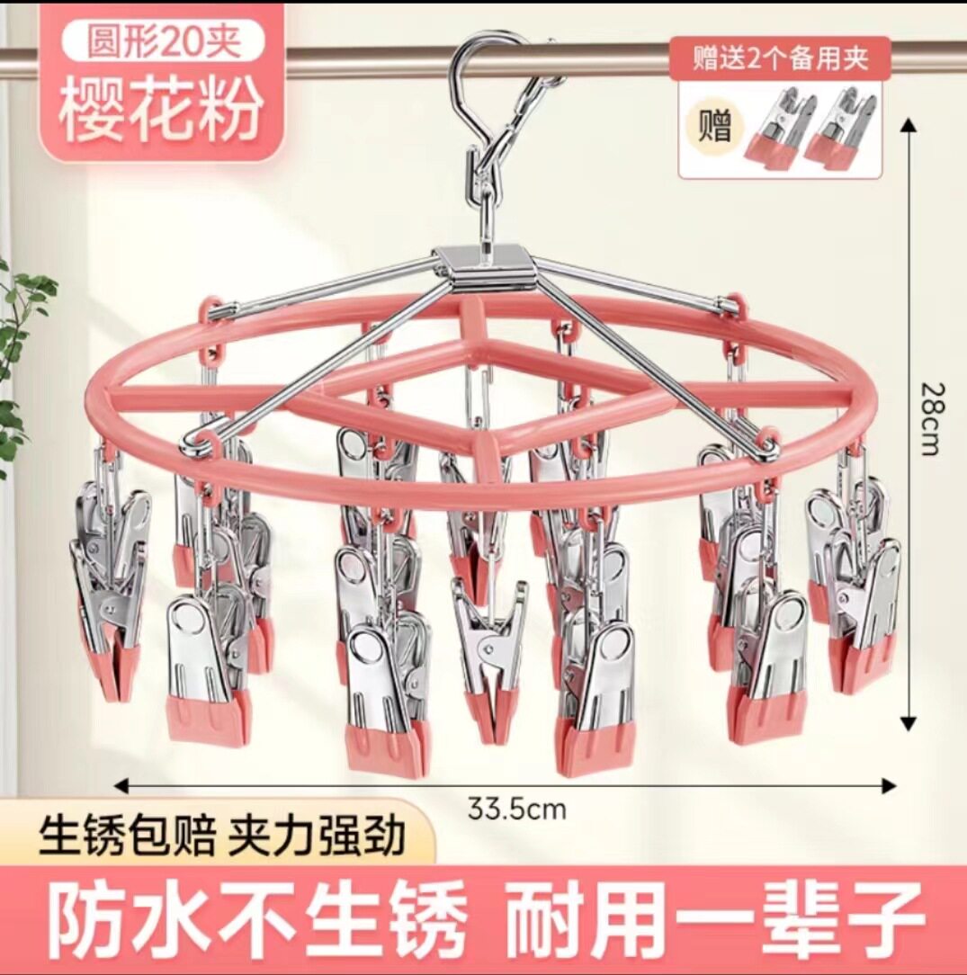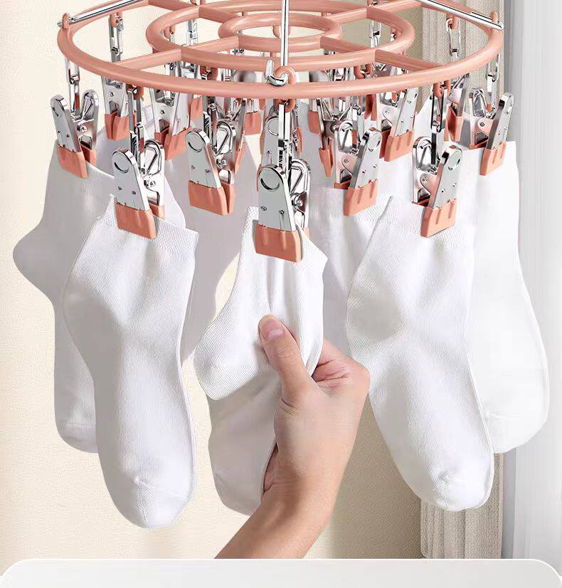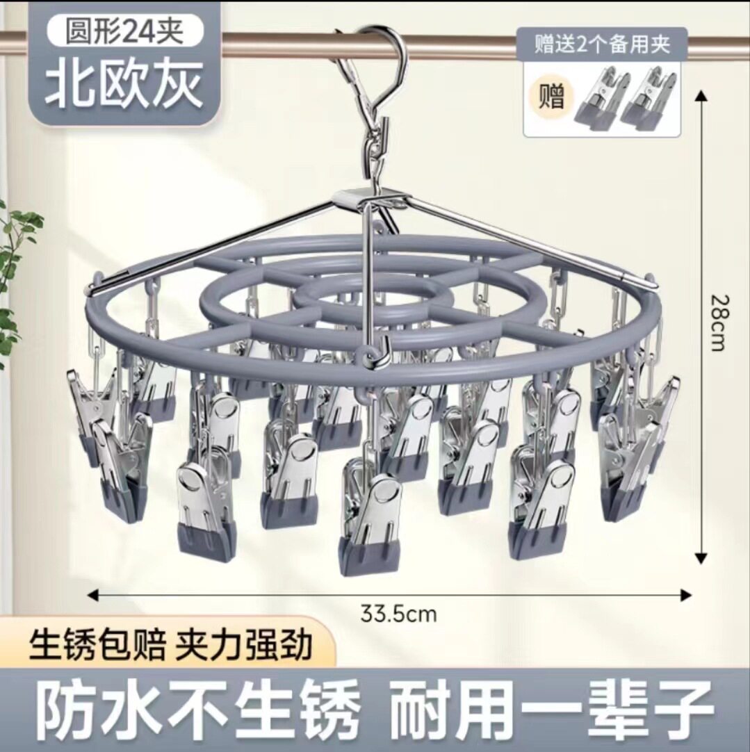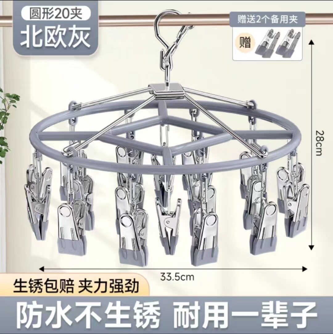 Household Stainless Steel Disc Non-slip Socks Hanger Socks Rack Underwear Baby Clothes Hanger Multi-clip Balcony Drying Rack