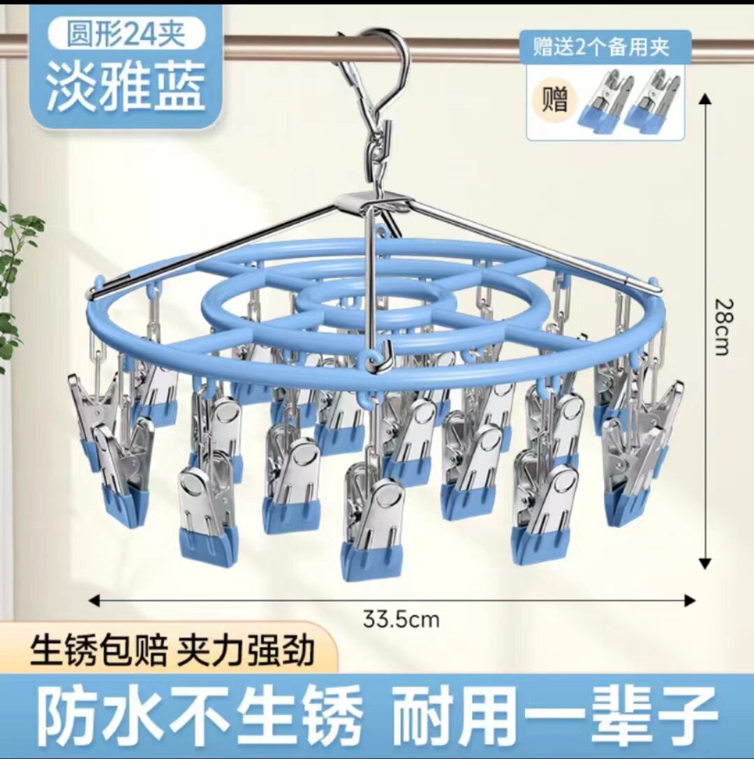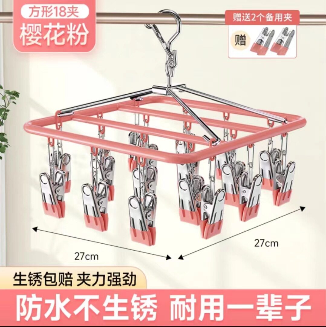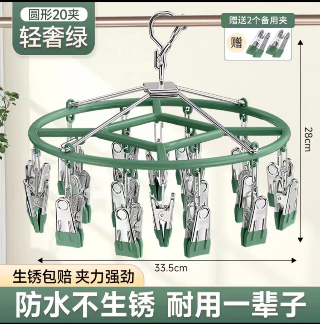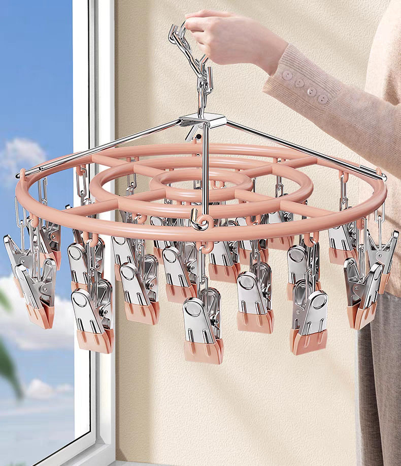 Household Stainless Steel Disc Non-slip Socks Hanger Socks Rack Underwear Baby Clothes Hanger Multi-clip Balcony Drying Rack