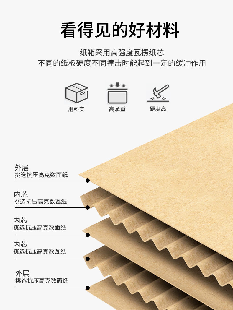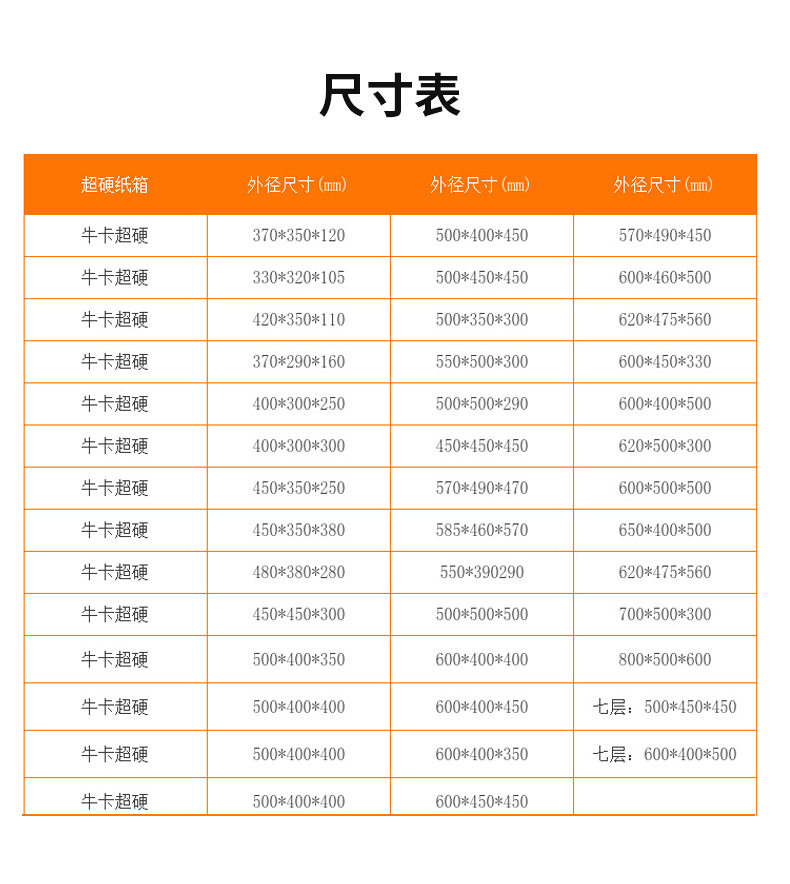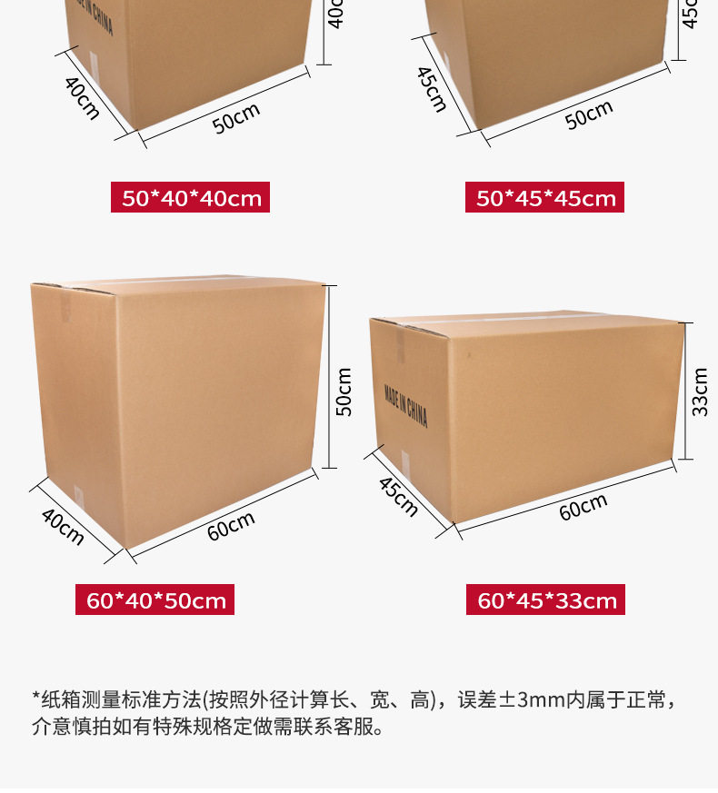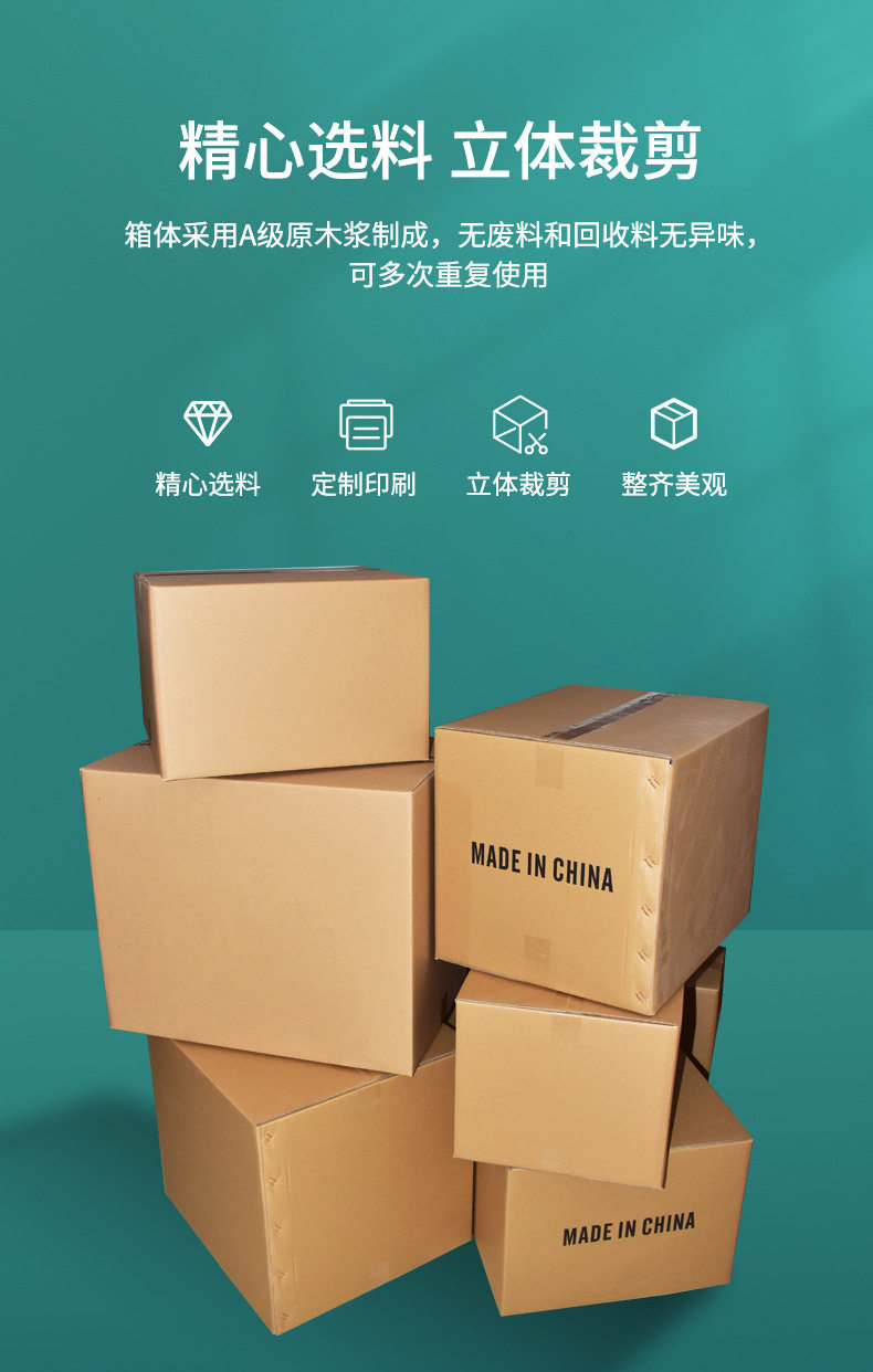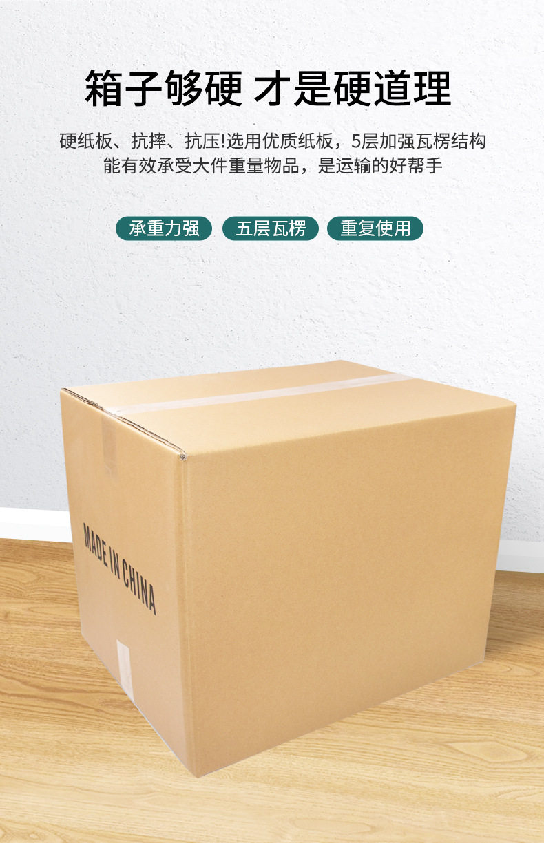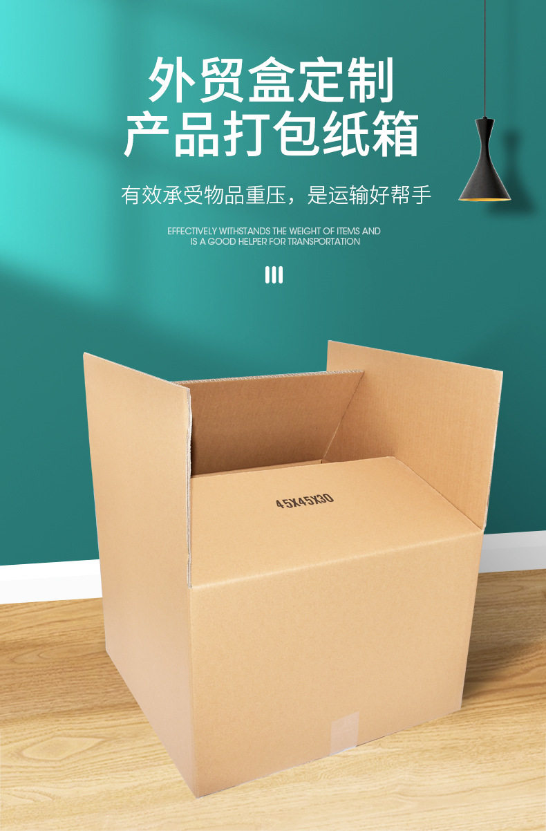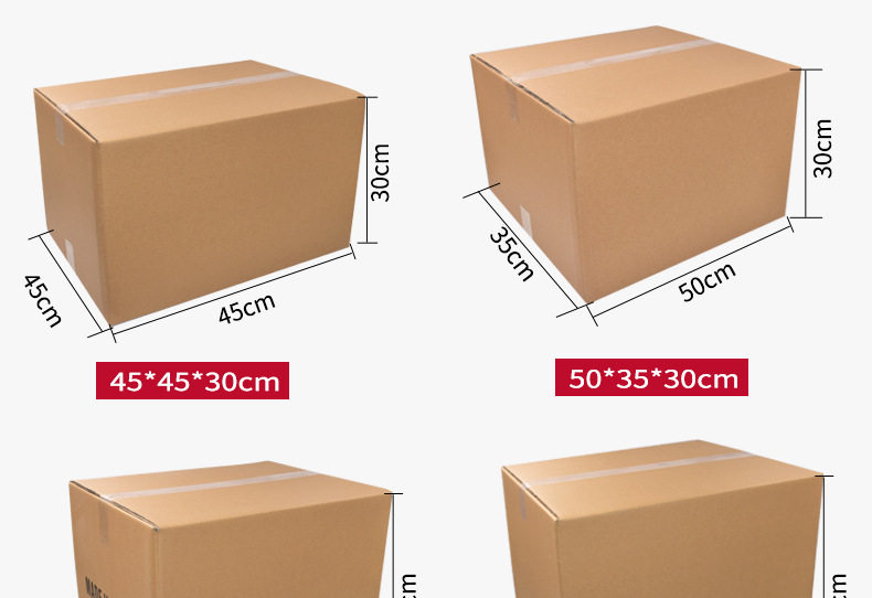 | Specification model | 8*8*8CM; three layers of super hard,9*9*9CM; three layers of super hard,10*10*10CM; three layers of super hard,11*11*11CM; three layers of super hard,12*12*12CM; three layers of super hard,13*13*13CM; three layers of super hard,15*15*15CM; three layers of super hard,16*16*16CM; three layers of super hard,16*16*16CM; three layers of extra hard,17*17*17CM; three layers of super hard,17*17*17CM; three layers of extra hard,18*18*18CM; three layers of super hard,18*18*18CM; three layers of extra hard,20*20*20CM; three layers of super hard,20*20*20CM; three layers of extra hard,22*22*22CM; three layers of super hard,22*22*22CM; three layers of extra hard,24*24*24CM; three layers of super hard,26*26*26CM; three layers of super hard,20*20*15CM; three layers of super hard,20*20*15CM; three layers of extra hard,22*22*15CM; three layers of super hard,22*22*15CM; three layers of extra hard,24*24*15CM; three layers of super hard,24*24*15CM; three layers of extra hard,25*25*25CM; three layers of super hard,25*25*25CM; five layers of KK extra hard,26*26*15CM; three layers of super hard,26*26*15CM; three layers of extra hard,30*30*15CM; three layers of super hard,30*30*30CM; five-layer cow card super hard,35*30*30CM; five layers of KK extra hard,35*35*35CM; five-layer cow card super hard,35*35*35CM; five layers of KK extra hard,40*30*30CM; five-layer cow card super hard,40*30*30CM; five layers of KK extra hard,40*40*30CM; five layers of KK extra hard,40*40*35CM; five layers of KK extra hard,40*35*35CM; five-layer cow card super hard,40*35*35CM; five layers of KK extra hard,40*40*40CM; five layers of KK extra hard,45*45*30CM; five-layer cow card super hard,45*45*30CM; five layers of KK extra hard,45*45*45CM; five-layer cow card super hard,45*45*45CM; five layers of KK extra hard,45*40*40CM; five layers of KK extra hard,50*40*40CM; five-layer kraft card super hard,50*40*40CM; five layers of KK extra hard,50*40*50CM; five-layer kraft card super hard,50*40*50CM; five layers of KK extra hard,50*45*45CM; five-layer cow card super hard,50*45*45CM; five layers of KK extra hard,53*40*40CM; five-layer cow card super hard,55*35*35CM; five-layer cow card super hard,55*40*40CM; five-layer cow card super hard,60*40*40CM; five-layer cow card super hard,60*40*40CM; five layers of KK extra hard,60*45*45CM; five-layer cow card super hard,60*45*45CM; five layers of KK extra hard,60*50*50CM; five-layer kraft card super hard,60*50*50CM; five layers of KK extra hard,No. 1 (53*29*37)CM; five layers of KK extra hard,No. 2 (53*23*29)CM; five layers of KK extra hard,No. 3 (43*21*27)CM; five layers of KK extra hard,No. 4 (35*19*23) CM; three layers of extra hard,No. 4 (35*19*23) CM; five layers of KK extra hard,No. 5 (29*17*19)CM; three layers of extra hard,No. 5 (29*17*19)CM; five layers of KK extra hard,No. 6 (26*15*18) CM; three layers of extra hard,No. 6 (26*15*18) CM; five layers of KK extra hard,No. 7 (23*13*16) CM; three layers of extra hard,No. 7 (23*13*16) CM; five layers of KK extra hard,No. 8 (21*11*14) CM; three layers of extra hard,No. 8 (21*11*14) CM; five layers of KK extra hard,No. 9 (19.8*10.5*13.5)CM; three layers of extra hard,No. 9 (19.8*10.5*13.5)CM; five layers of KK extra hard,No. 10 (17.5*9.5*11.5)CM; three layers of extra hard,No. 10 (17.5*9.5*11.5)CM; five layers of KK extra hard,No. 11 (14.5*8.5*10.5)CM; three layers of extra hard,No. 12 (13*8*9)CM; three layers of extra hard |