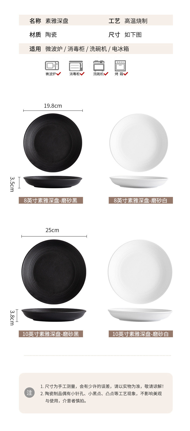 Frosted Dessert Spaghetti Western Food Plate Household Plate Ceramic Soup Plate Deep Plate Salad Plate Hotel Tableware Advanced Sense