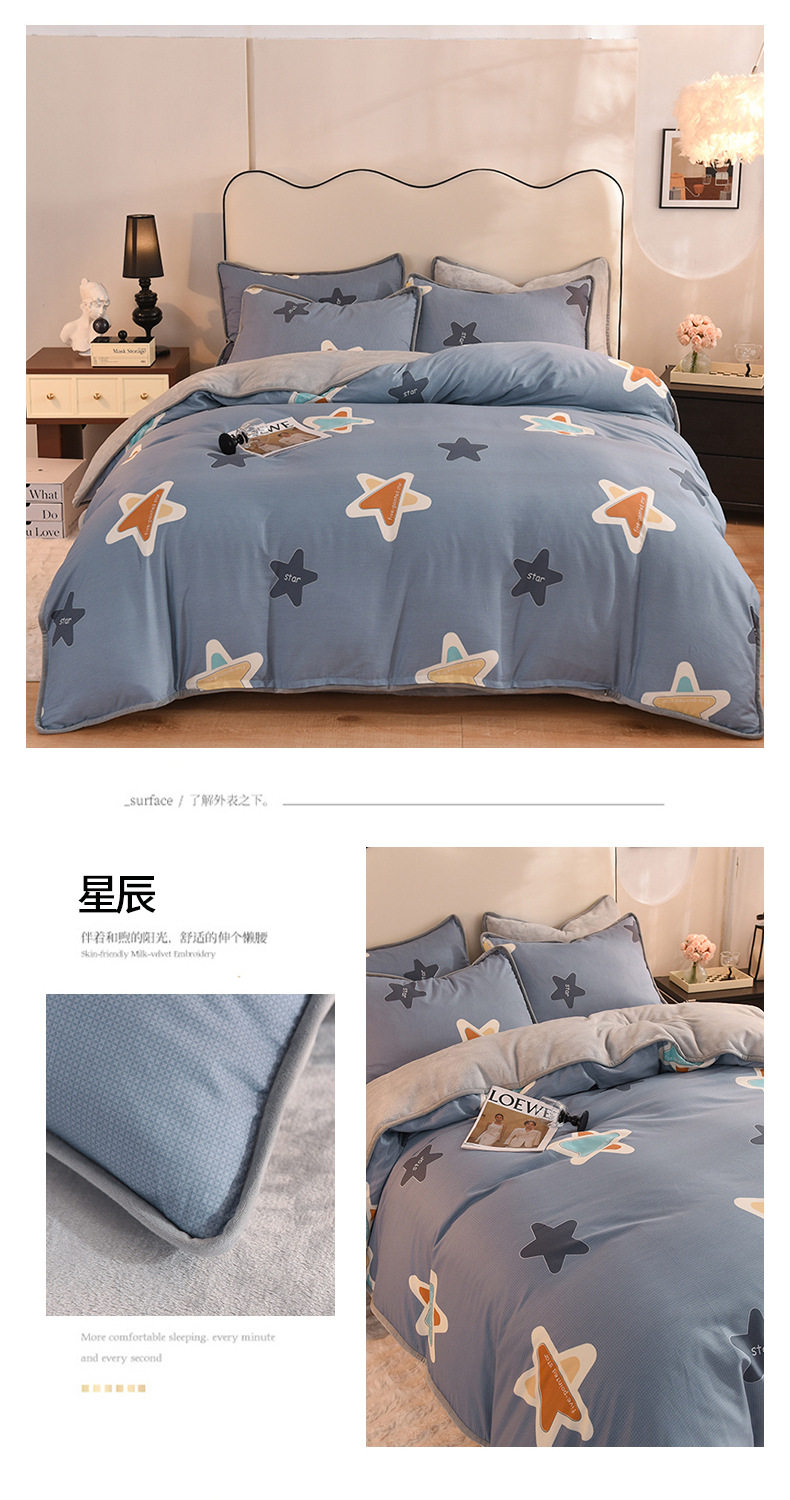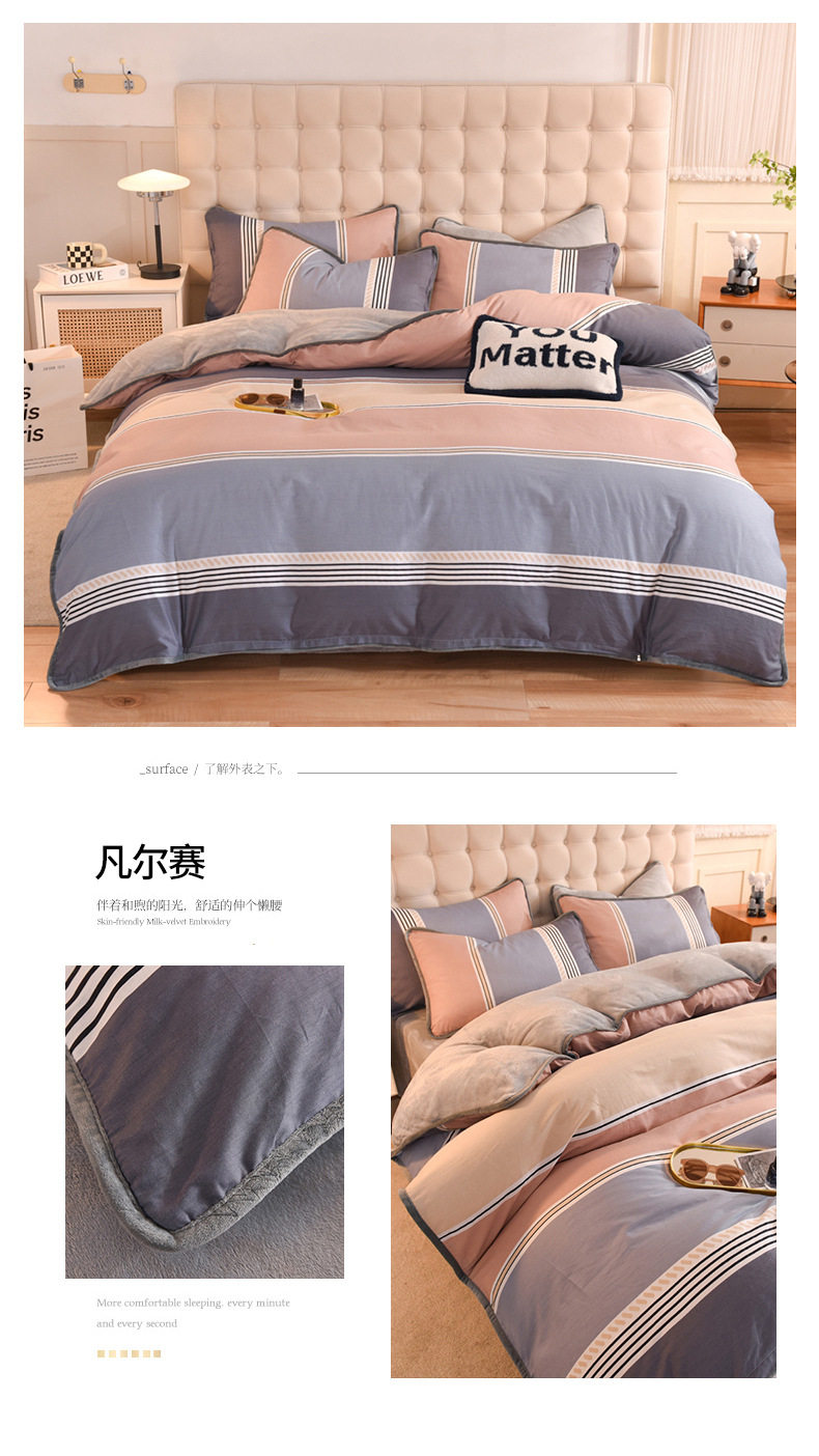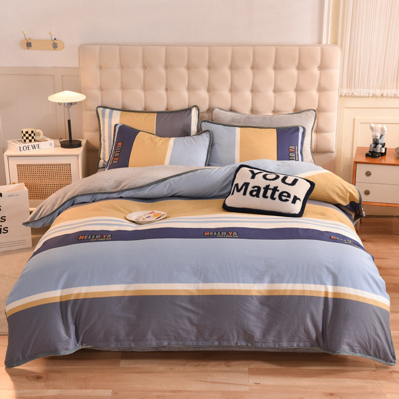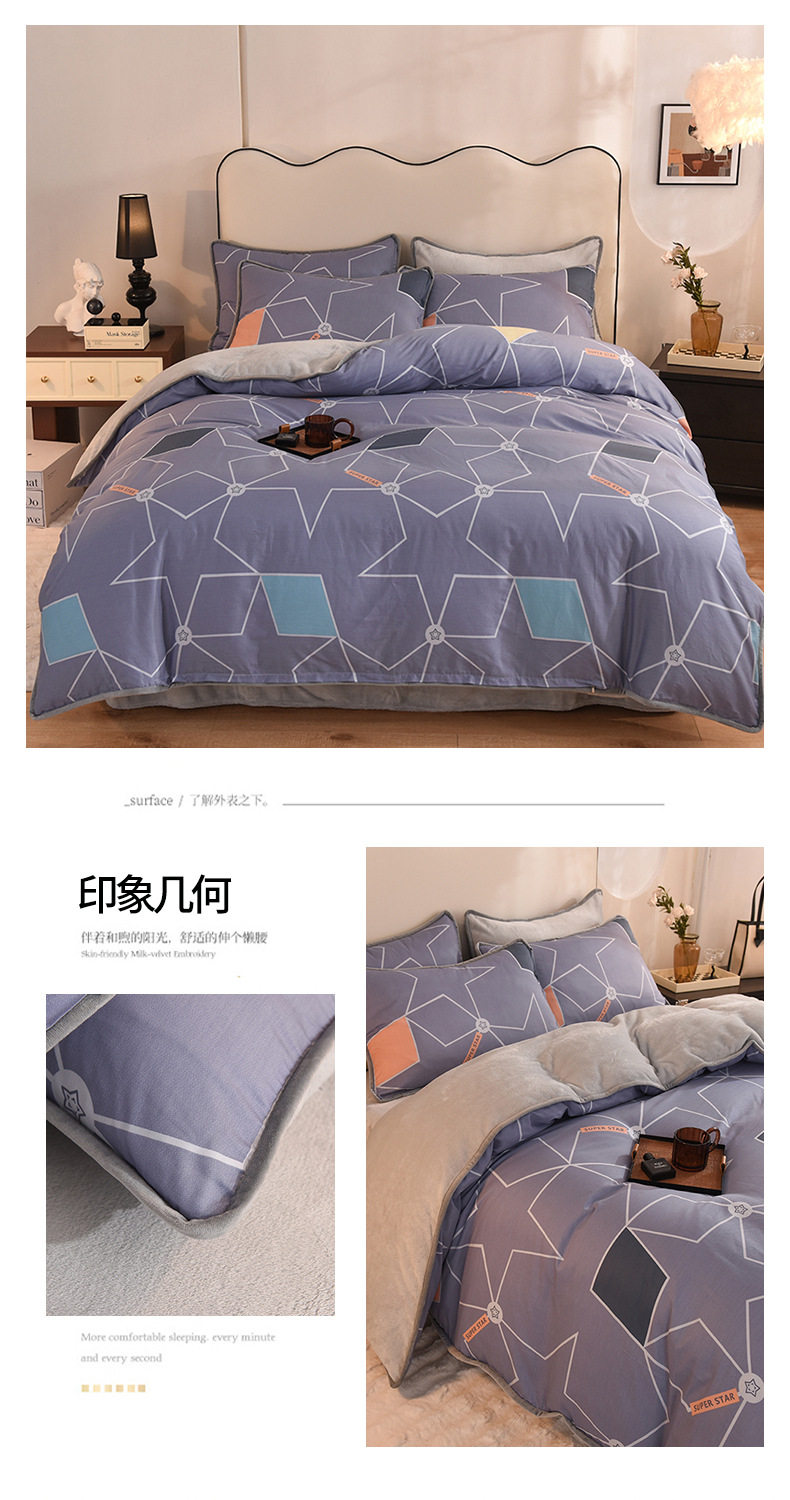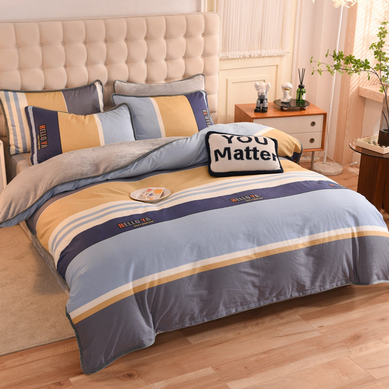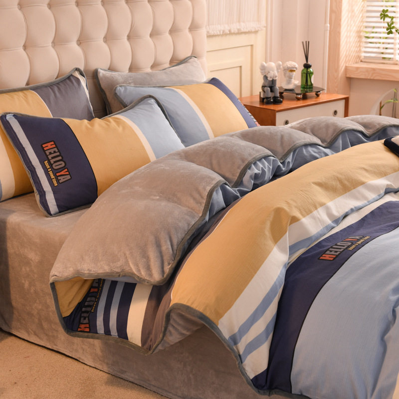 Foreign trade AB version cotton fleece-lined four-piece quilt cover can be used to make air conditioning quilt winter warm flannel bedding