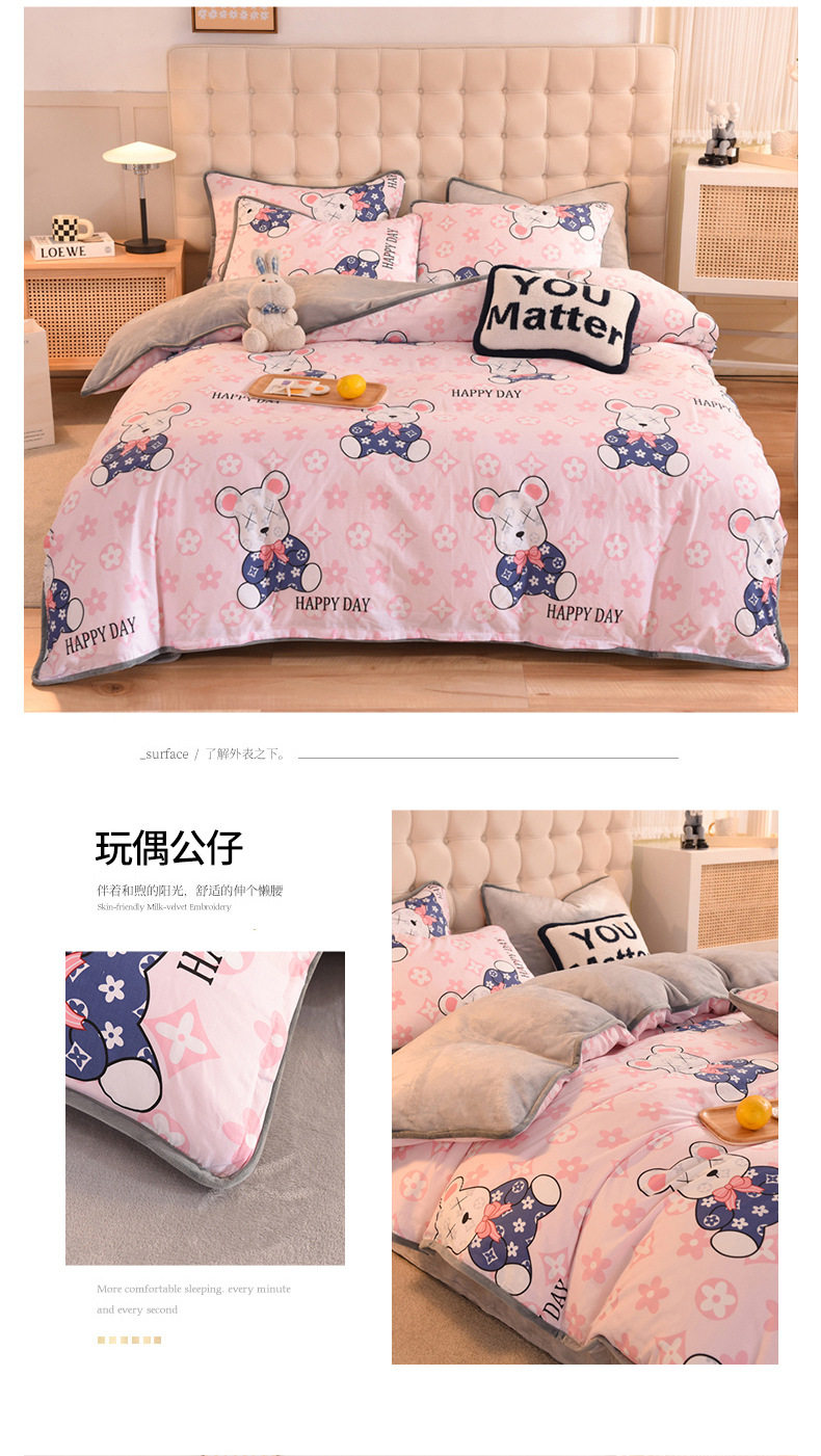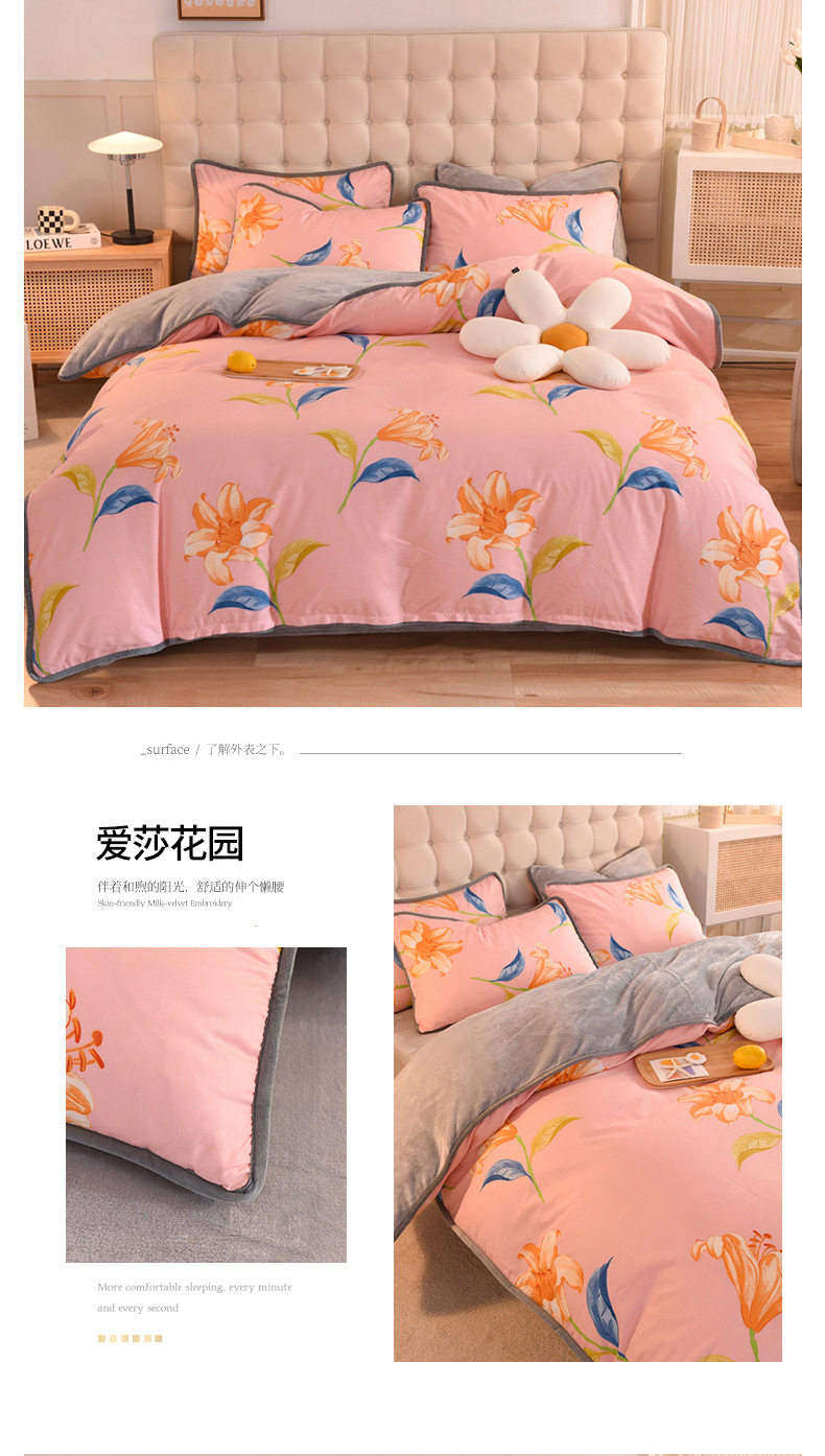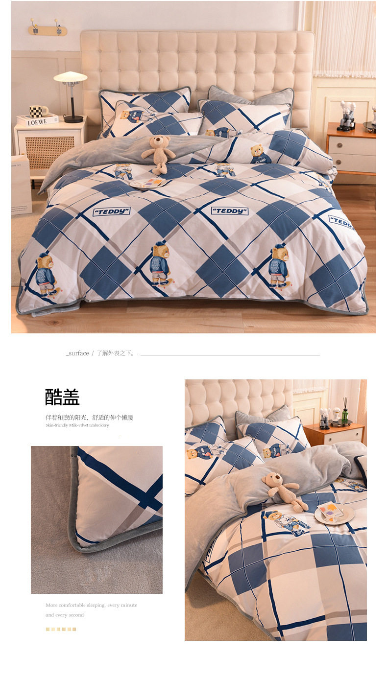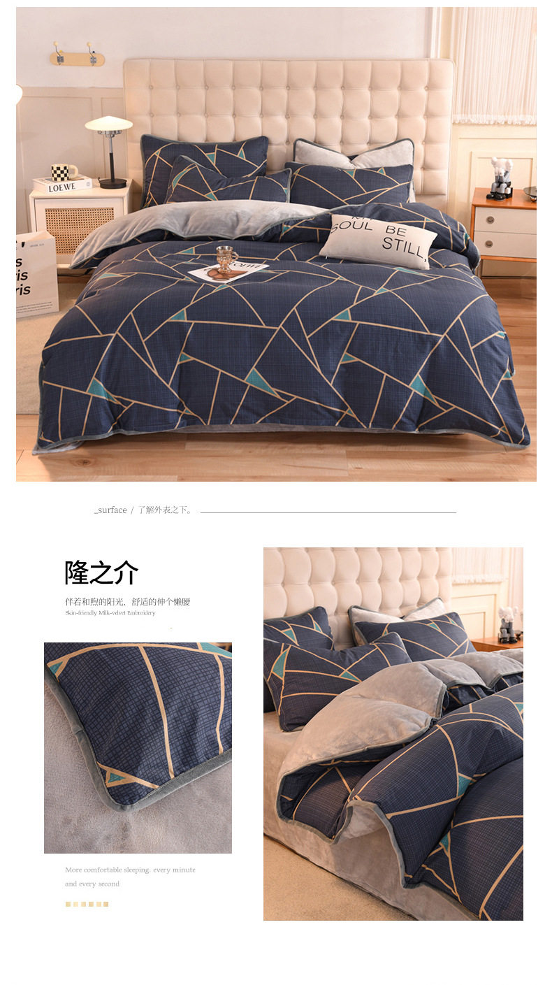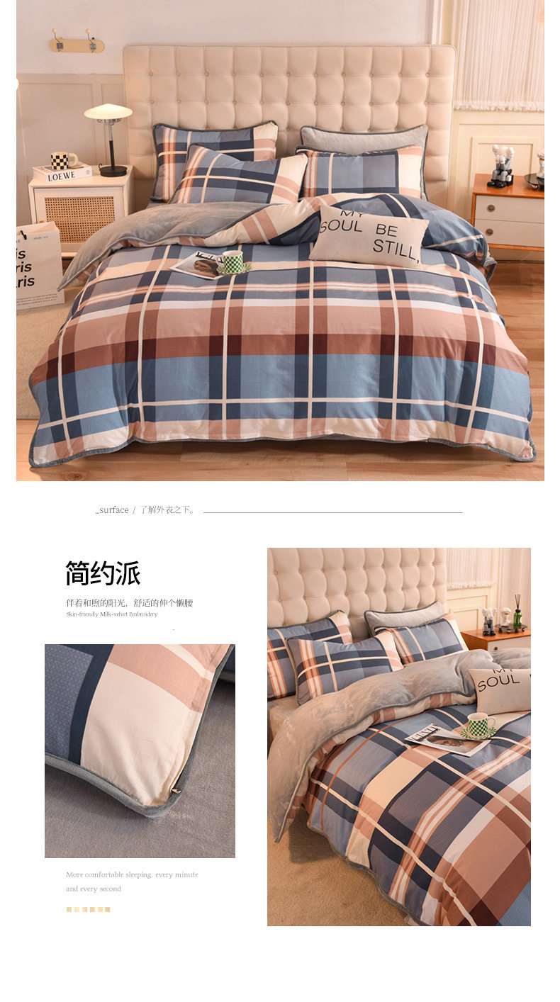 Foreign trade AB version cotton fleece-lined four-piece quilt cover can be used to make air conditioning quilt winter warm flannel bedding