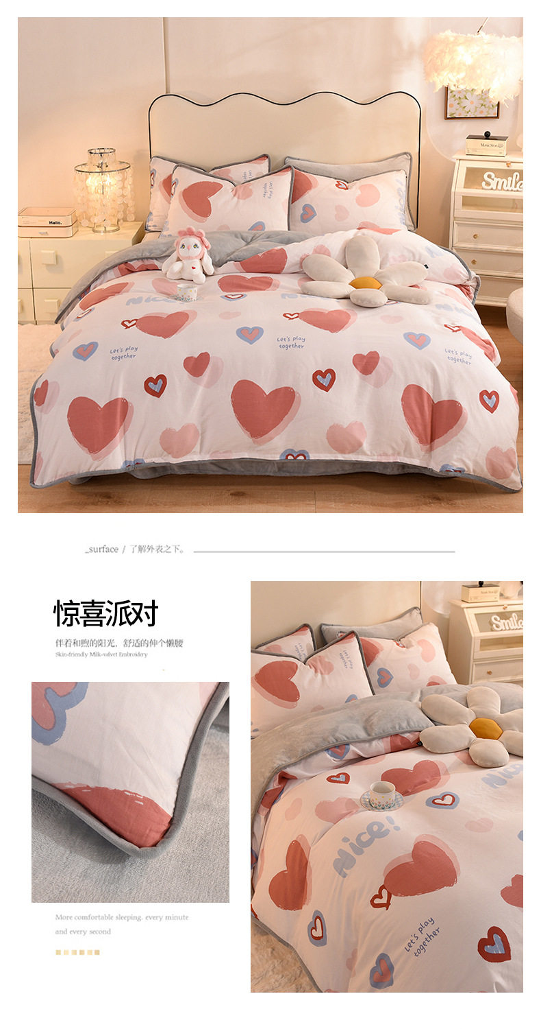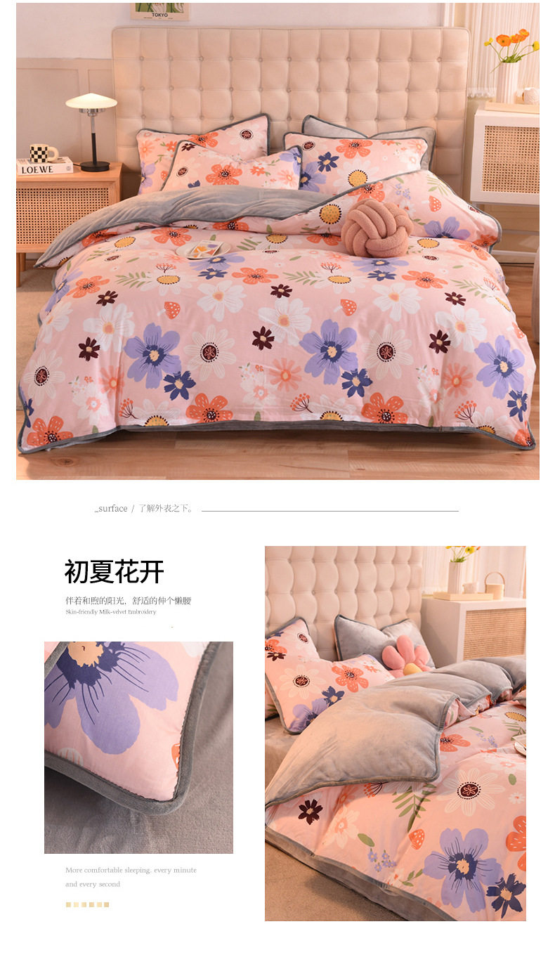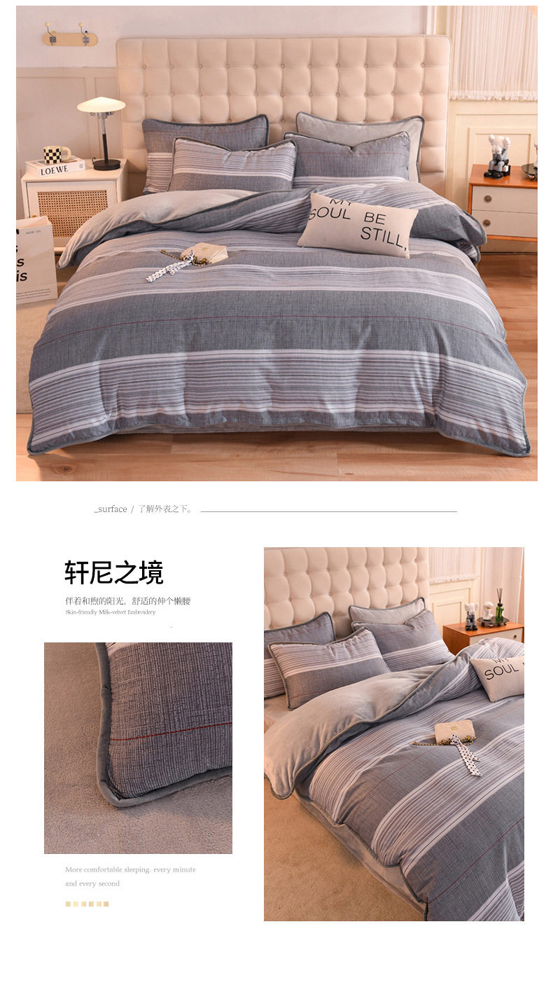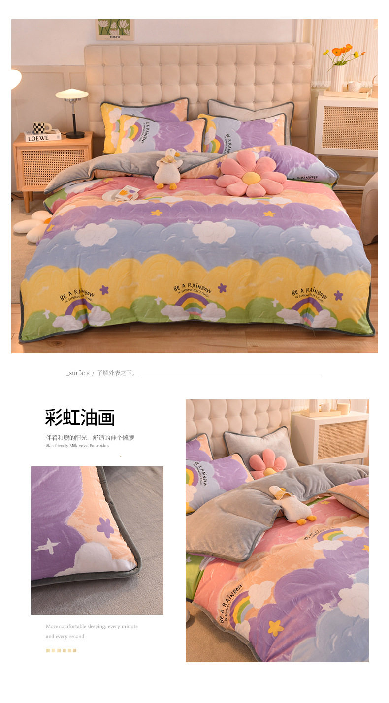Foreign trade AB version cotton fleece-lined four-piece quilt cover can be used to make air conditioning quilt winter warm flannel bedding
