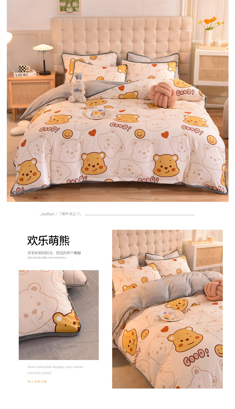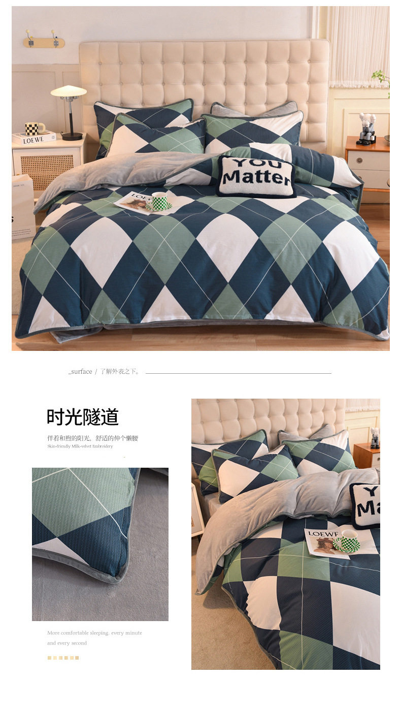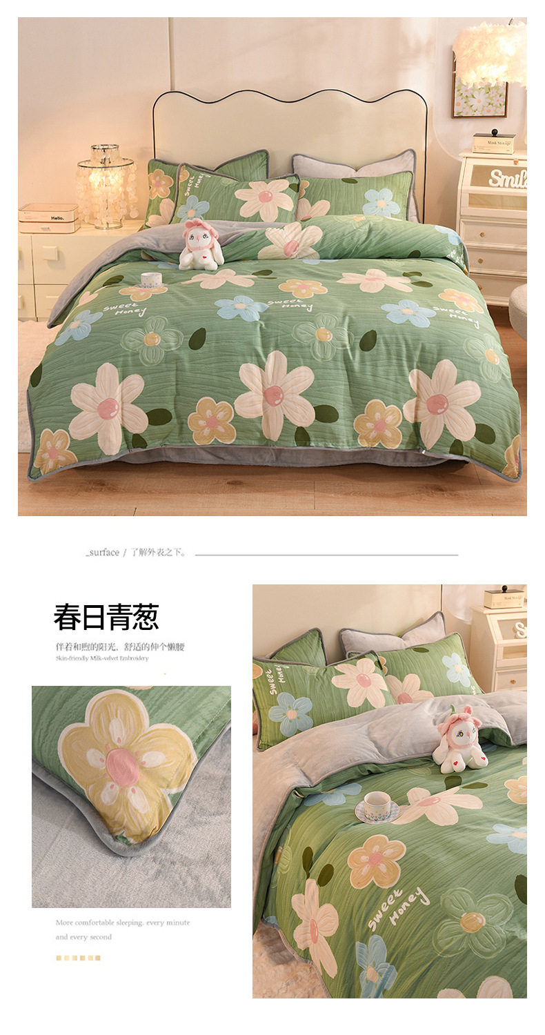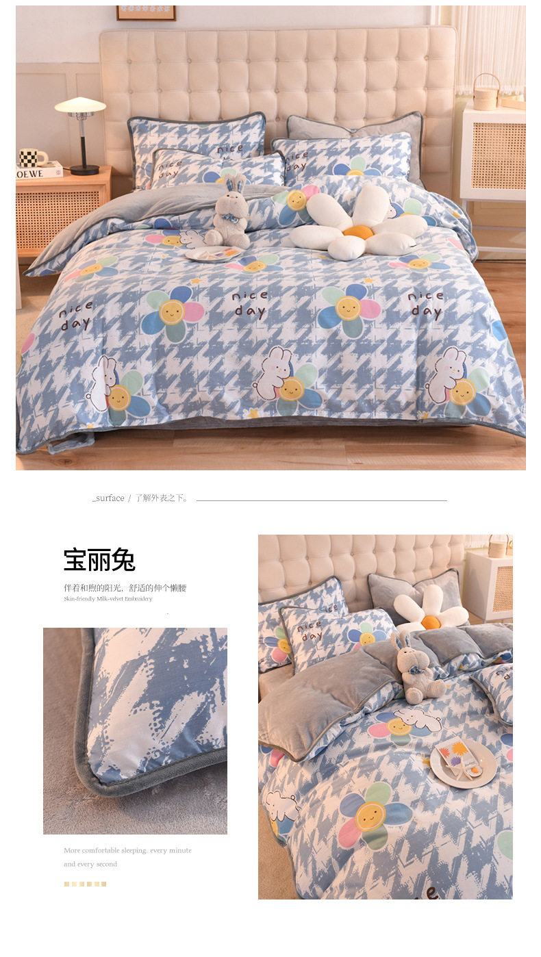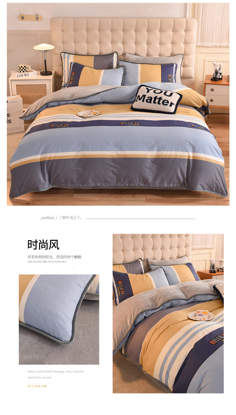 Foreign trade AB version cotton fleece-lined four-piece quilt cover can be used to make air conditioning quilt winter warm flannel bedding