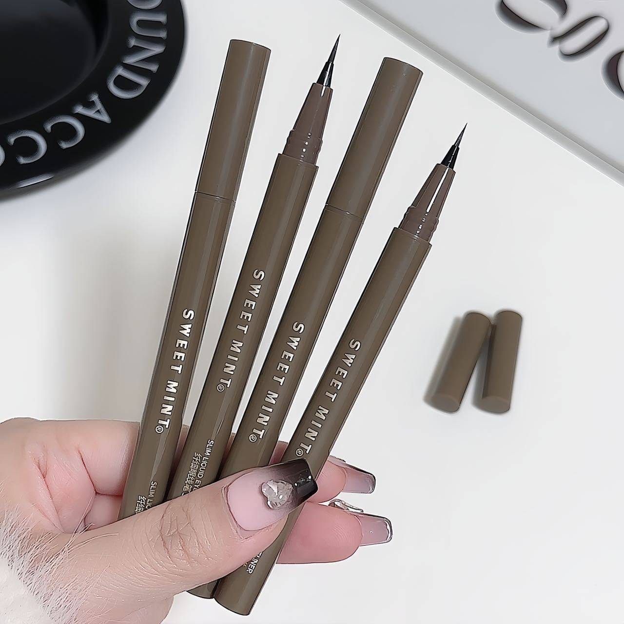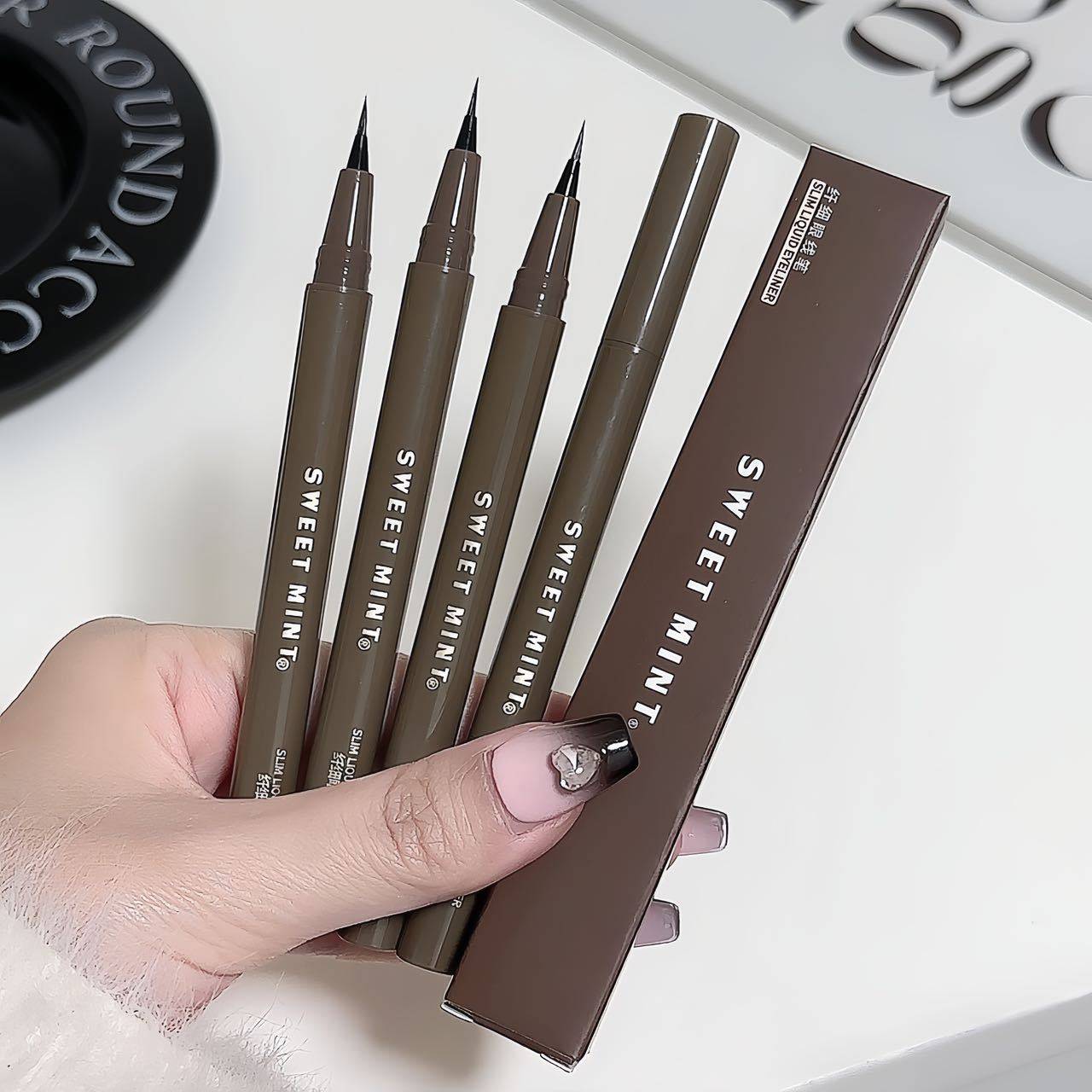 Sweet mint slim eyeliner very thin waterproof sweat-proof non-blooming brown liquid silkworm pen wholesale makeup
