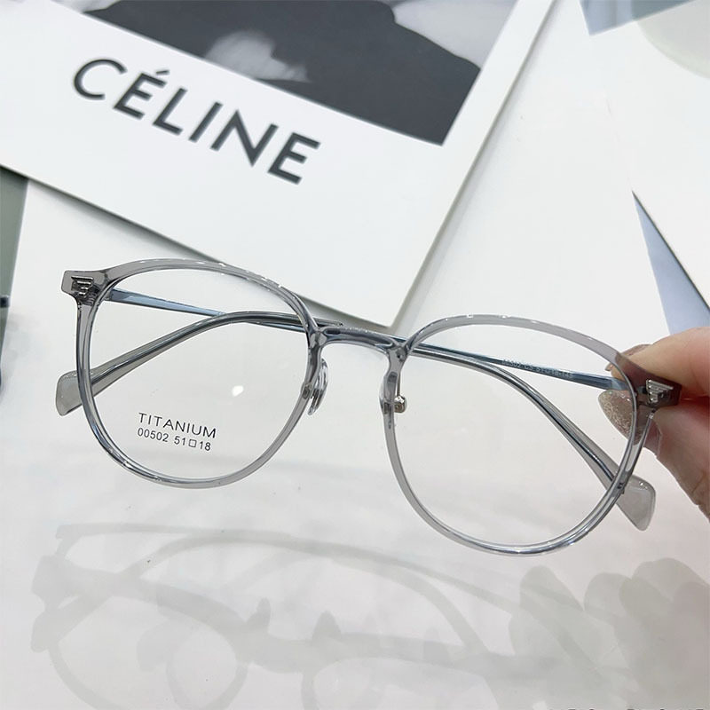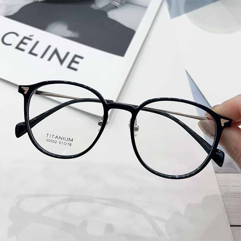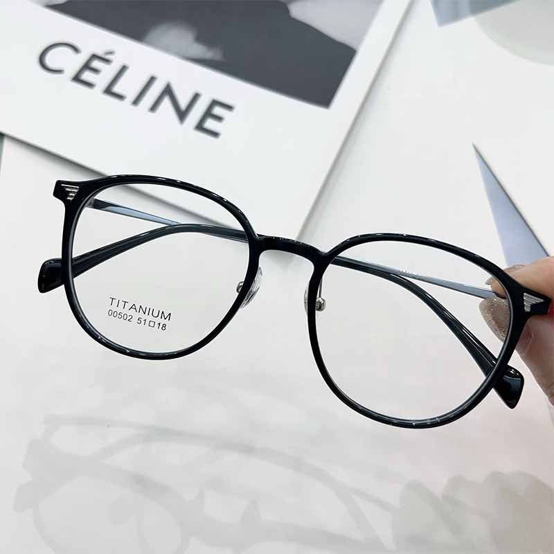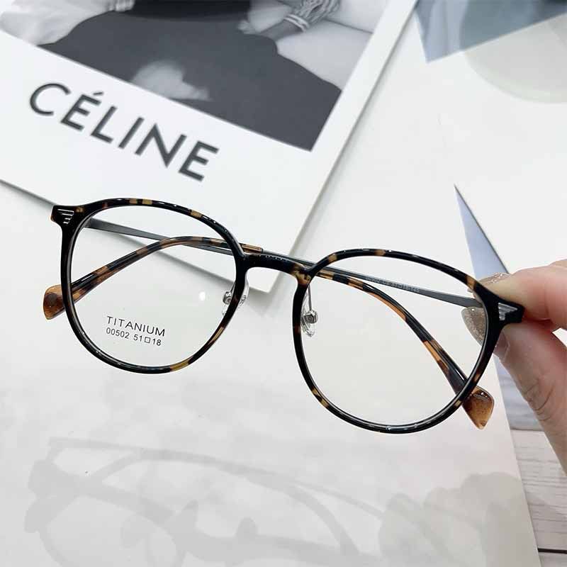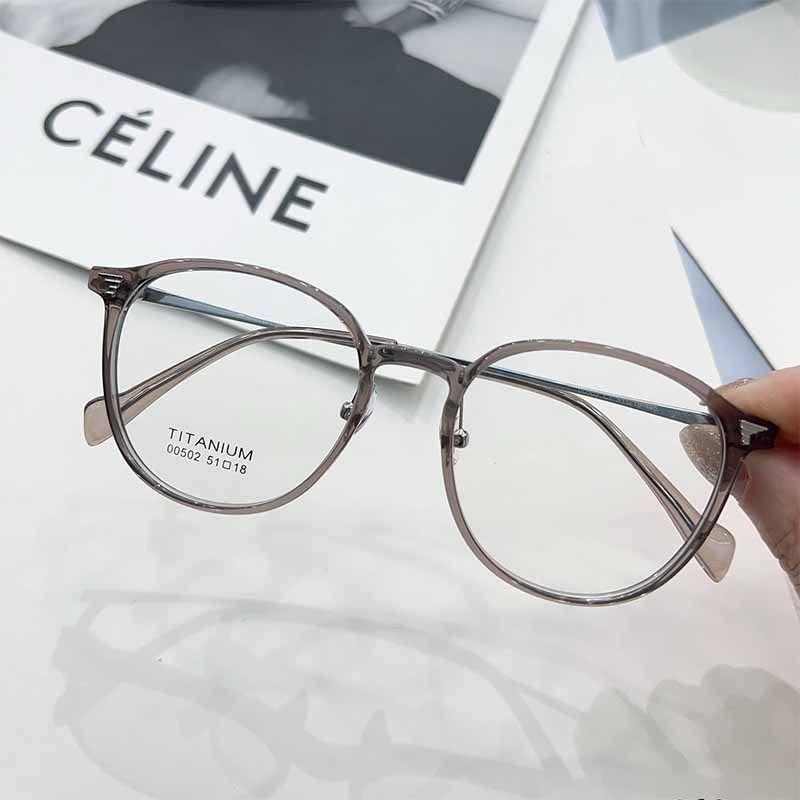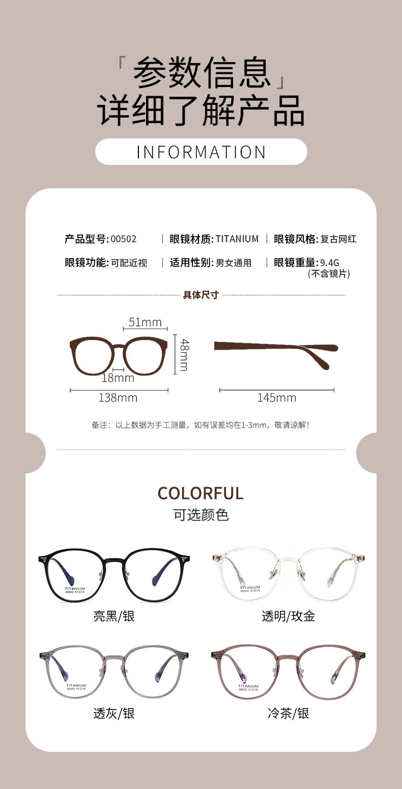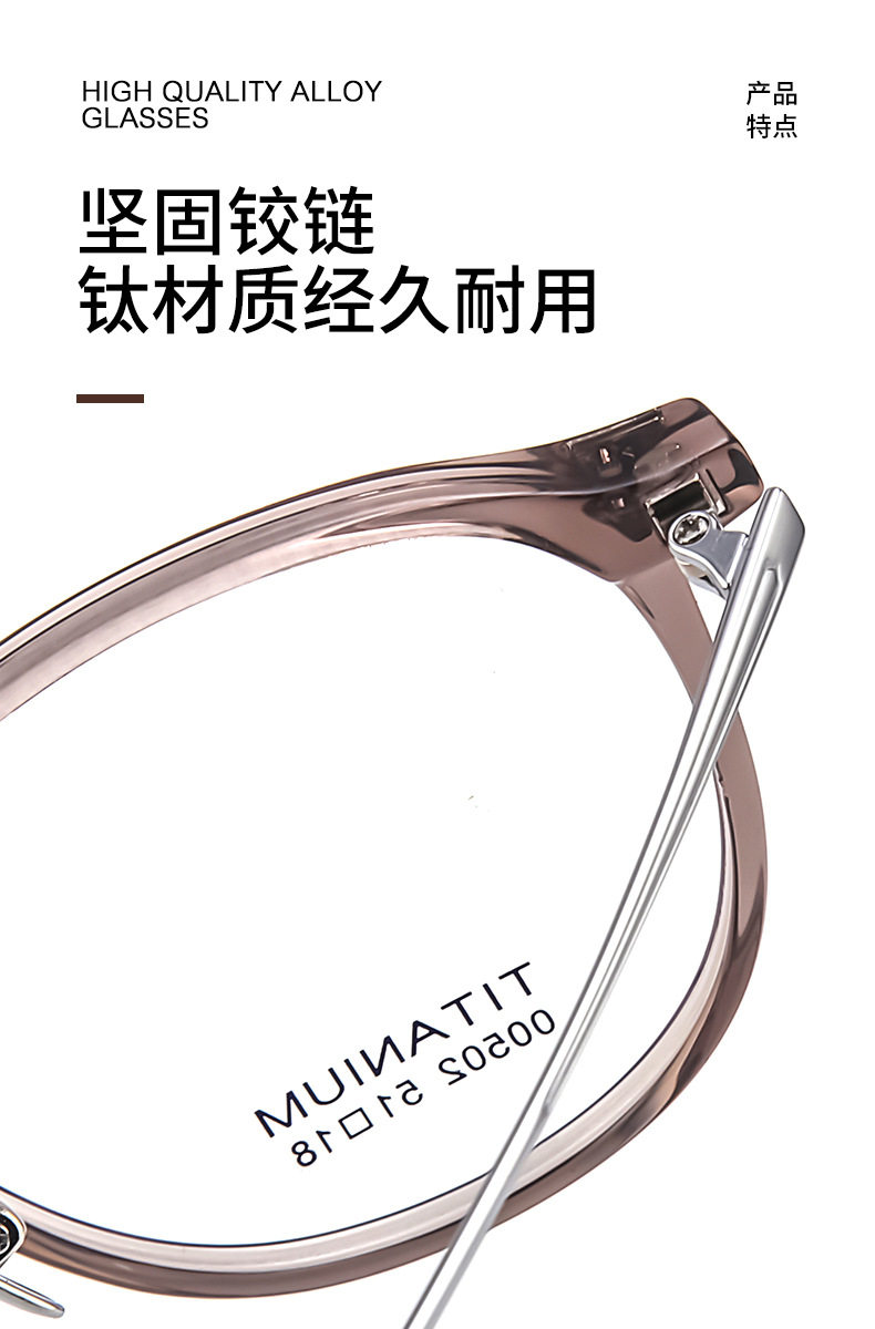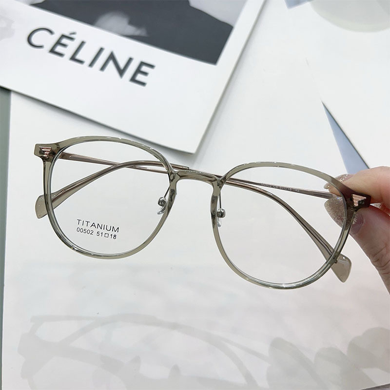 Cold tea color glasses frame women's anti-blue light glasses can be equipped with myopia Korean slim pure titanium glasses frame wholesale 00502