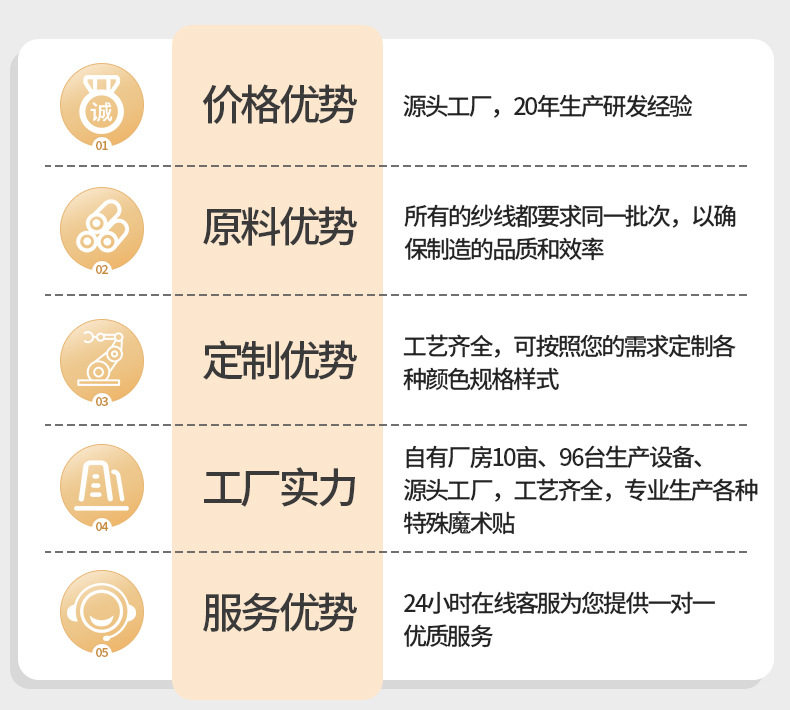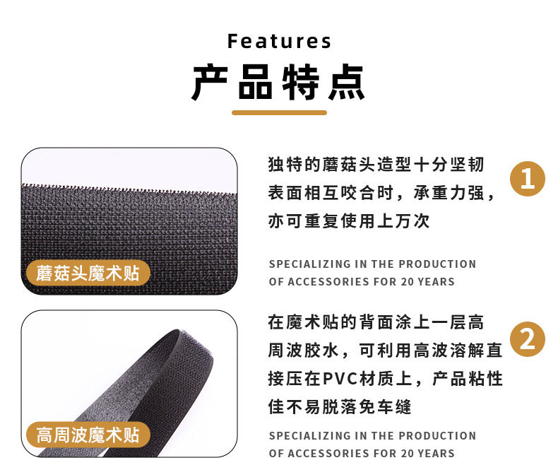 | Specification model | Black high frequency hook surface*2cm,Black high-frequency wave rough surface*2cm,White high frequency hook surface*2cm,White high frequency wave rough surface*2cm,Black high frequency hook surface*2.5cm,Black high frequency wave rough surface*2.5cm,White high frequency hook surface*2.5cm,White high frequency wave rough surface*2.5cm,Black high frequency hook surface*3.8cm,Black high frequency wave rough surface*3.8cm,White high frequency hook surface*3.8cm,White high frequency wave rough surface*3.8cm,Black high frequency hook surface*5cm,Black high frequency wave rough surface*5cm,White high frequency hook surface*5cm,White high frequency wave rough surface*5cm,Black mushroom head hook surface*5cm,Black mushroom head rough surface*5cm,White mushroom head hook surface*5cm,White mushroom head rough surface*5cm,Black mushroom head hook surface*11cm |