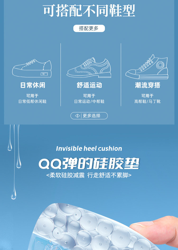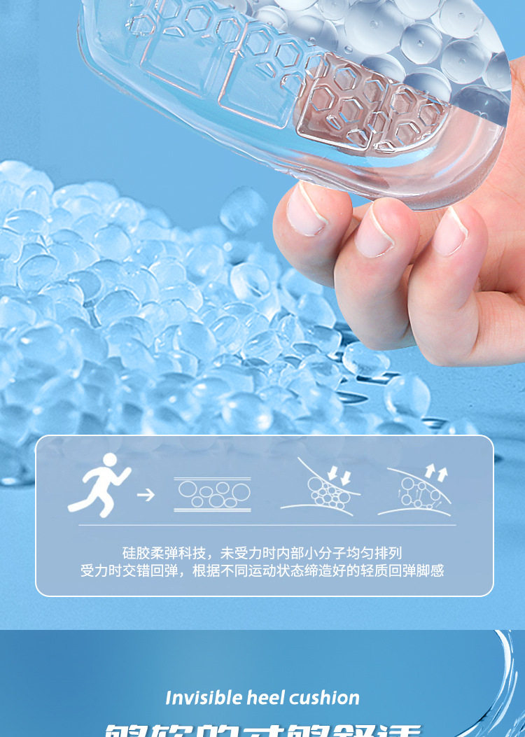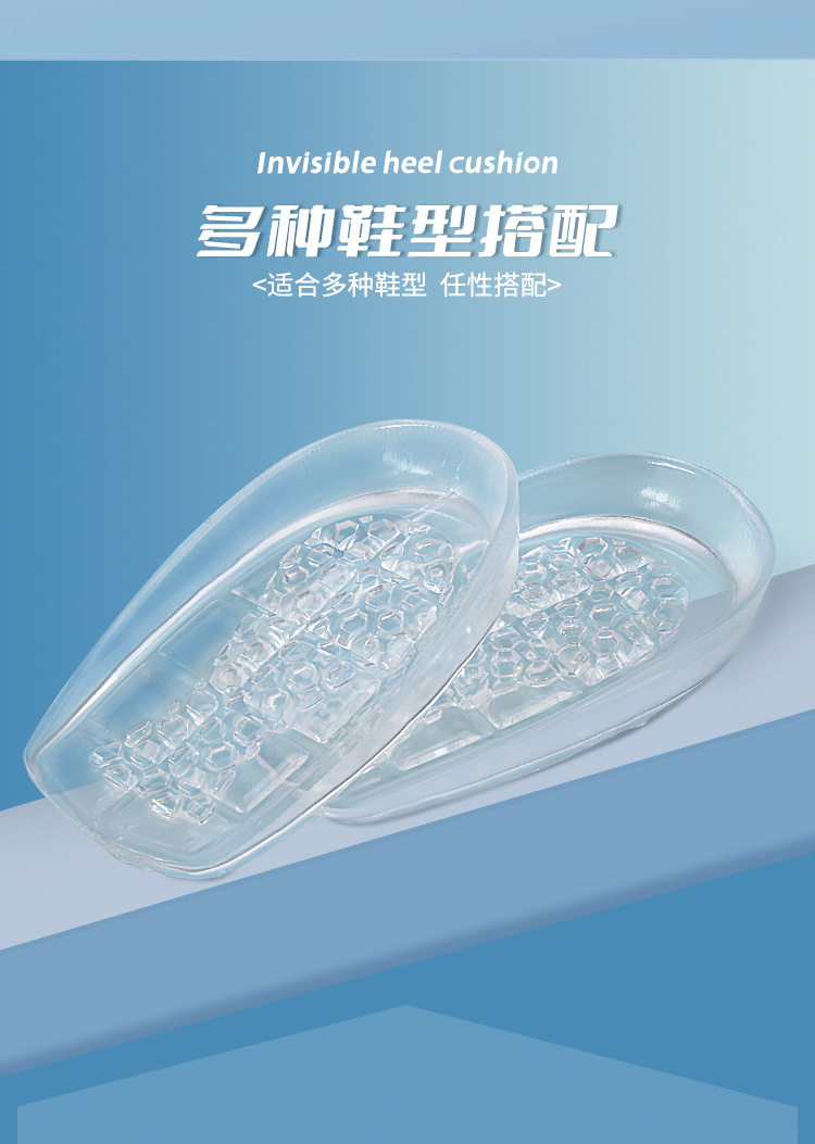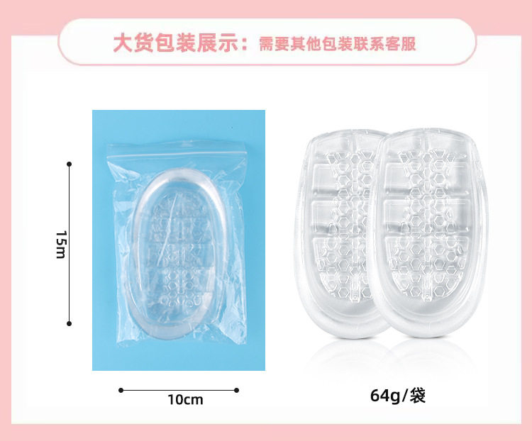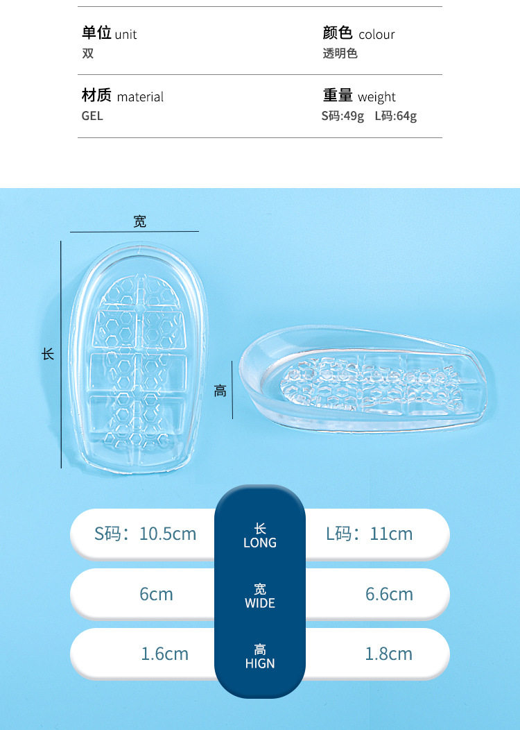 Heel Foot Pad Sports Heightening Insole Half Size Soft Men and Women Silicone Shock-Absorbing Heel Pain Heel Pad Transparent Heel Pad