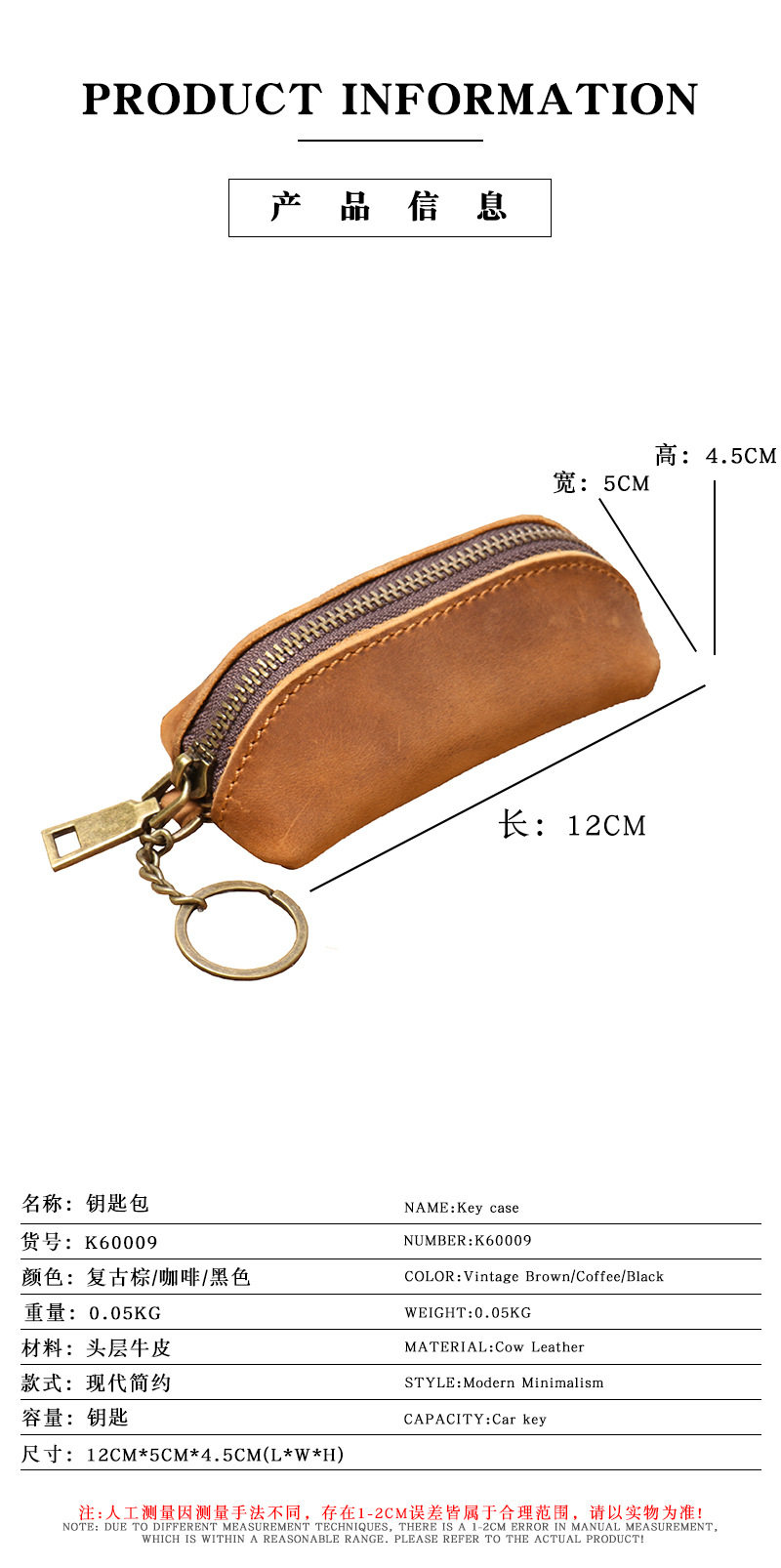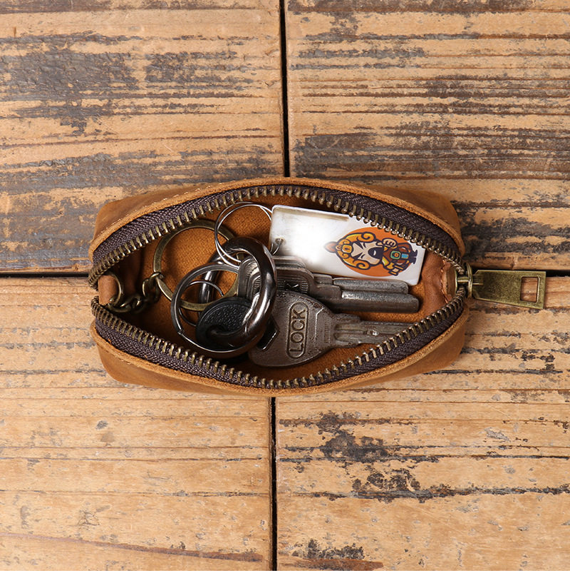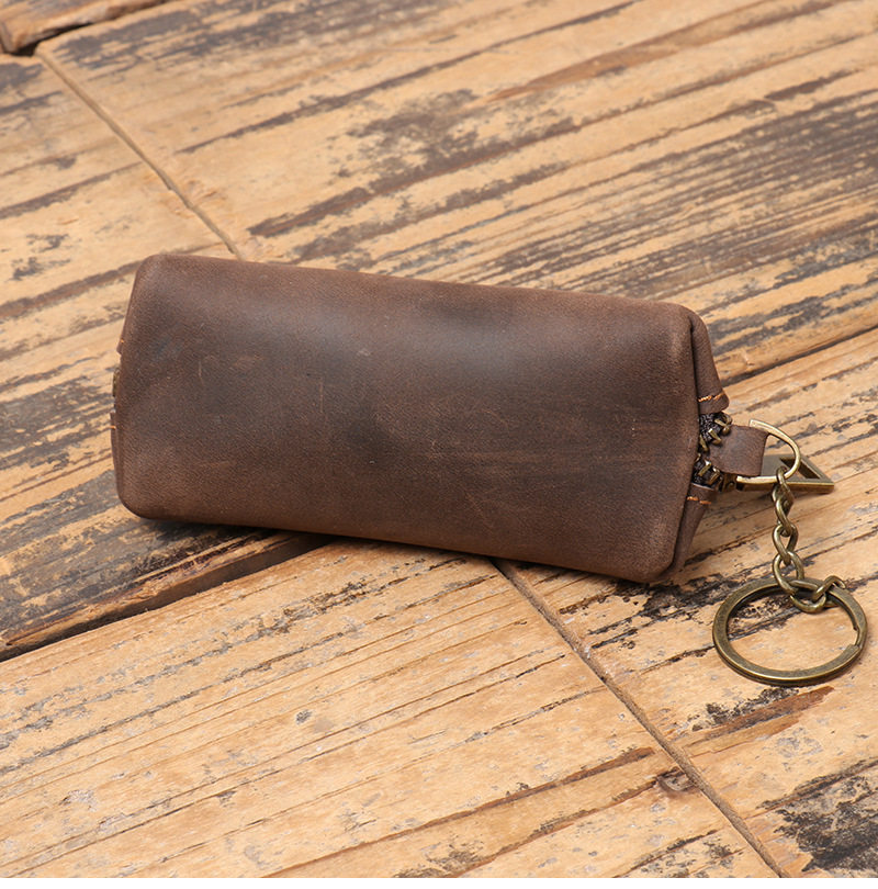 Foreign trade distribution new men's leather coin purse women's Crazy Horse leather key bag multi-functional cowhide clutch storage bag
